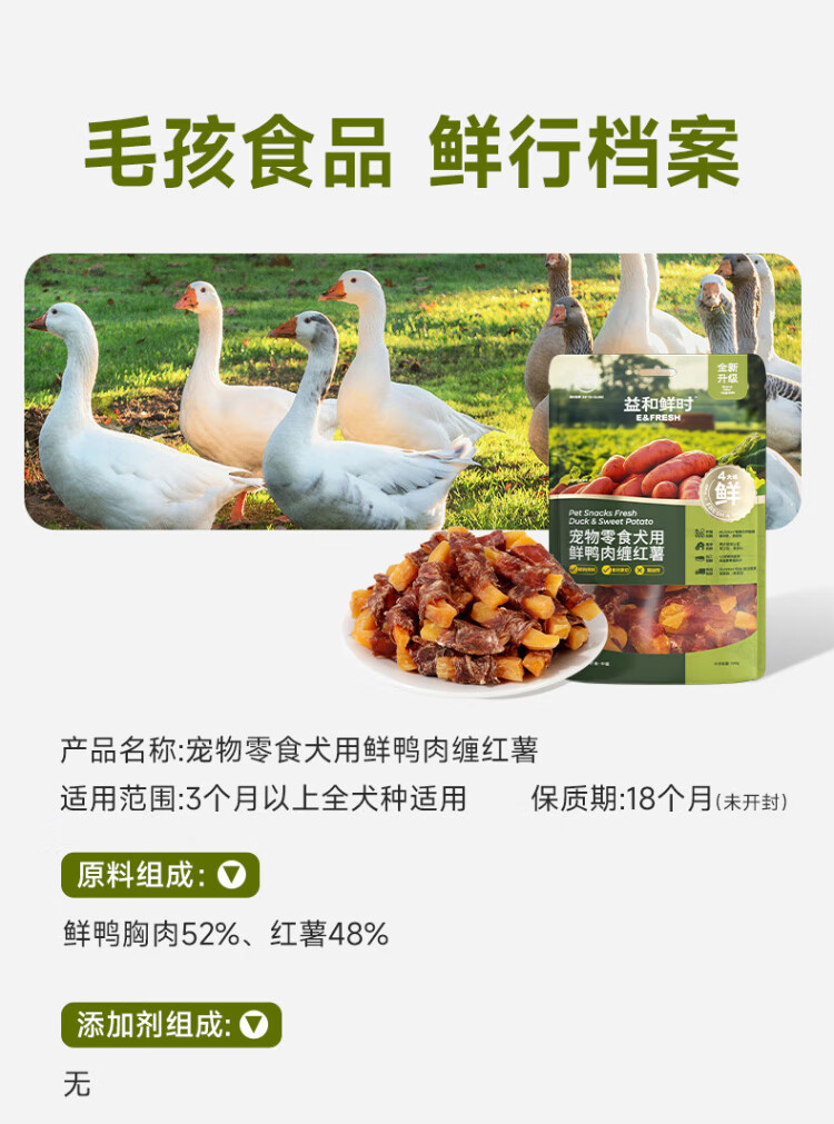Yihe Xianshi Pet Dog Snacks Fresh Duck Meat Wrapped Sweet Potato 100g