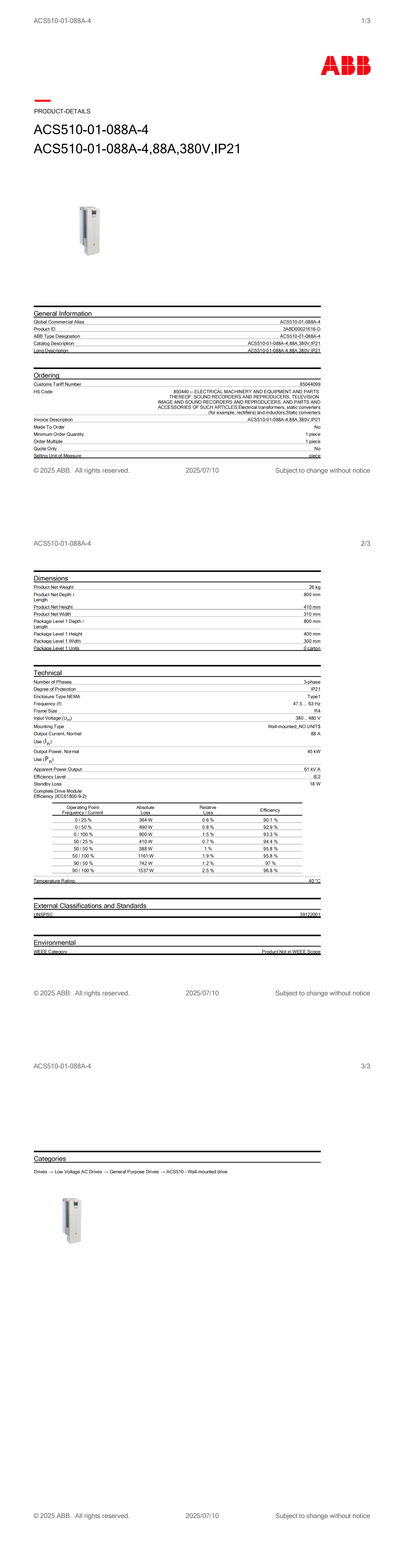 ABB frequency converter 45kW ACS510-01-088A-4 three-phase adjustable without operation panel 3ABD00021616-D Industrial