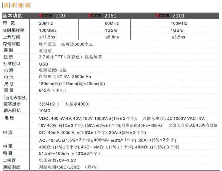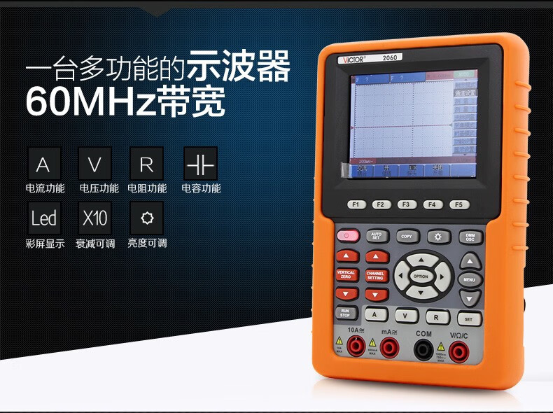 Victory Instrument (VICTOR) handheld digital oscilloscope portable dual-channel oscilloscope multimeter VC2060 (handheld single channel 60Mhz)