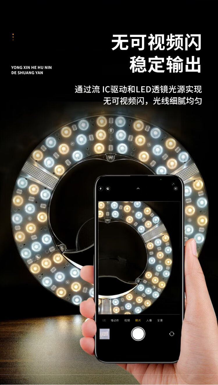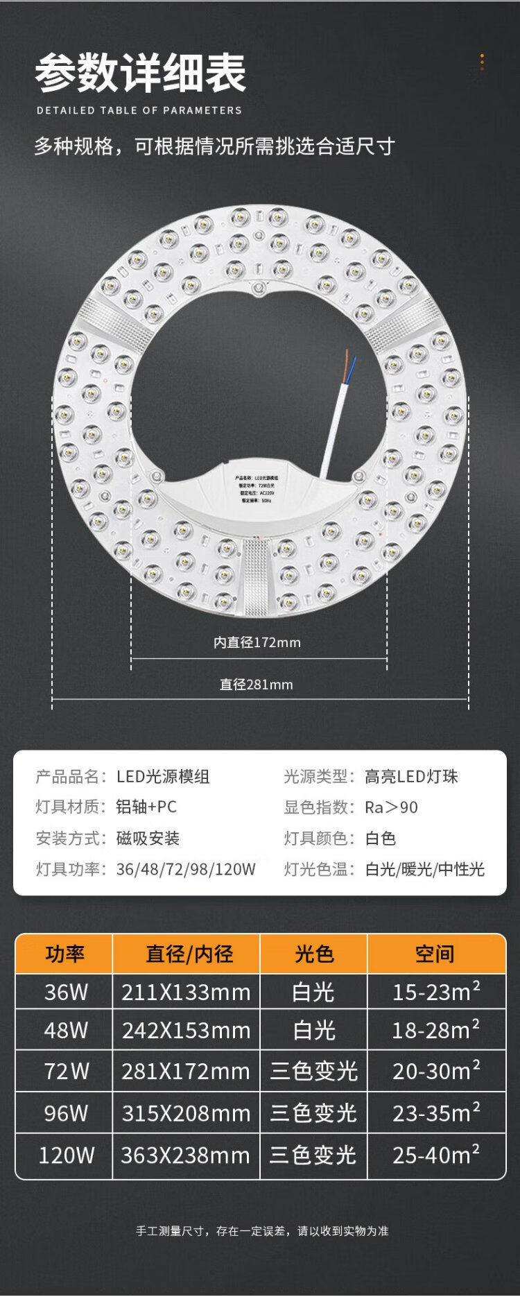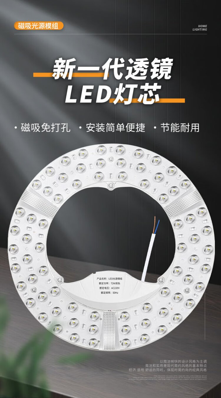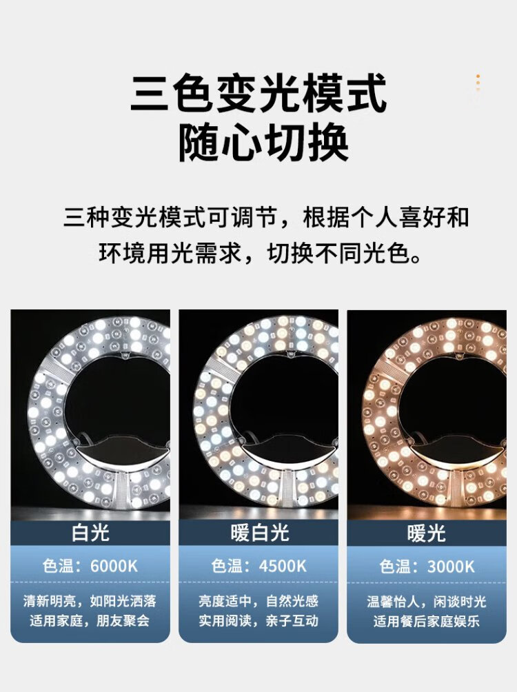 Jinggong LED wick modified light panel, ceiling lamp round light source module, no punching, magnet adsorption, 96W three-tone lighting