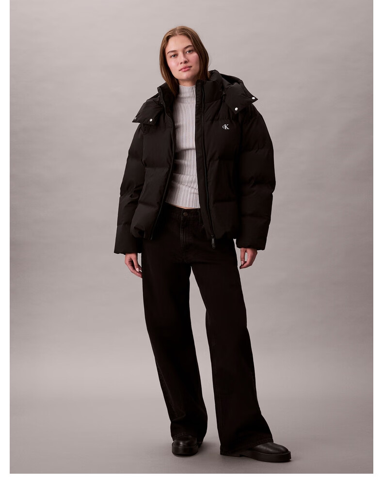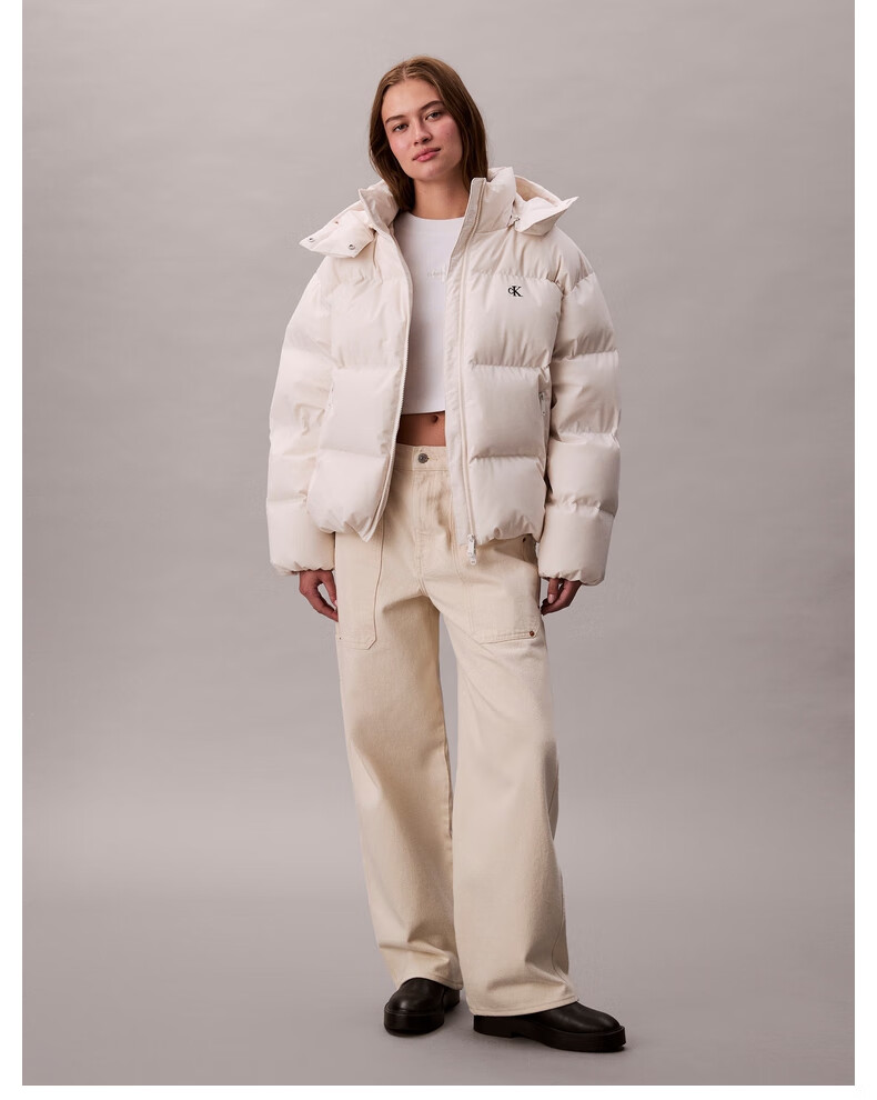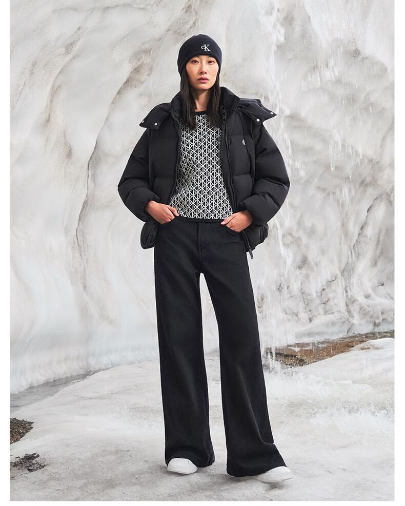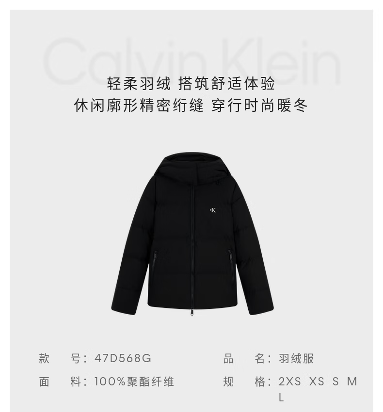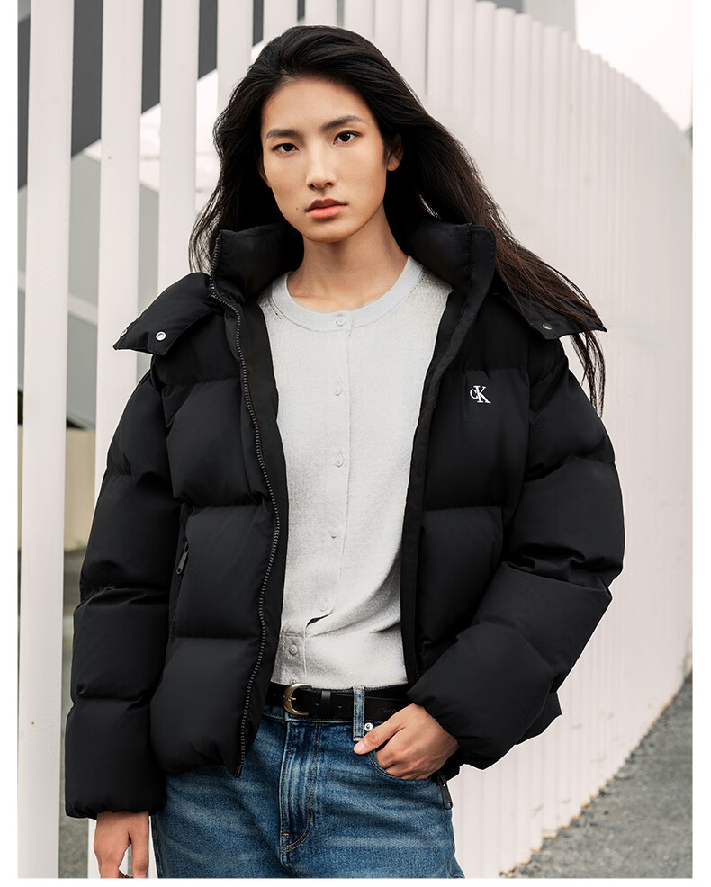 Calvin KleinJeans25 autumn and winter new women's soft 90 velvet casual commuting cck embroidered stand collar hooded down jacket