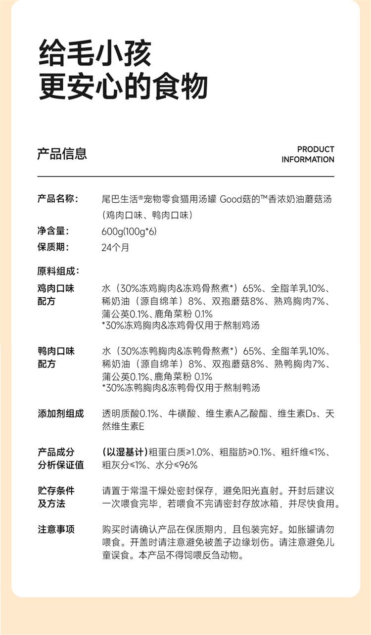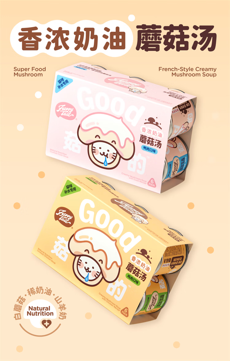 Tails Life Creamy Mushroom Soup Nutritious Hydrating Soup Can Adult Cat and Kitten Wet Food Canned Cat Snacks Chicken Flavor 100g*6