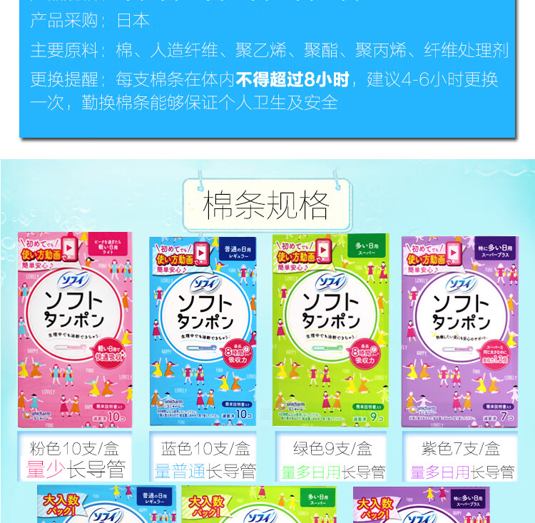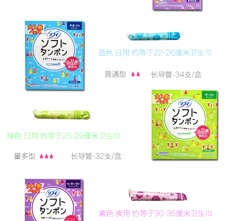 Unicharm imported from Japan Unicharm extra large tampon long catheter large medium small 520 gift New Year's Day gift medium size - long catheter 10 pieces blue other