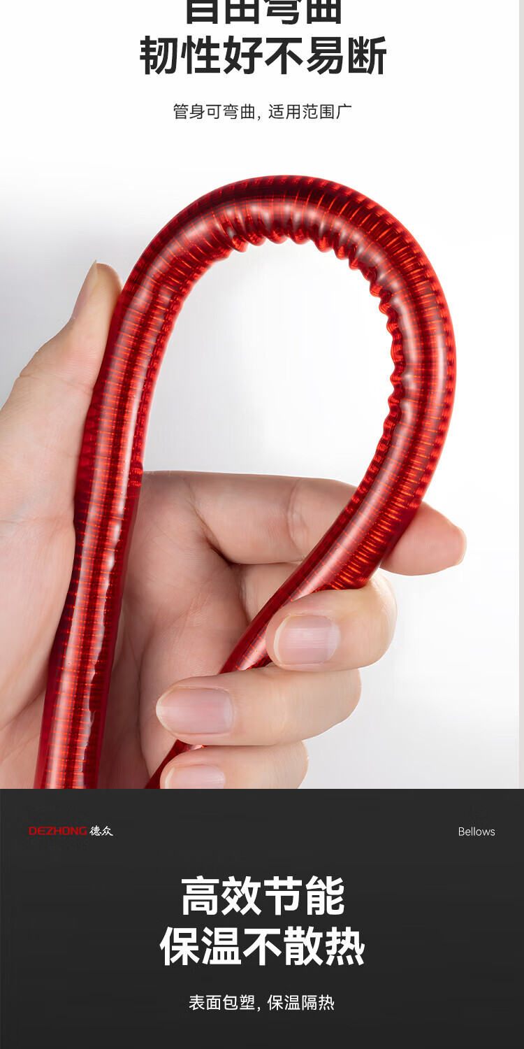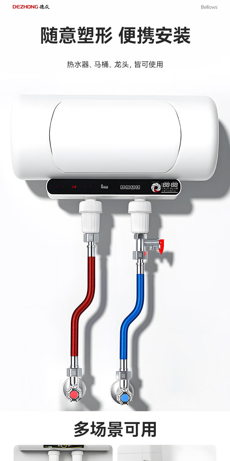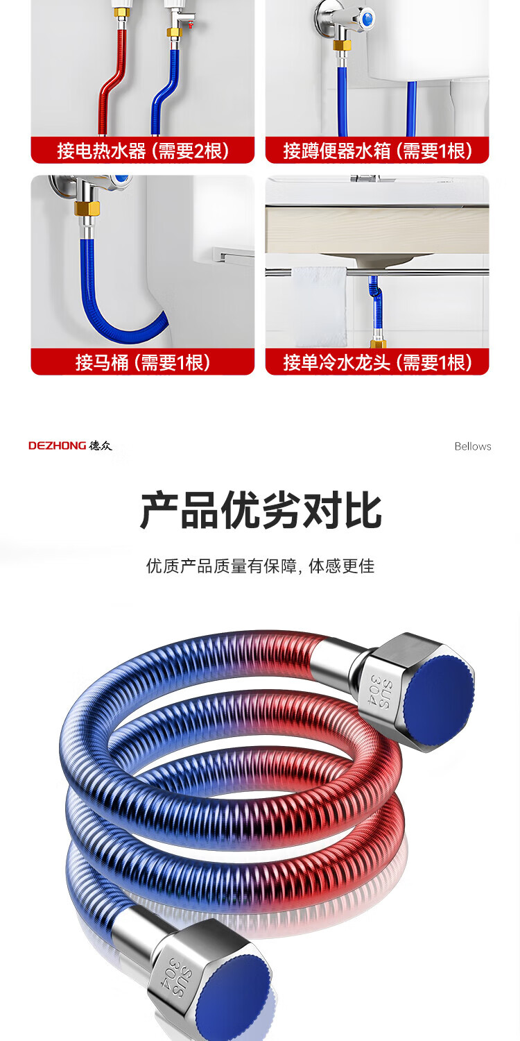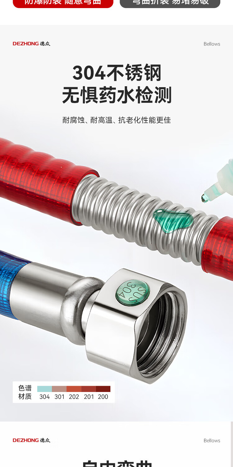 Dezhong 304 stainless steel corrugated pipe, special for water heater corrugated pipe, 4-point interface explosion-proof and leak-proof, gas water heater inlet pipe, thickened pressure-resistant faucet hot and cold water pipe 80cm, 2 pieces