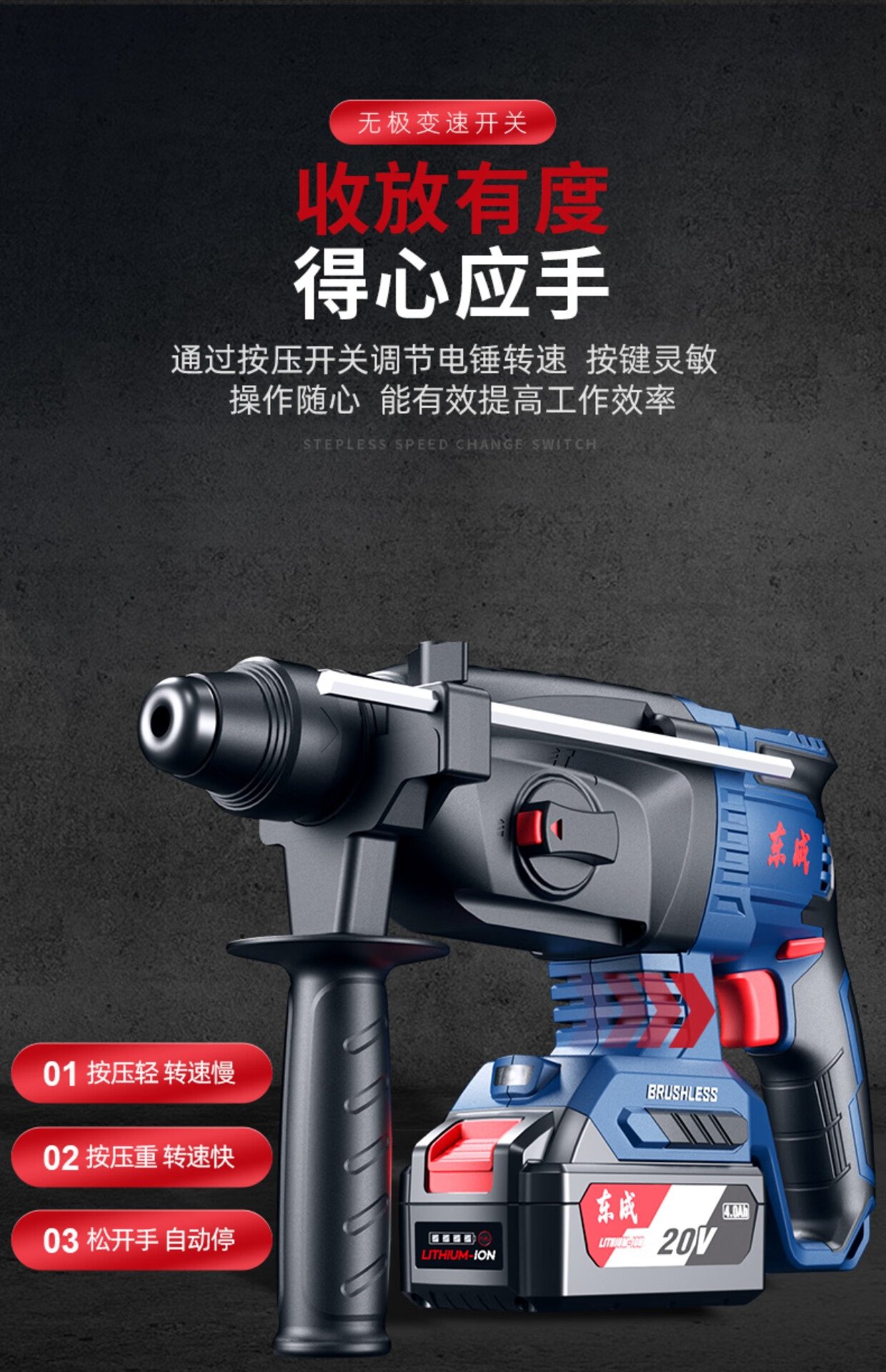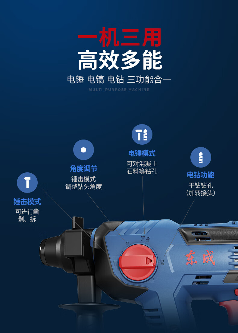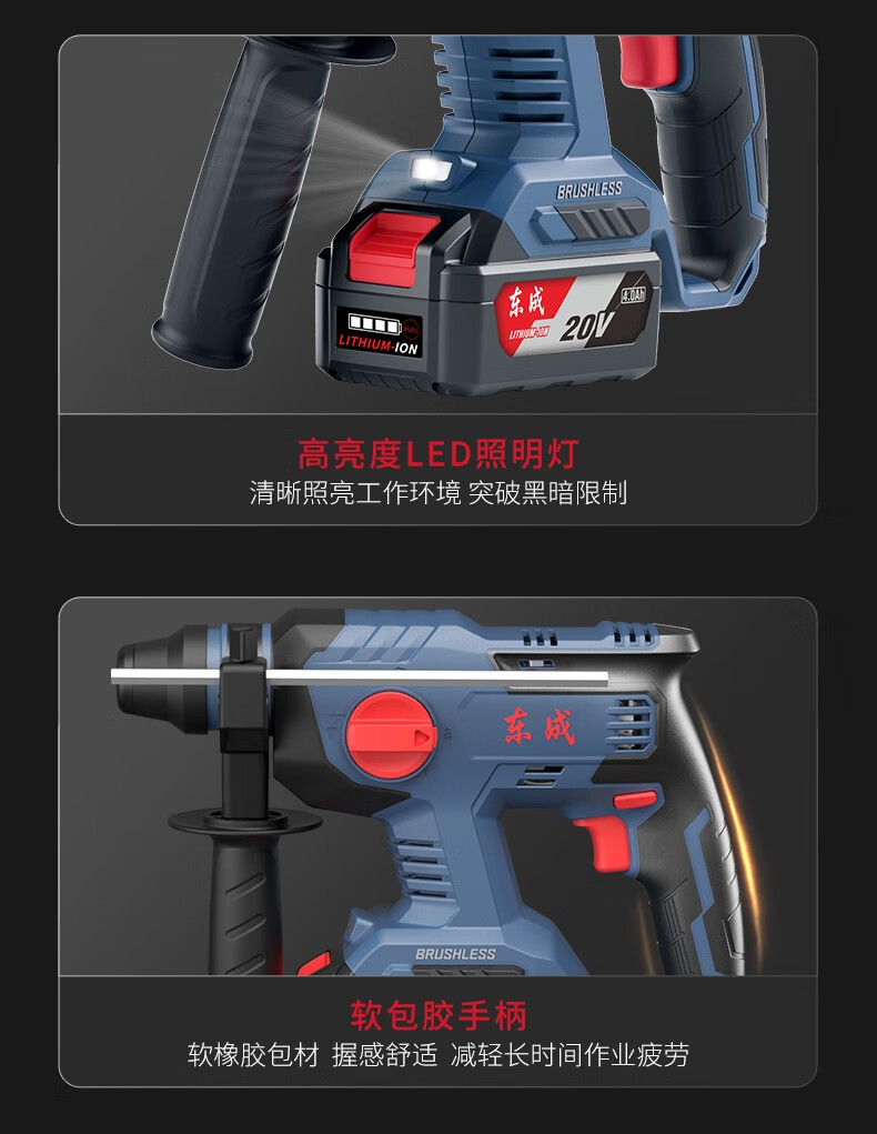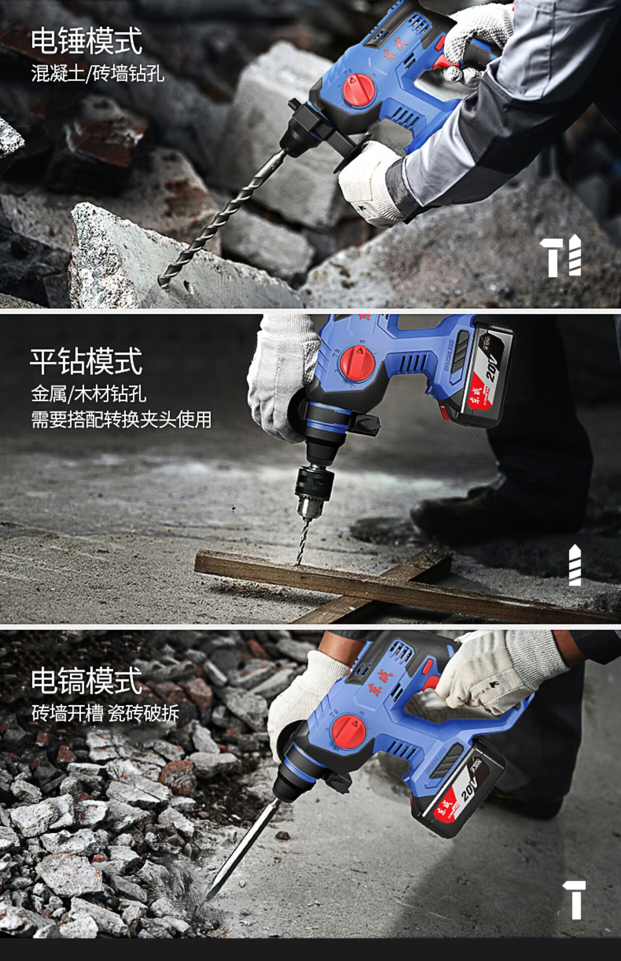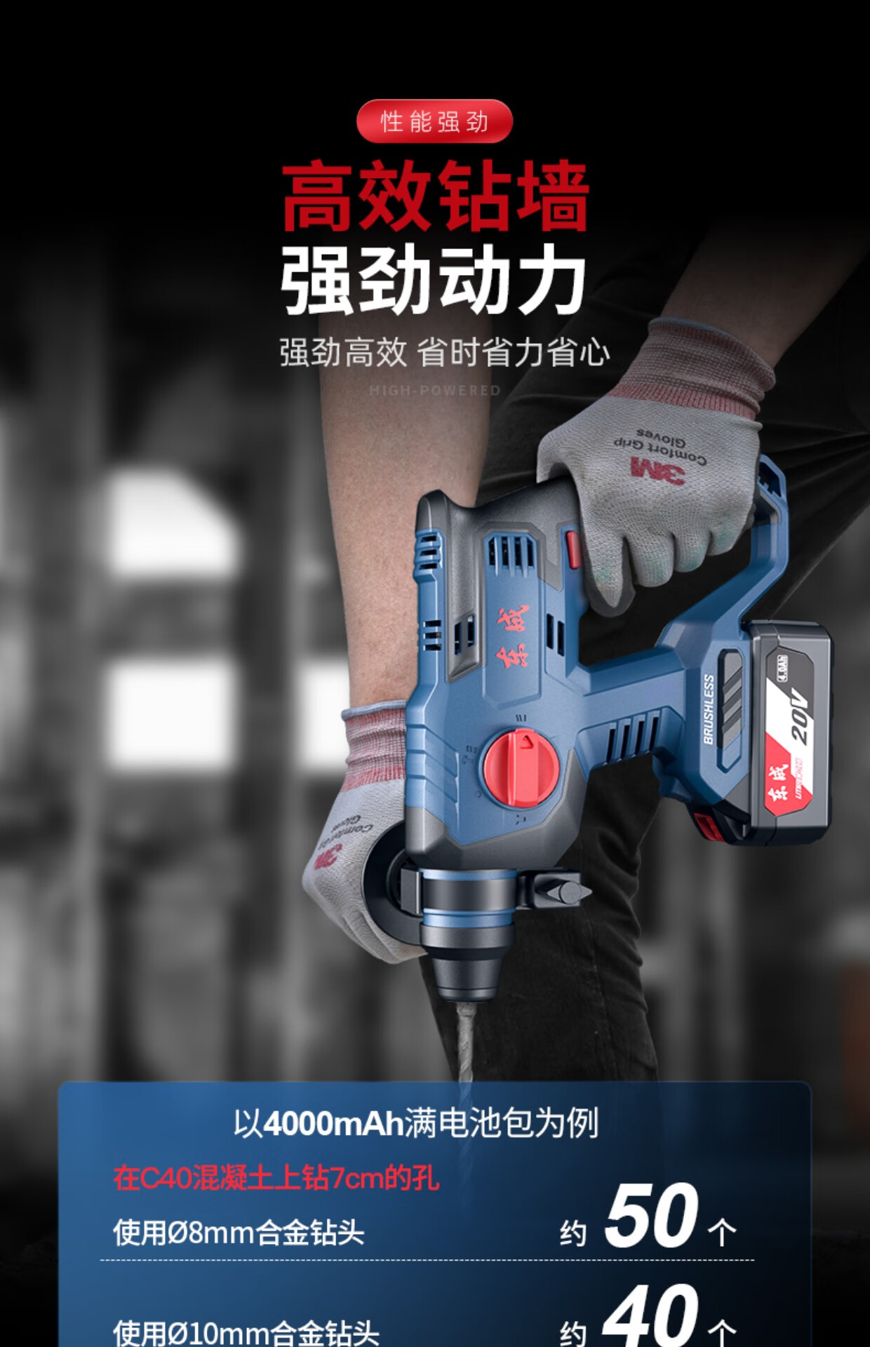 Dongcheng brushless rechargeable electric hammer pickaxe three-purpose high-power concrete impact hammer pickaxe DCZC22B 4.0 dual electric