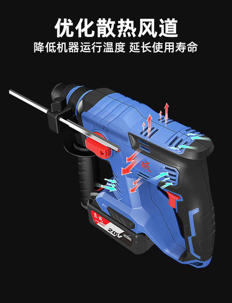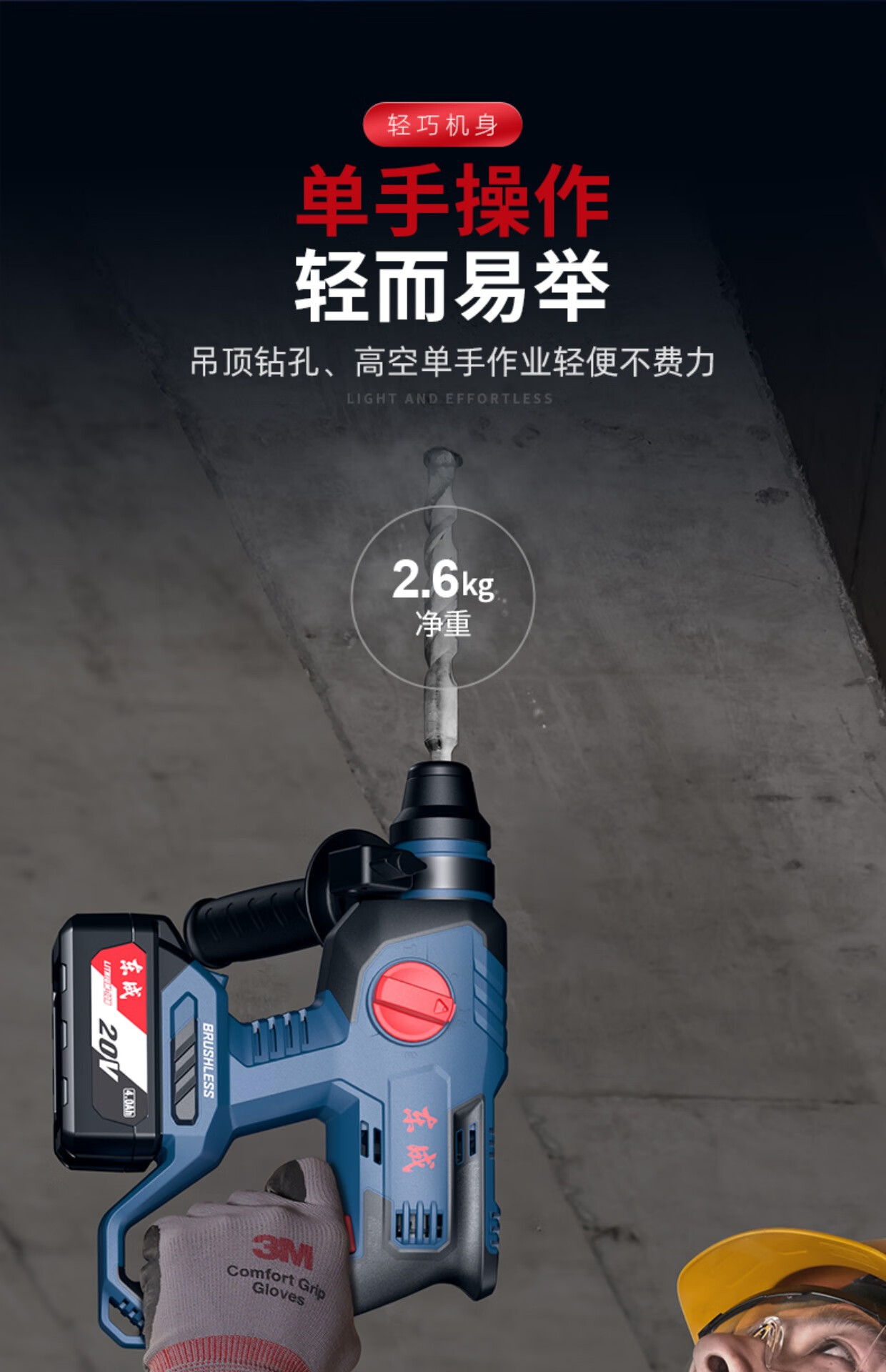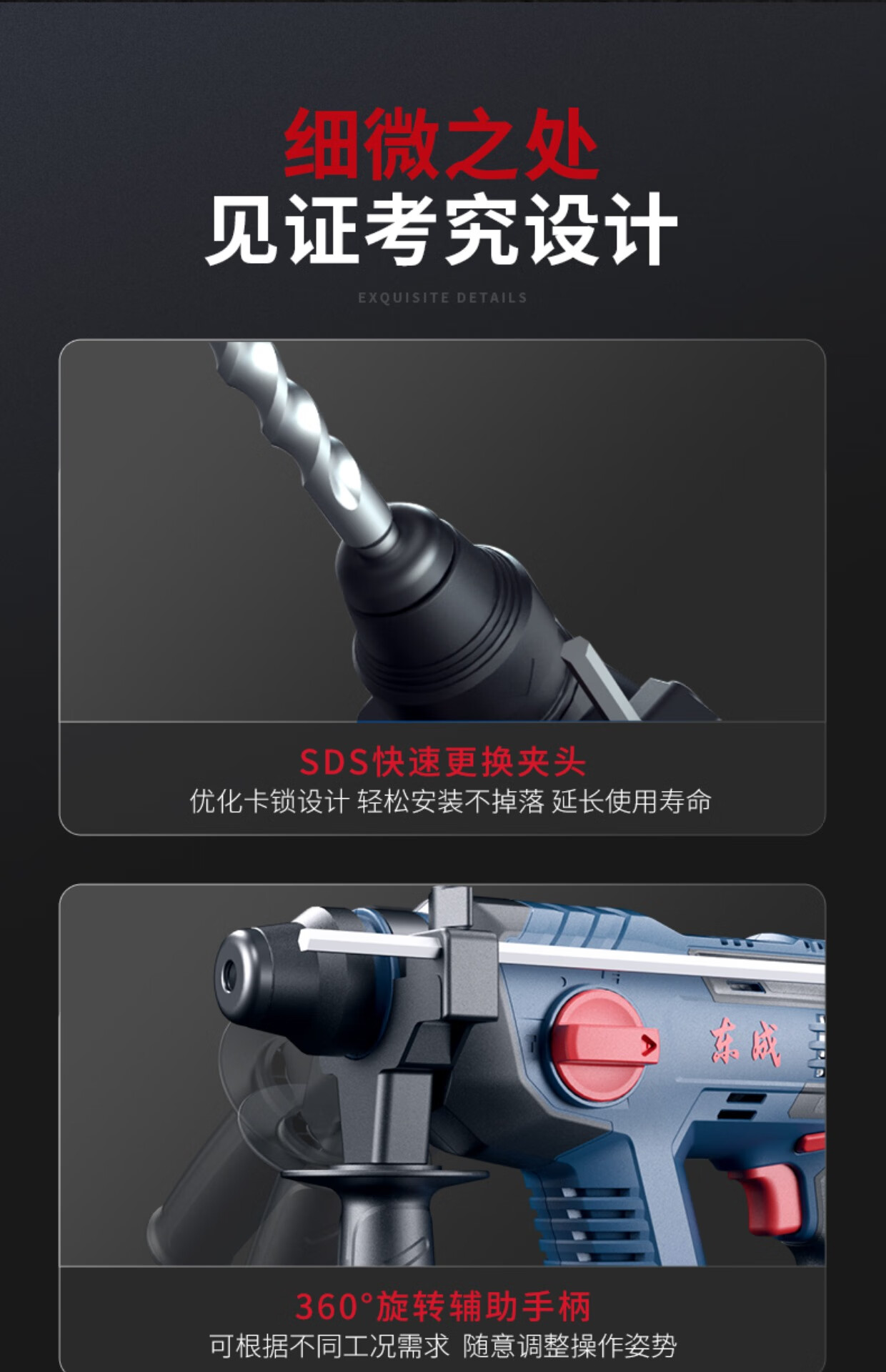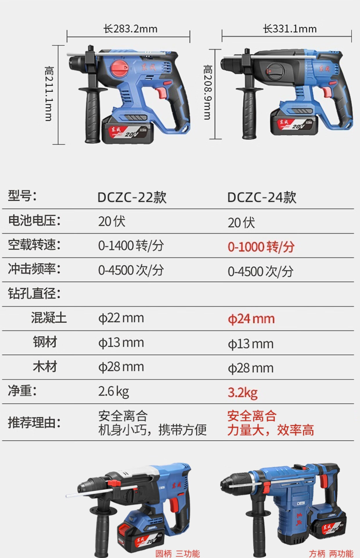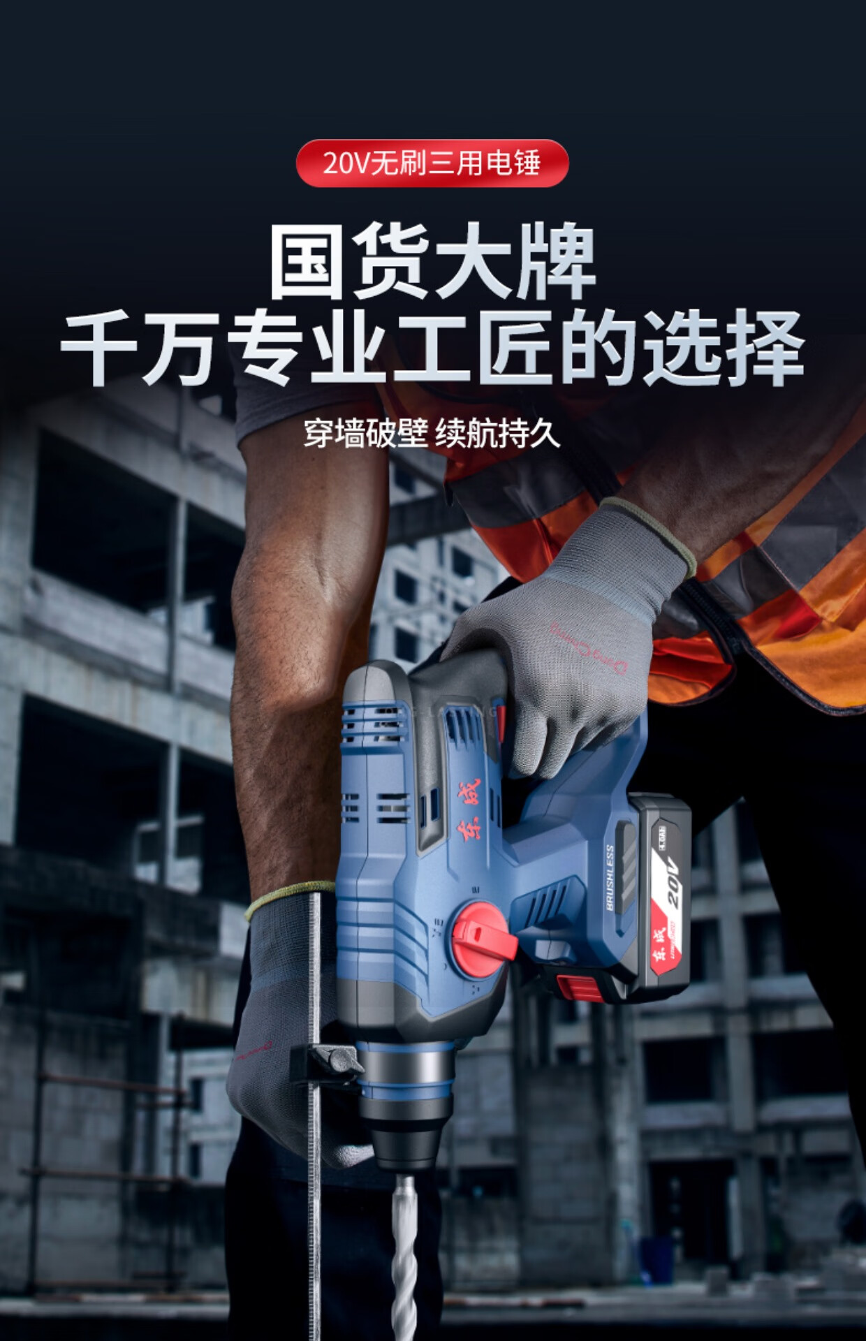 Dongcheng brushless rechargeable electric hammer pickaxe three-purpose high-power concrete impact hammer pickaxe DCZC22B 4.0 dual electric