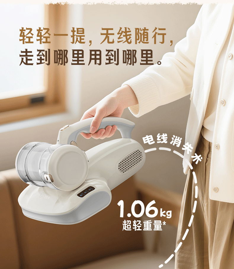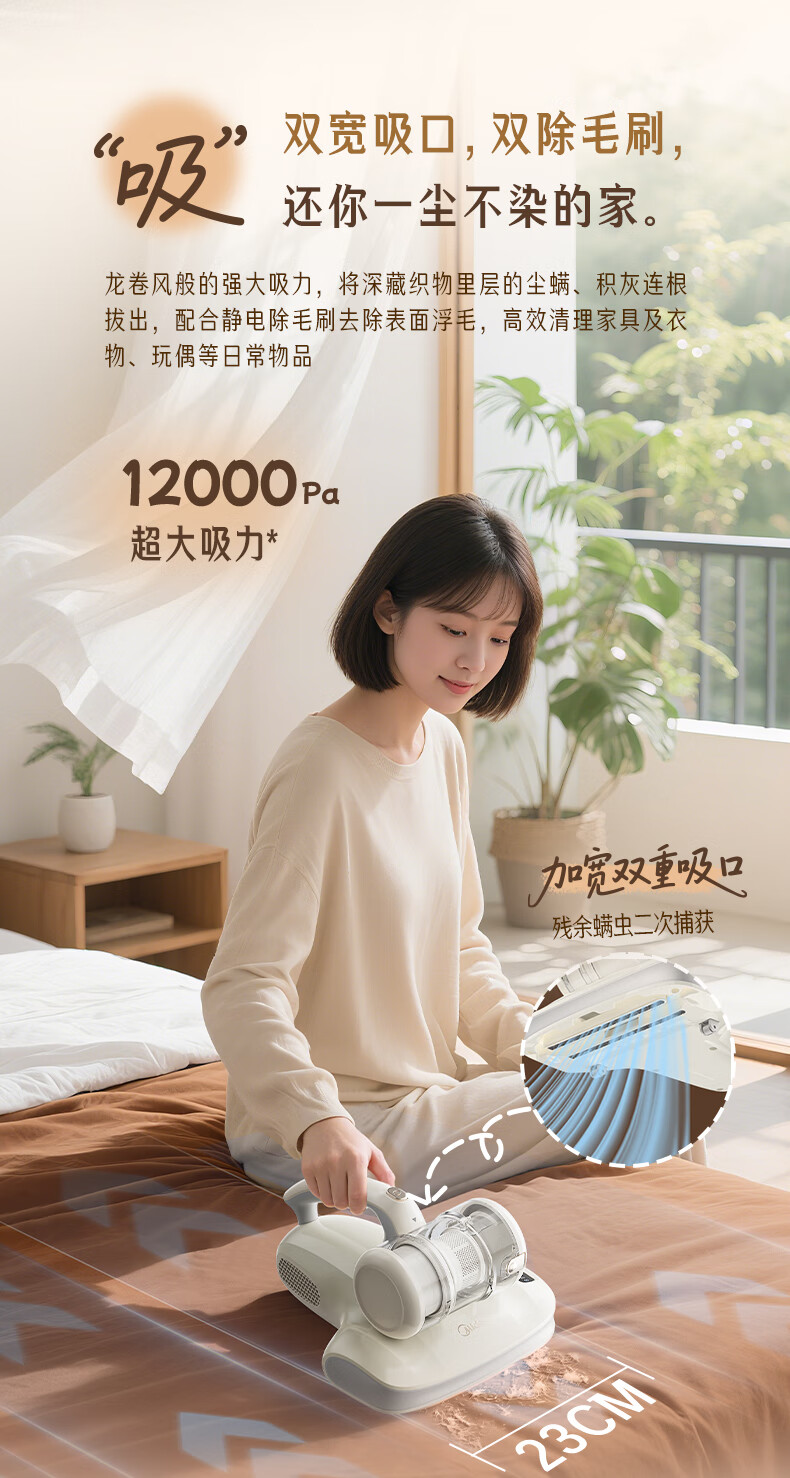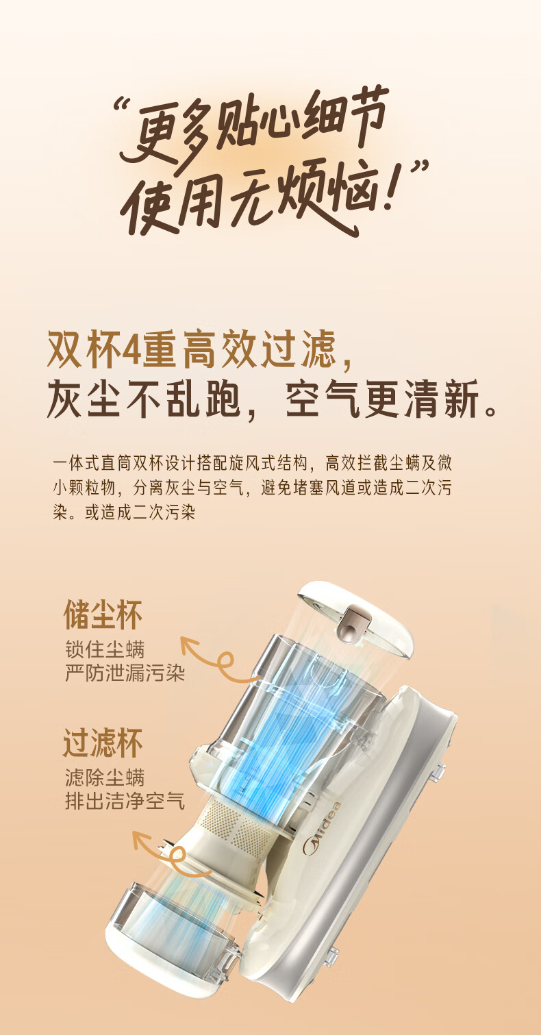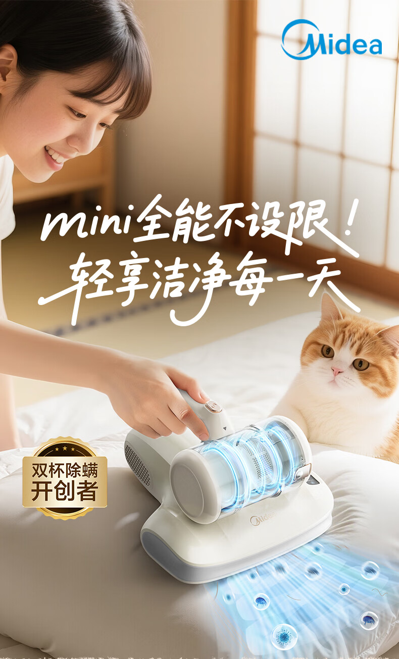Midea Mite Remover BC300 Double Cup Wireless Bed Treasure Household Bed Vacuum Cleaner Pet Electrostatic Hair and Mite Remover All-in-One Ultrasonic Mite Remover New Year Gift