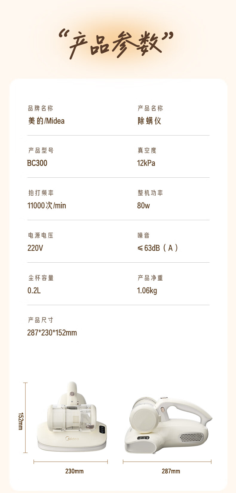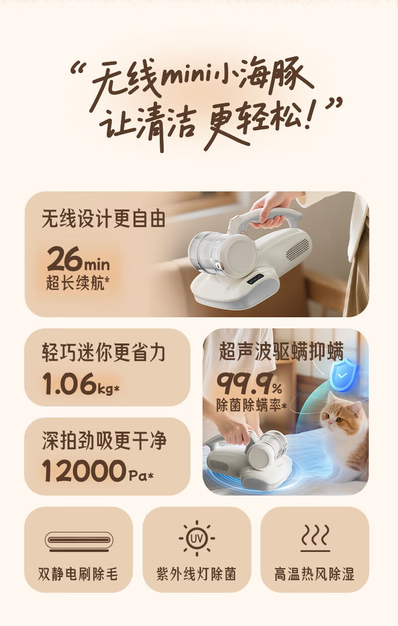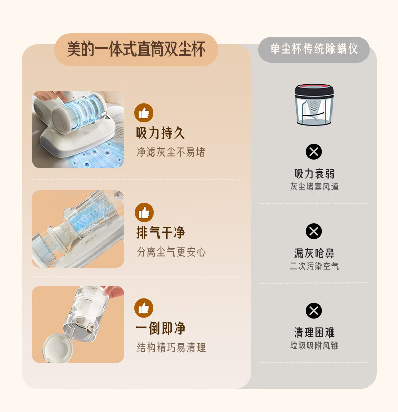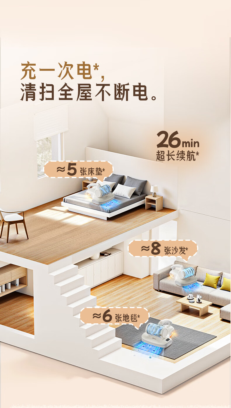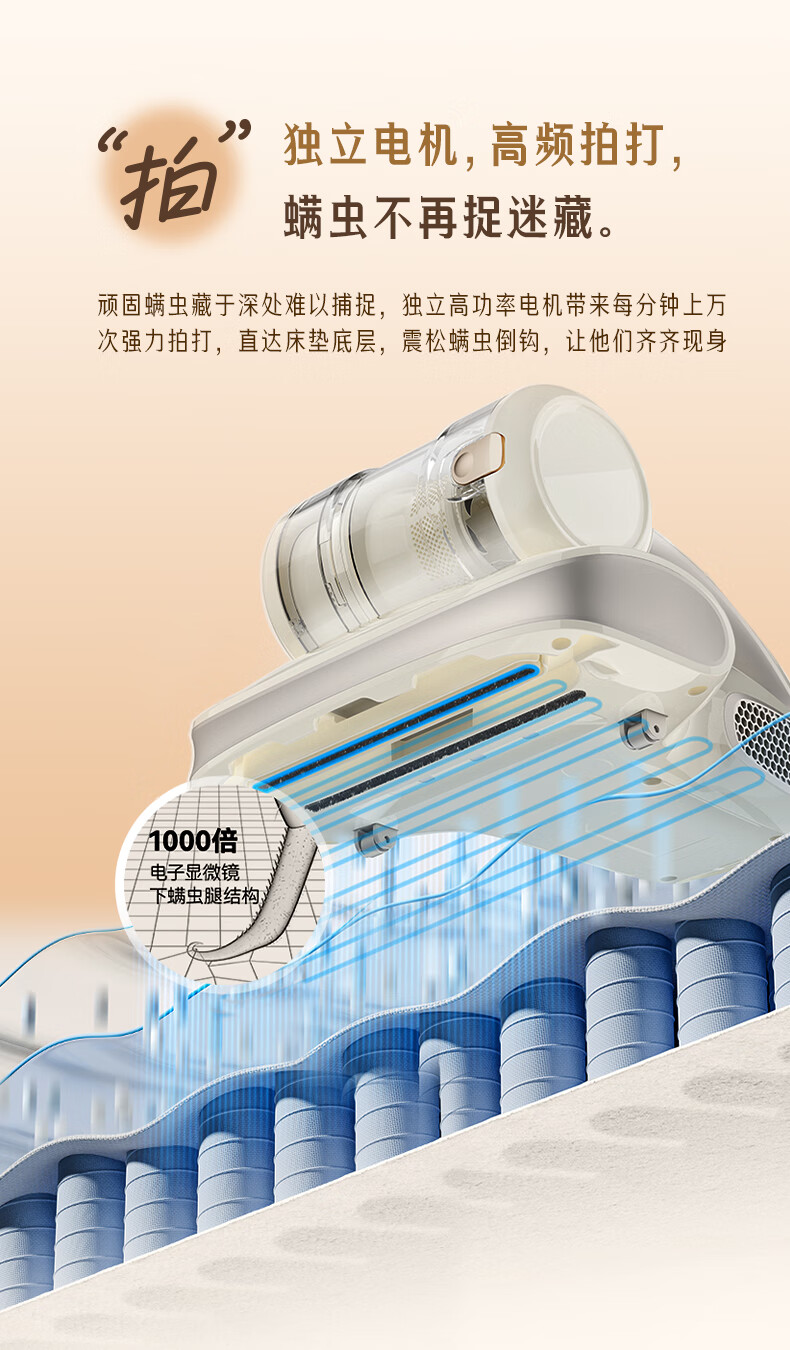 Midea Mite Remover BC300 Double Cup Wireless Bed Treasure Household Bed Vacuum Cleaner Pet Electrostatic Hair and Mite Remover All-in-One Ultrasonic Mite Remover New Year Gift