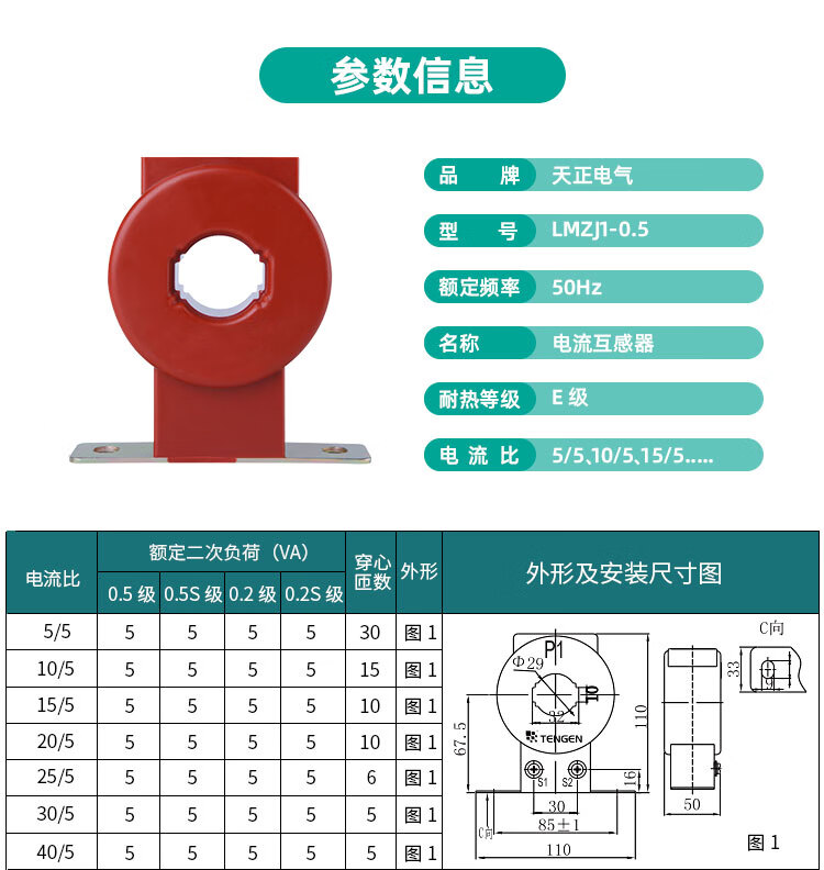 Tianzheng Electric (TENGEN) current transformer LMZJ1-0.5 150/5 30 0.5 level