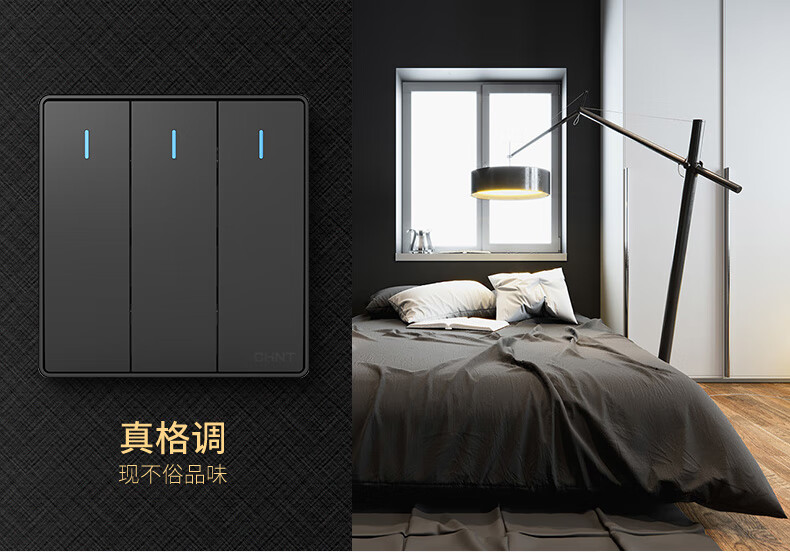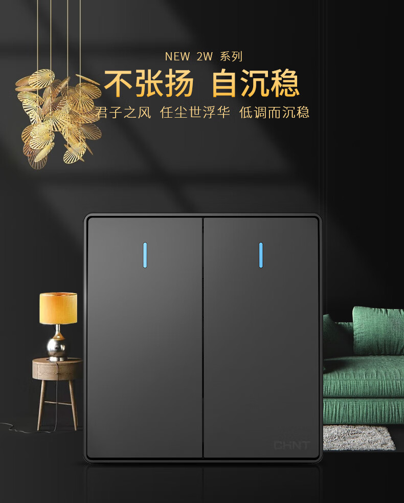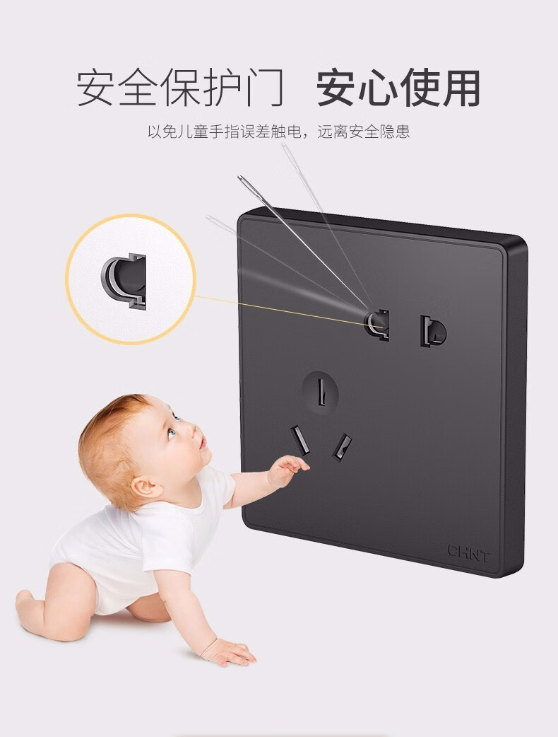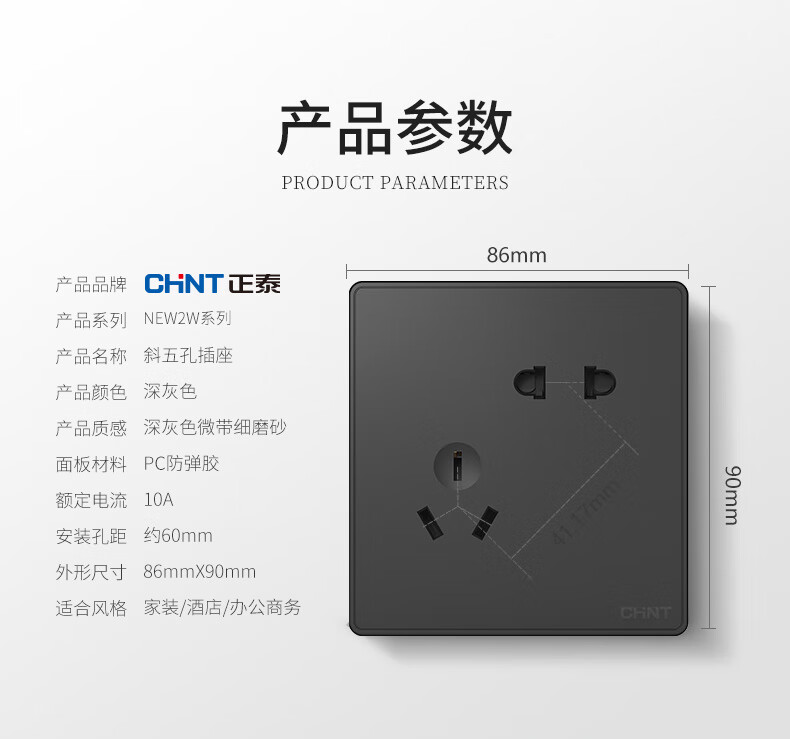 Chint (CHNT) switch socket type 86 narrow frame large panel home wall black five-hole oblique five-hole socket USB power network cable jack 2W dark gray oblique five-hole