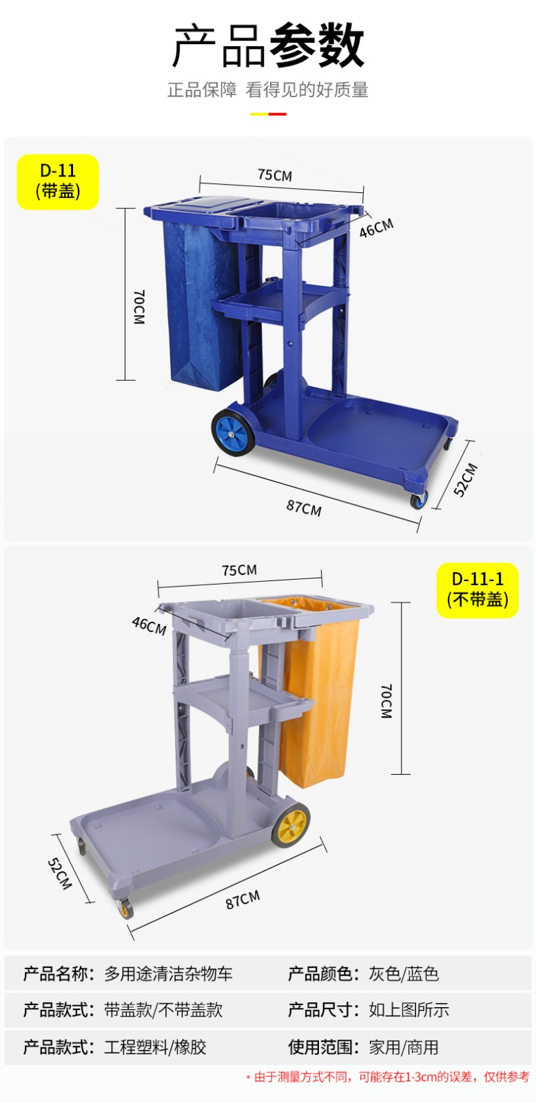 Kaimujie cleaning cart multi-functional multi-purpose cleaning cart cleaning hotel property room service tools linen cart (gray) thickened version with cover