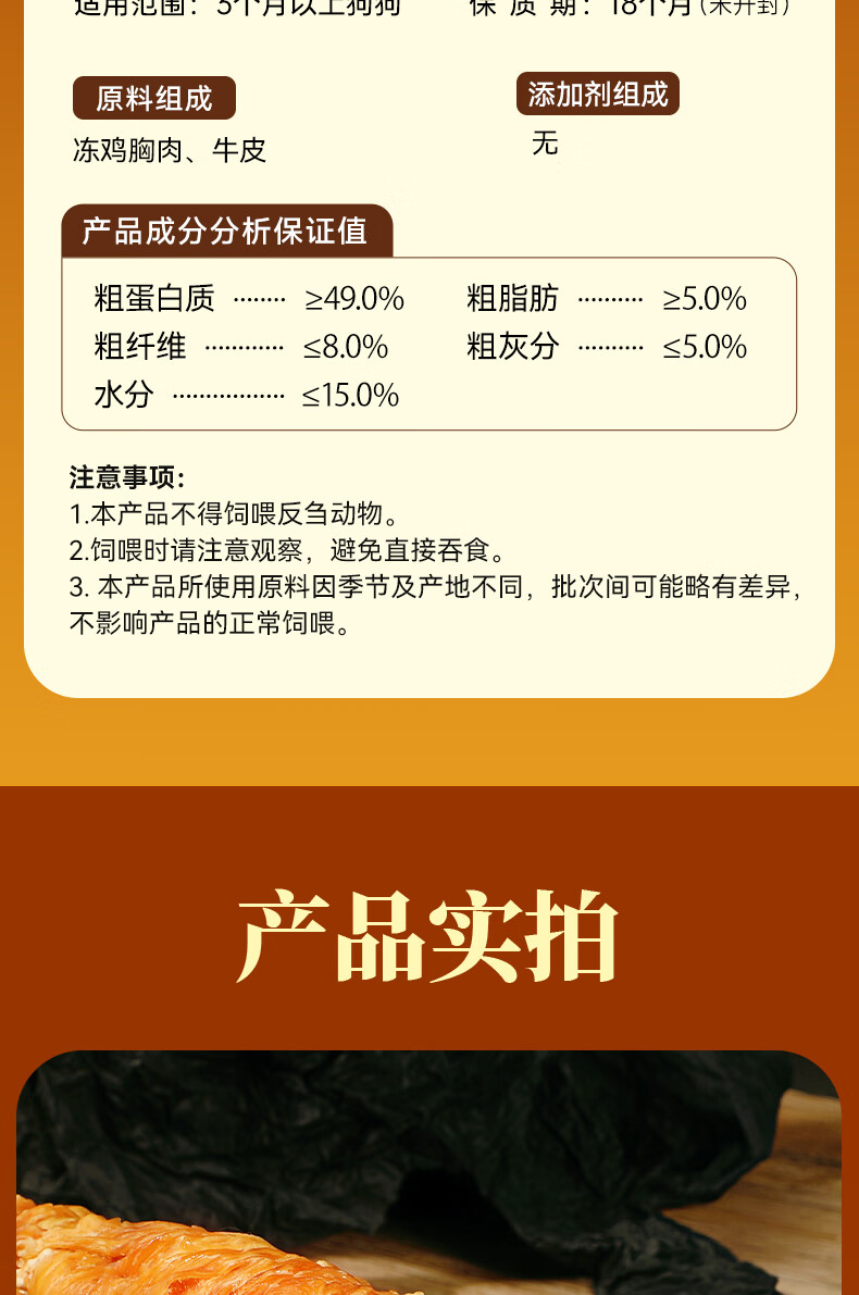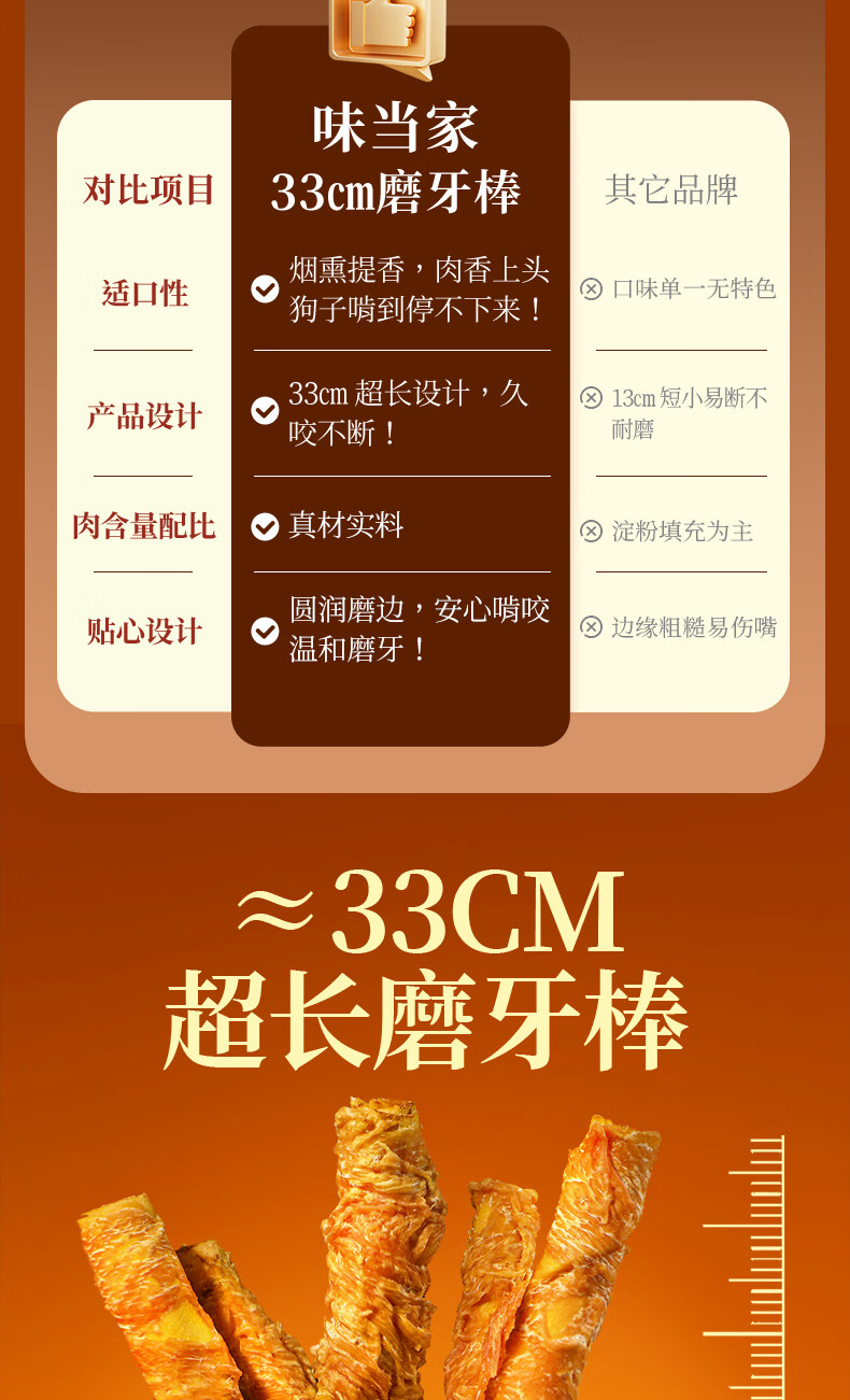 Weidangjia dog teething sticks, large dog snacks, small and big dog bones, bite-resistant calcium supplement dog snacks, chicken kraft rolls 180g