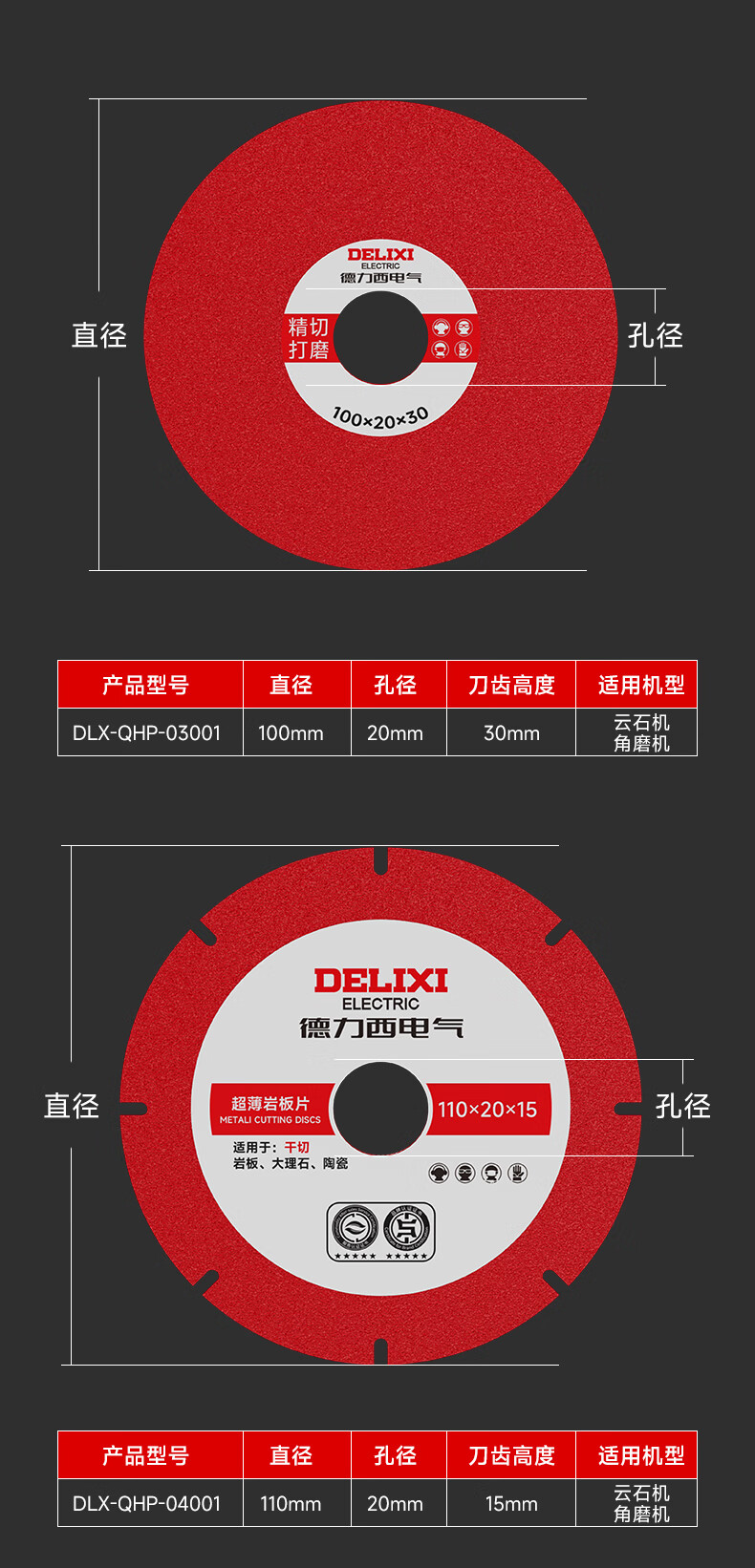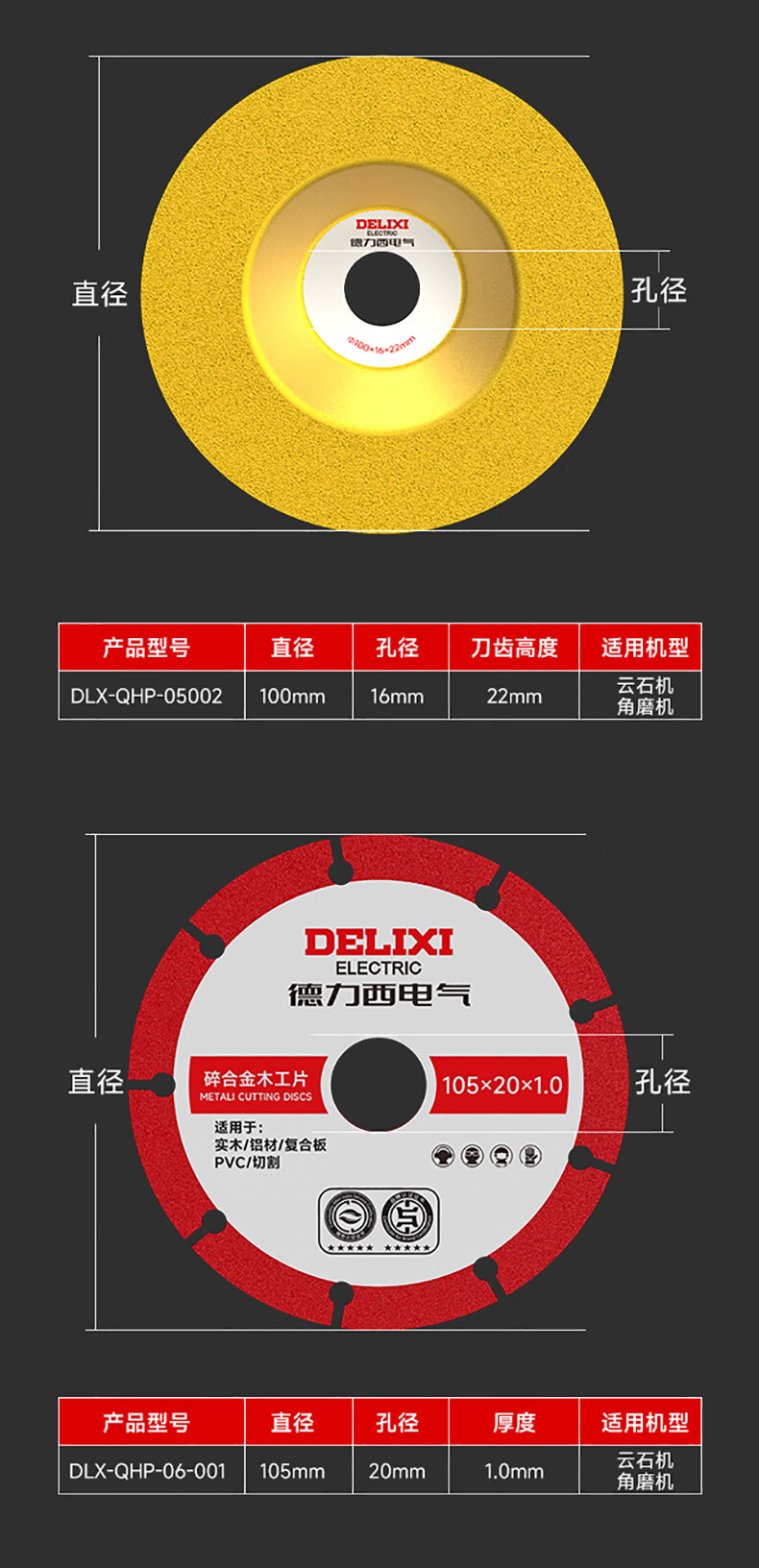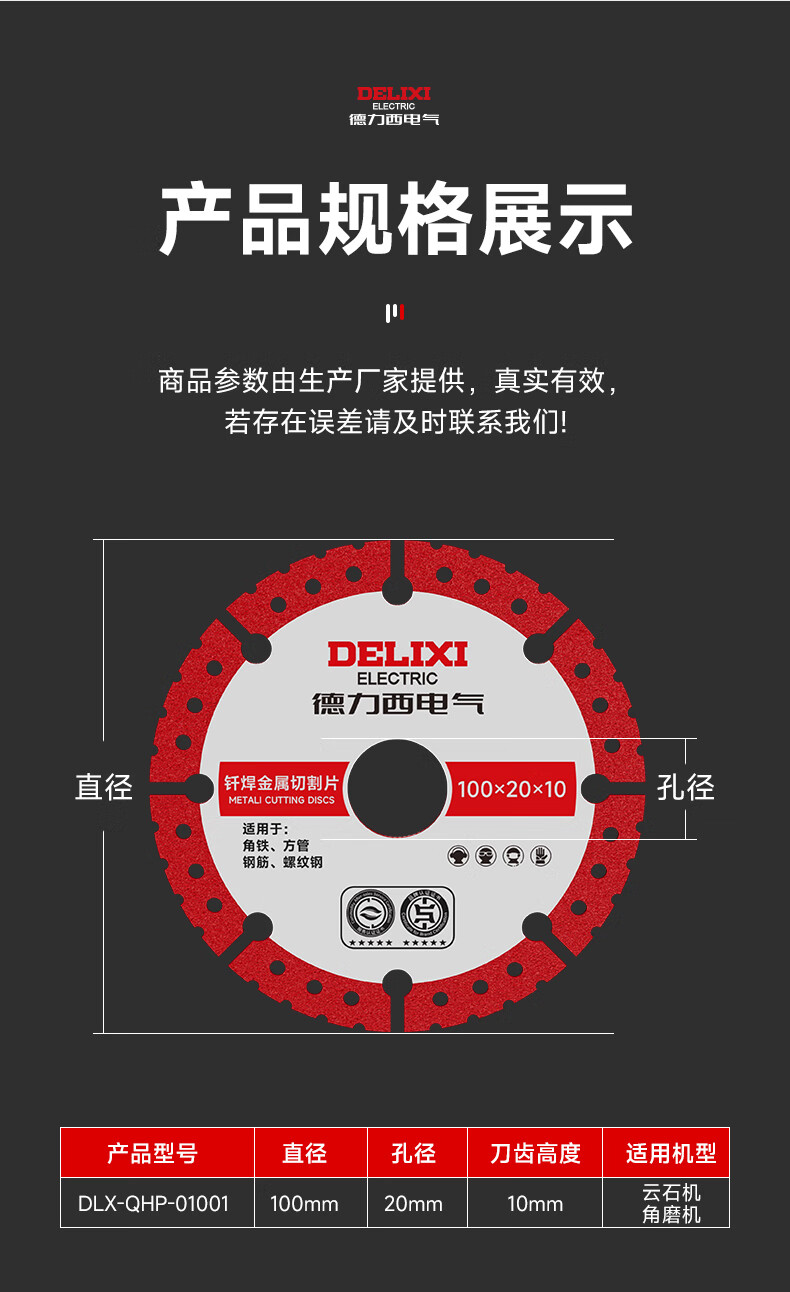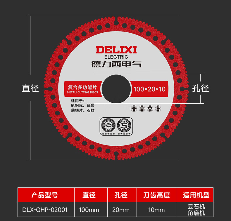 DELIXI ELECTRIC angle grinder cutting blade, alloy woodworking special saw blade, solid wood composite board cutting saw blade, 1 piece