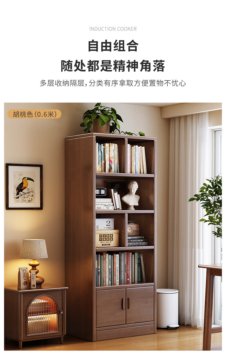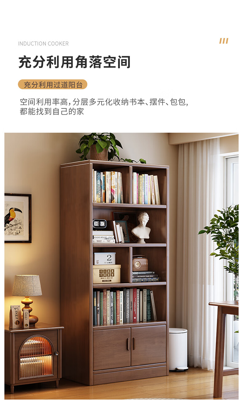 Jiayi solid wood bookshelf storage rack floor-to-ceiling one wall bedroom bookcase living room storage rack simple shelf