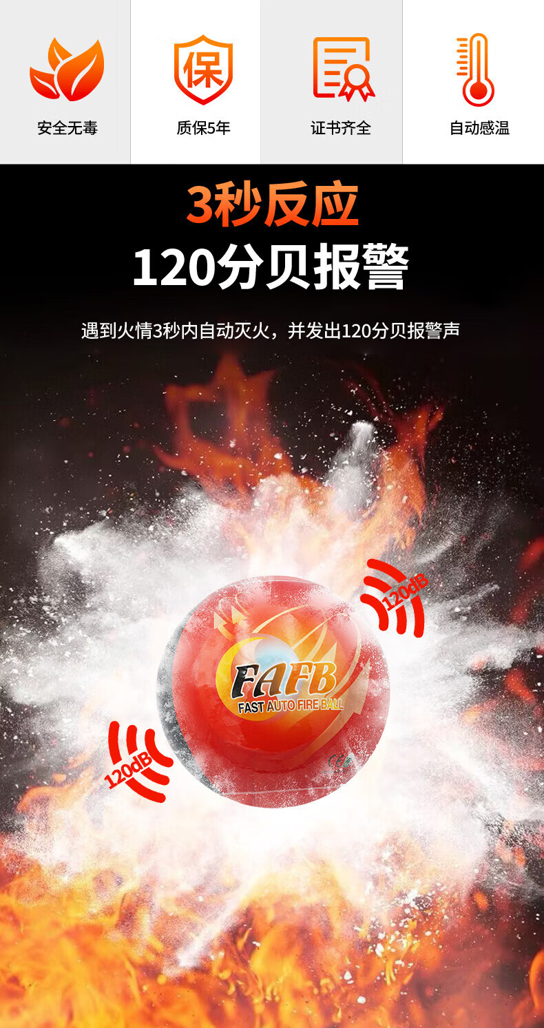 FAFB automatic induction fire extinguishing ball fire extinguishing bomb dry powder vehicle household kitchen commercial fire throwing fire extinguishing device