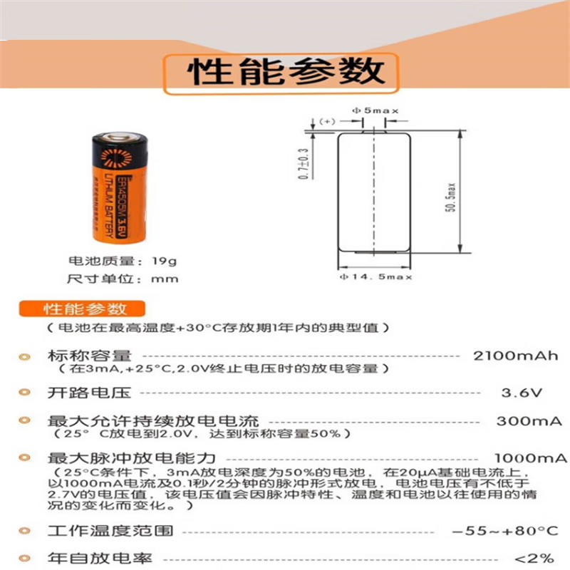 Zhengxinyuan ER14505M 3.6V smart water meter patrol battery ic plug-in lithium battery flat head without plug (2 pcs)