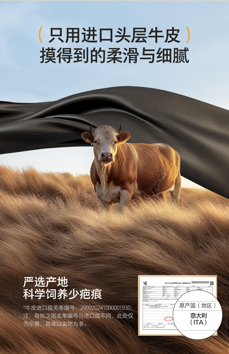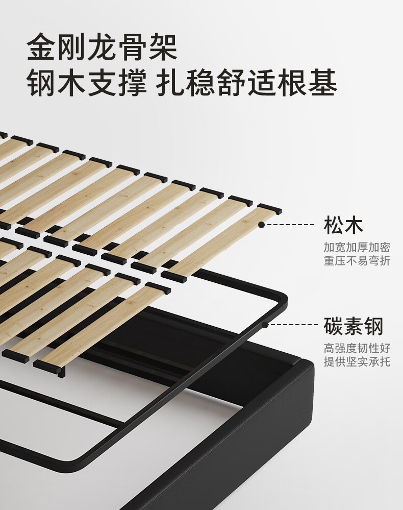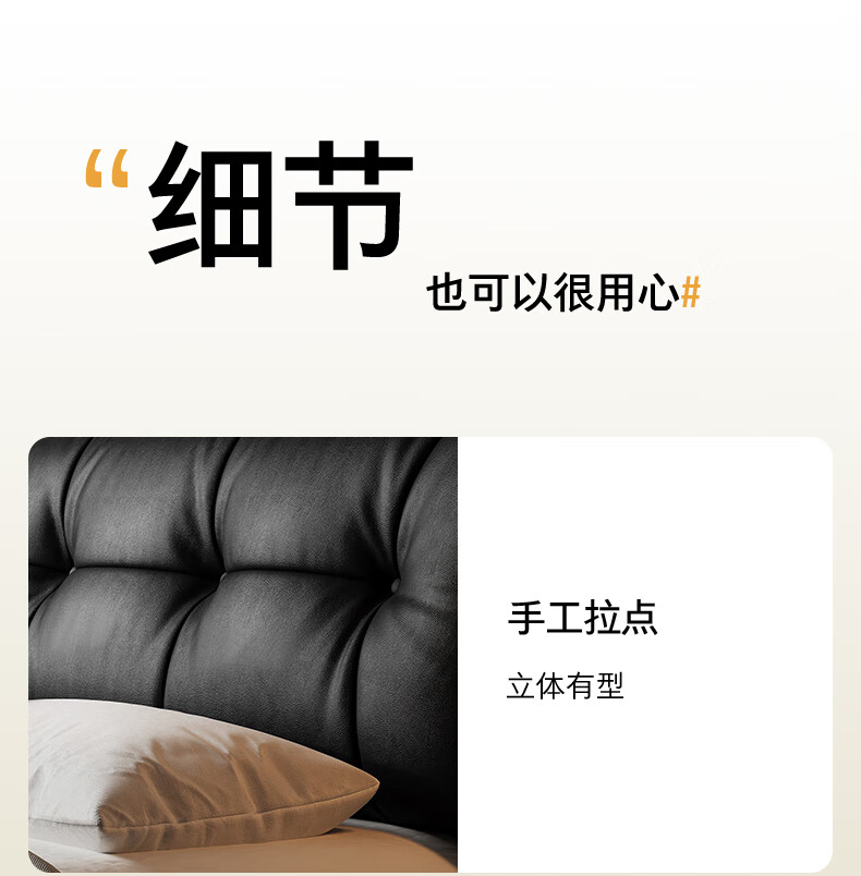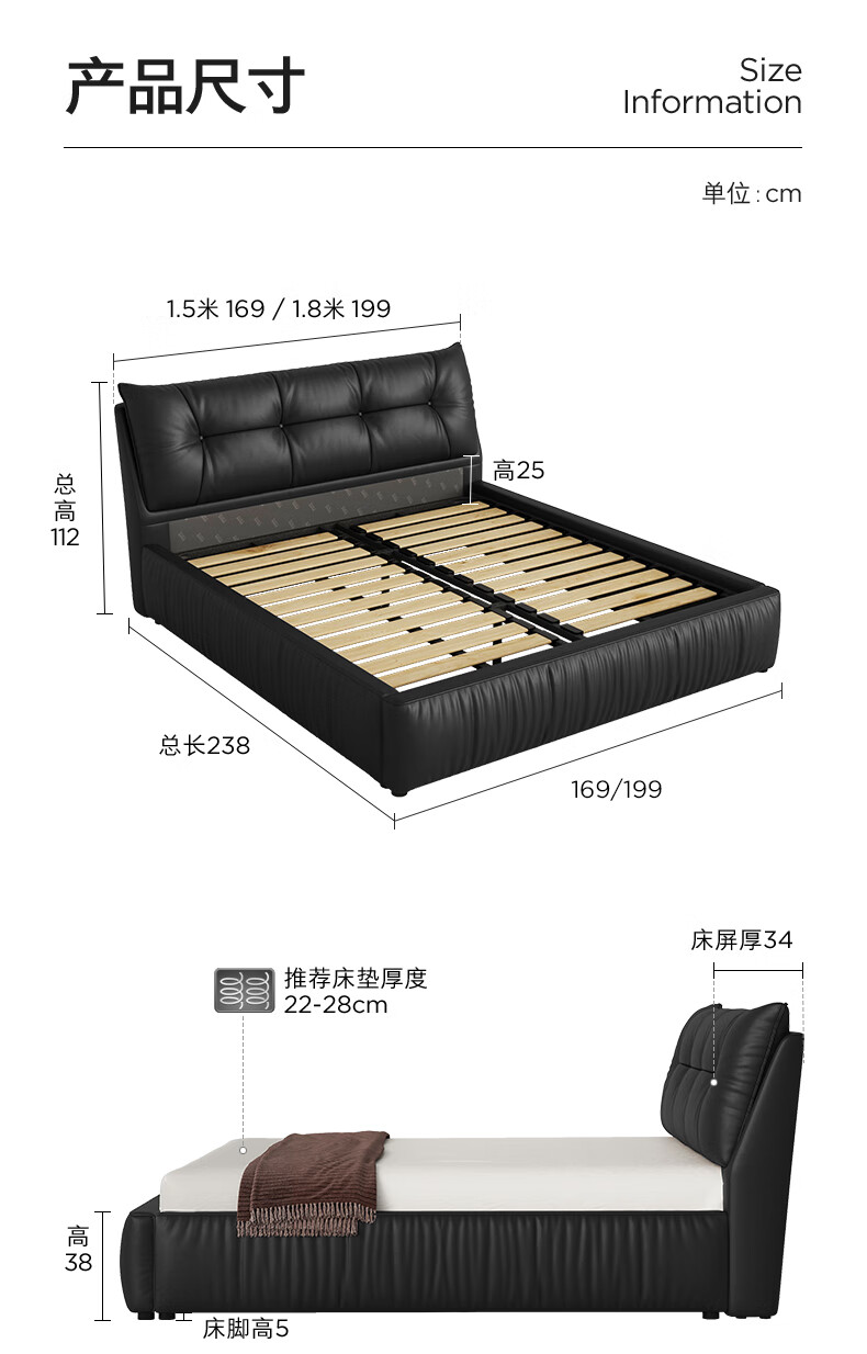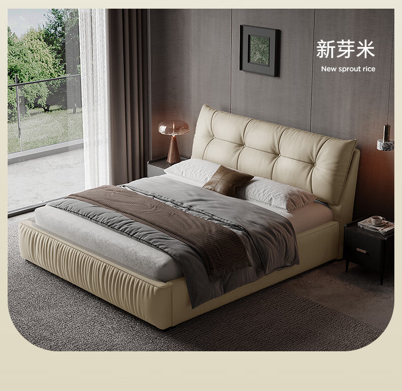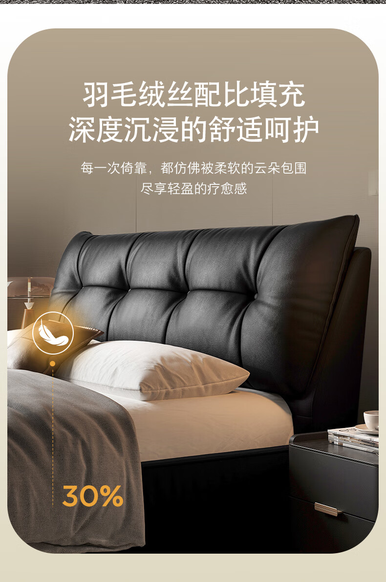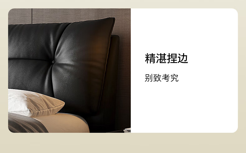KUKA Italian style light luxury floor-standing first-layer cowhide bed, starry night black, edge feathers 1.8*2.0M