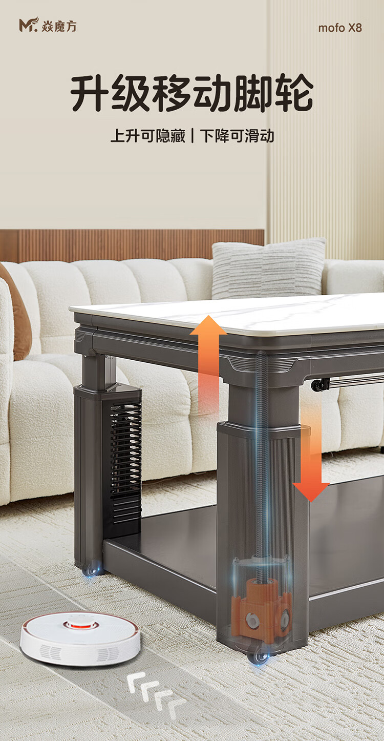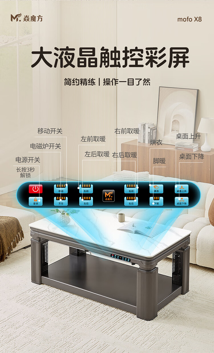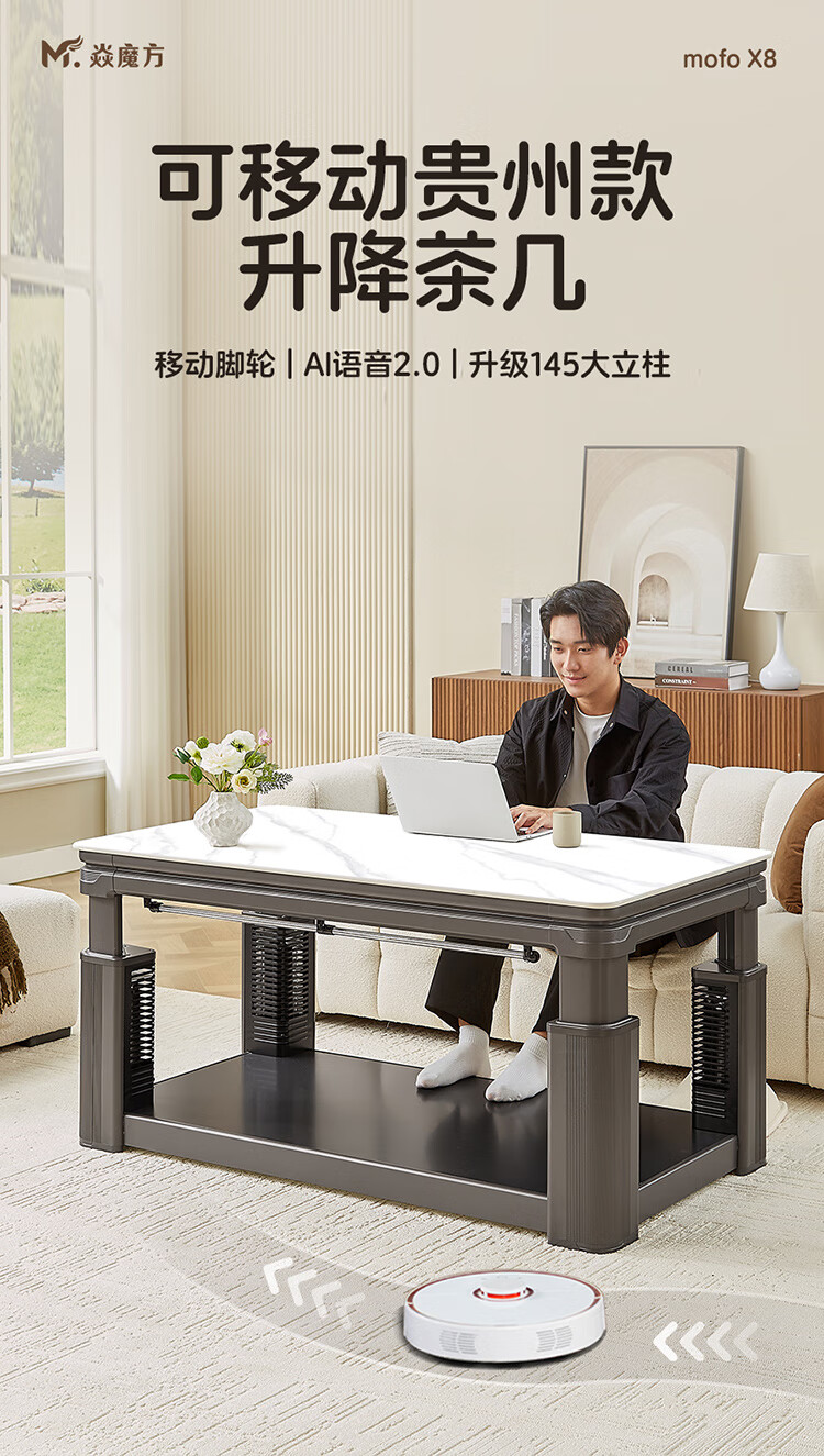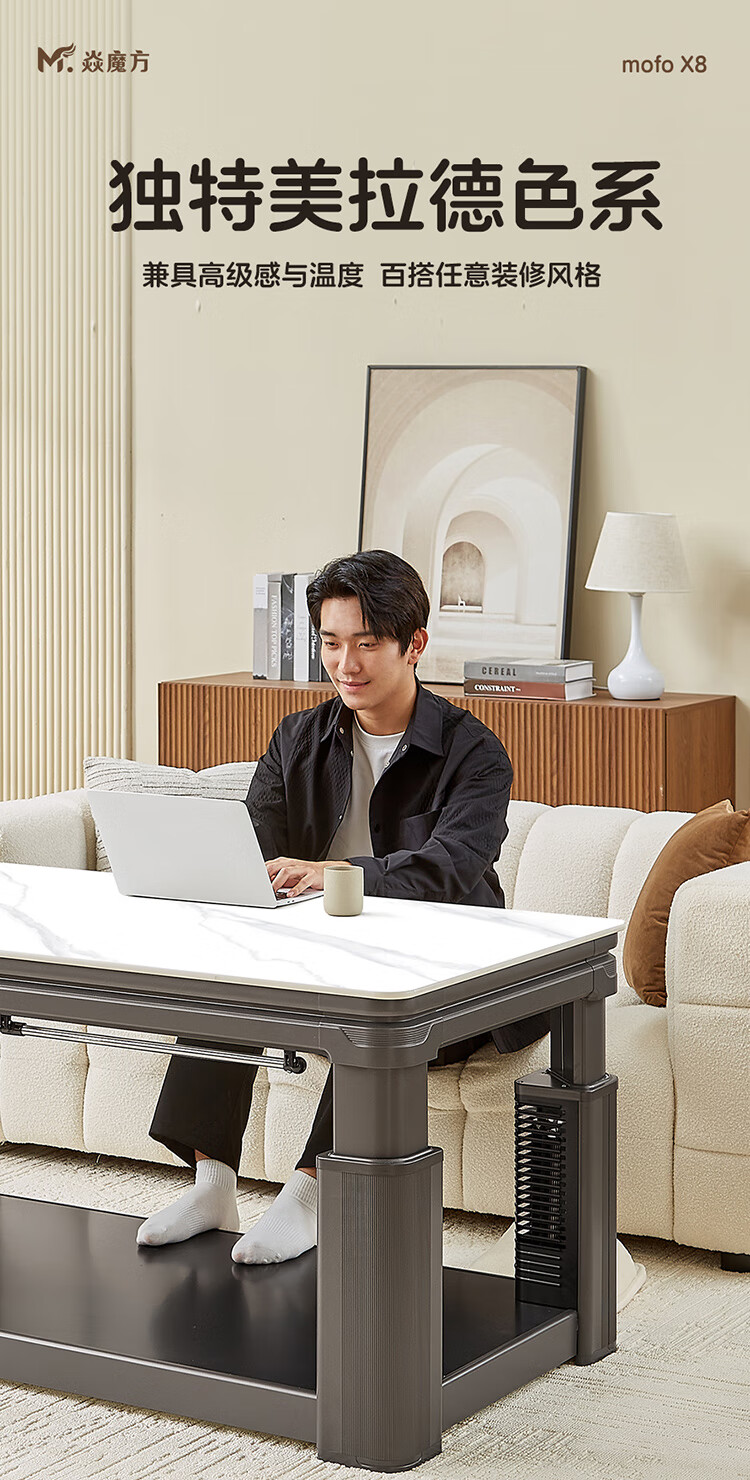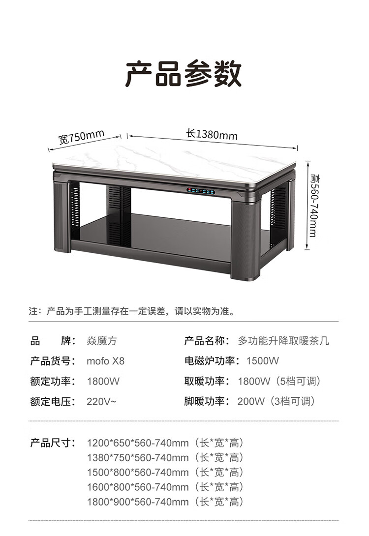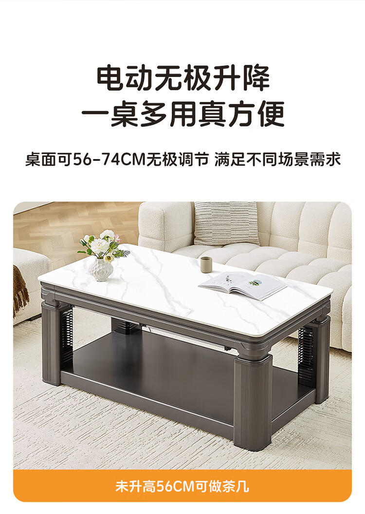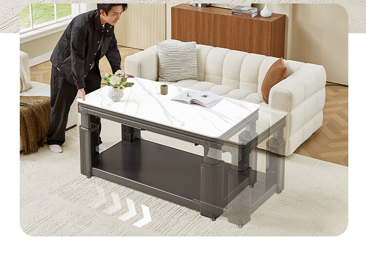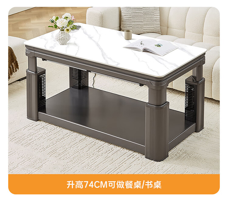 Yan Rubik's Cube new electric heating table lift electric stove stove table integrated heating home living room coffee table fire table mobile electric heating table X8 (1380 hidden stove brown coffee color)