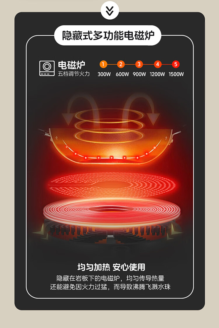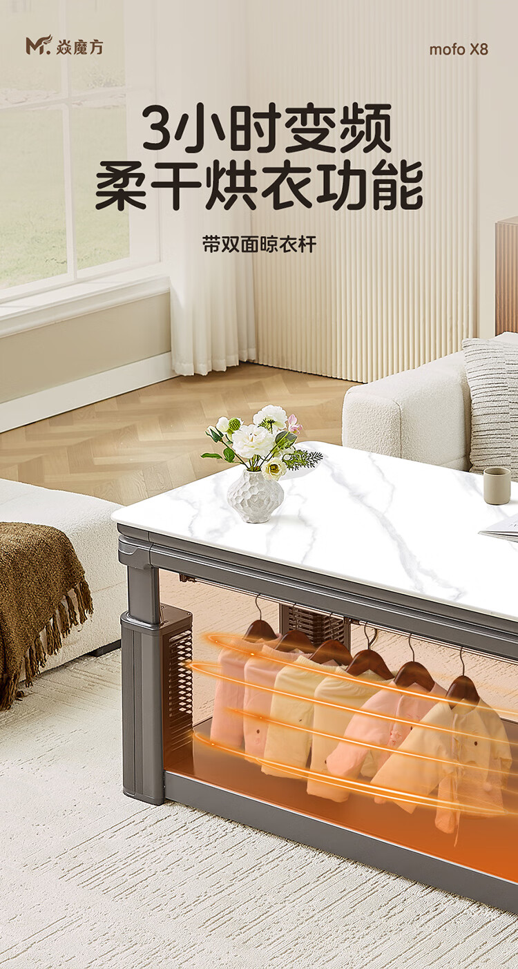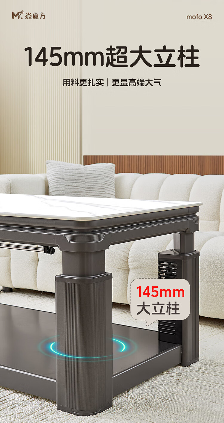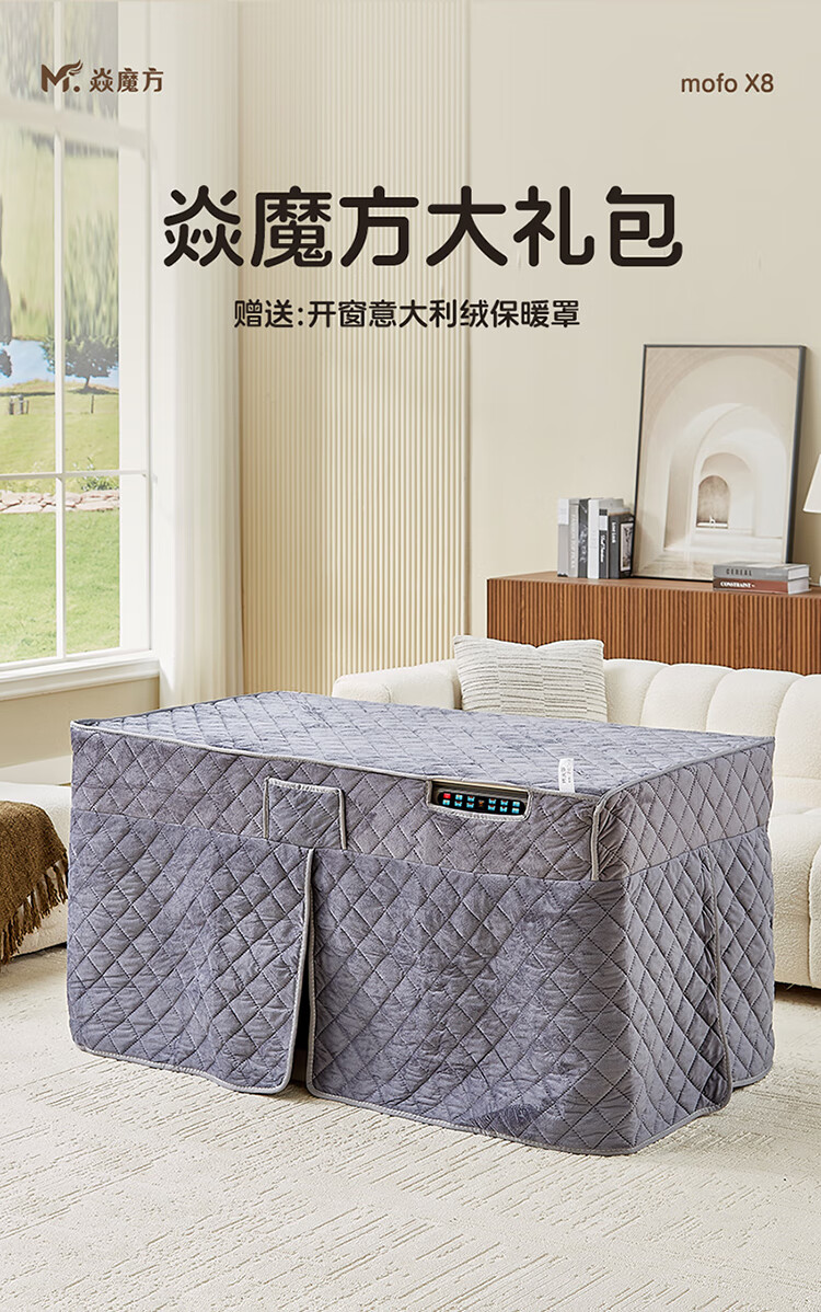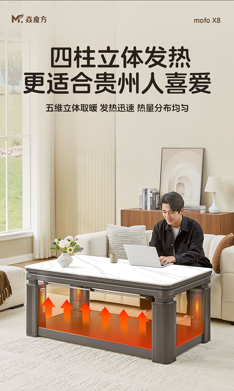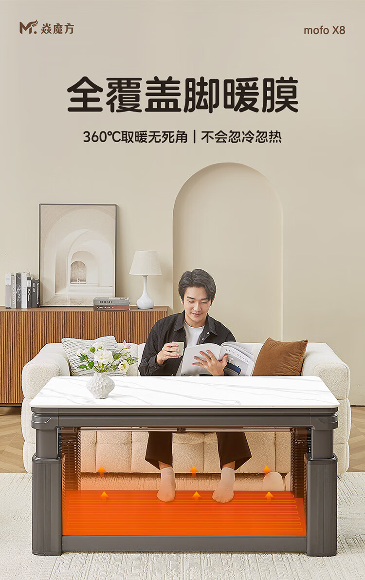 Yan Rubik's Cube new electric heating table lift electric stove stove table integrated heating home living room coffee table fire table mobile electric heating table X8 (1380 hidden stove brown coffee color)