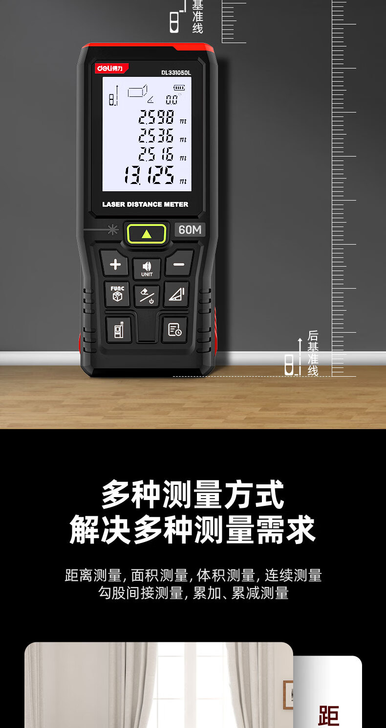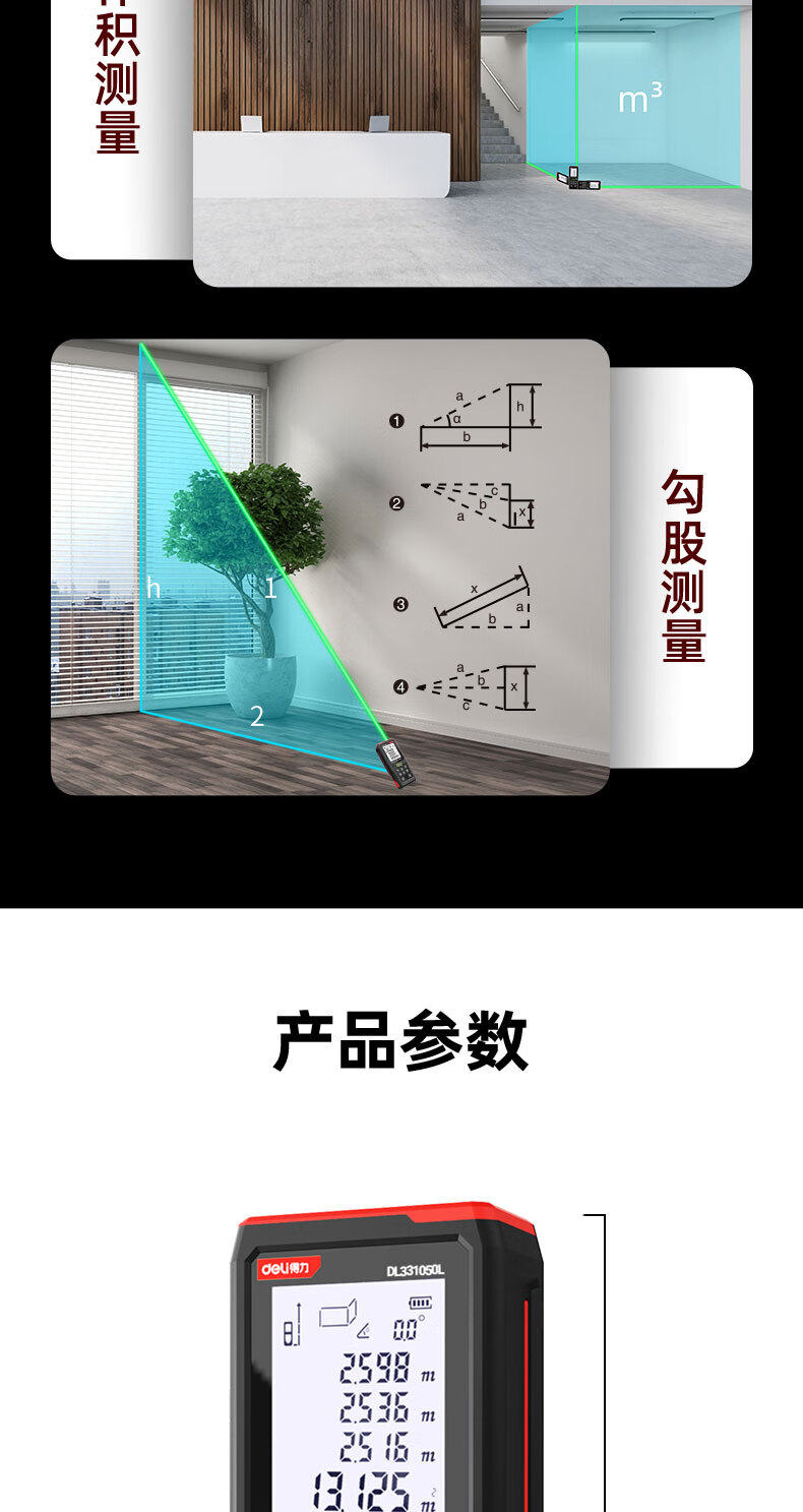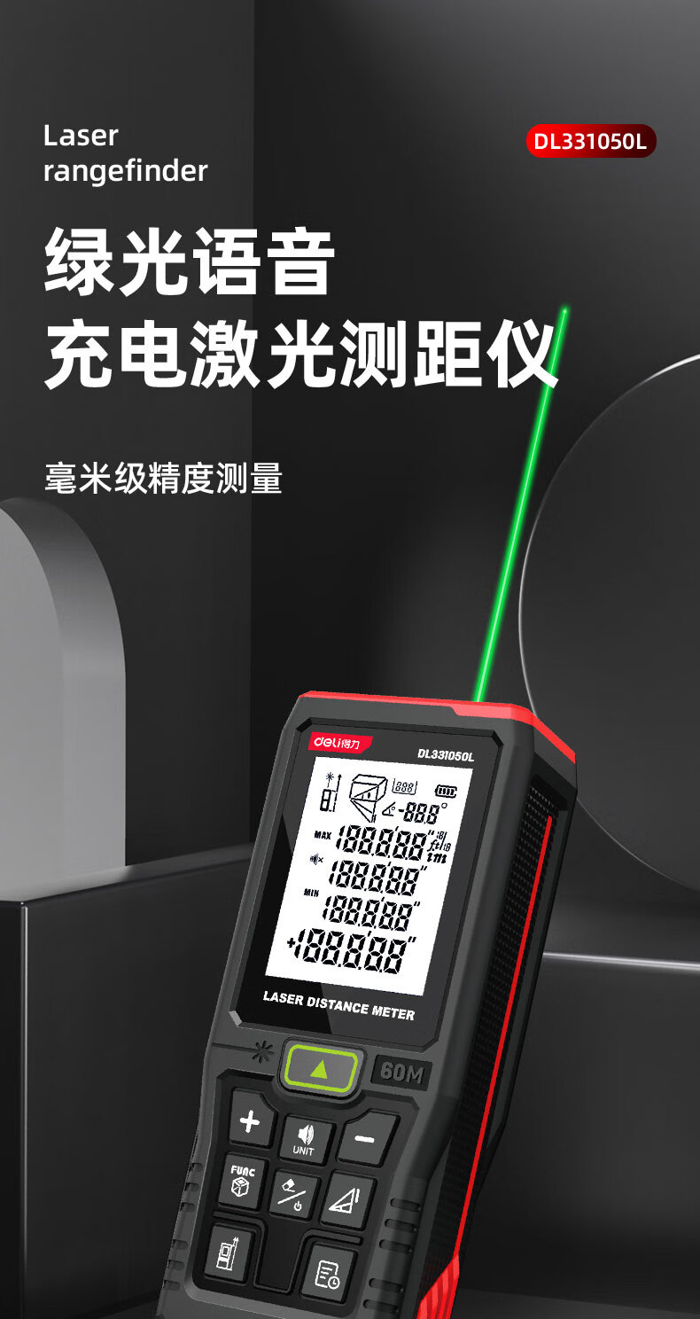 Deli green light outdoor laser distance meter high precision infrared outdoor electronic ruler strong light handheld measuring ruler DL331050L green light distance meter 60m