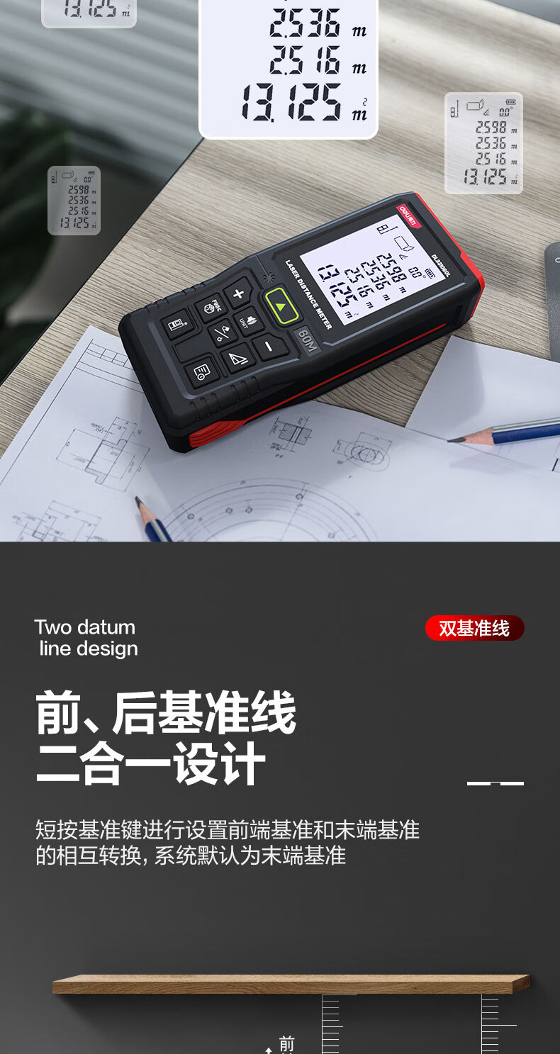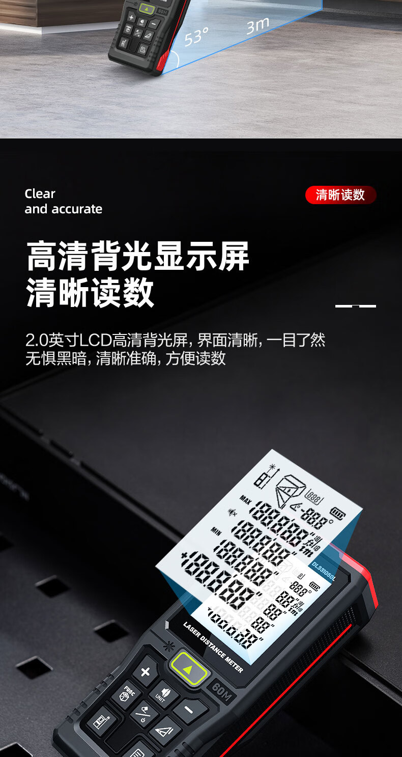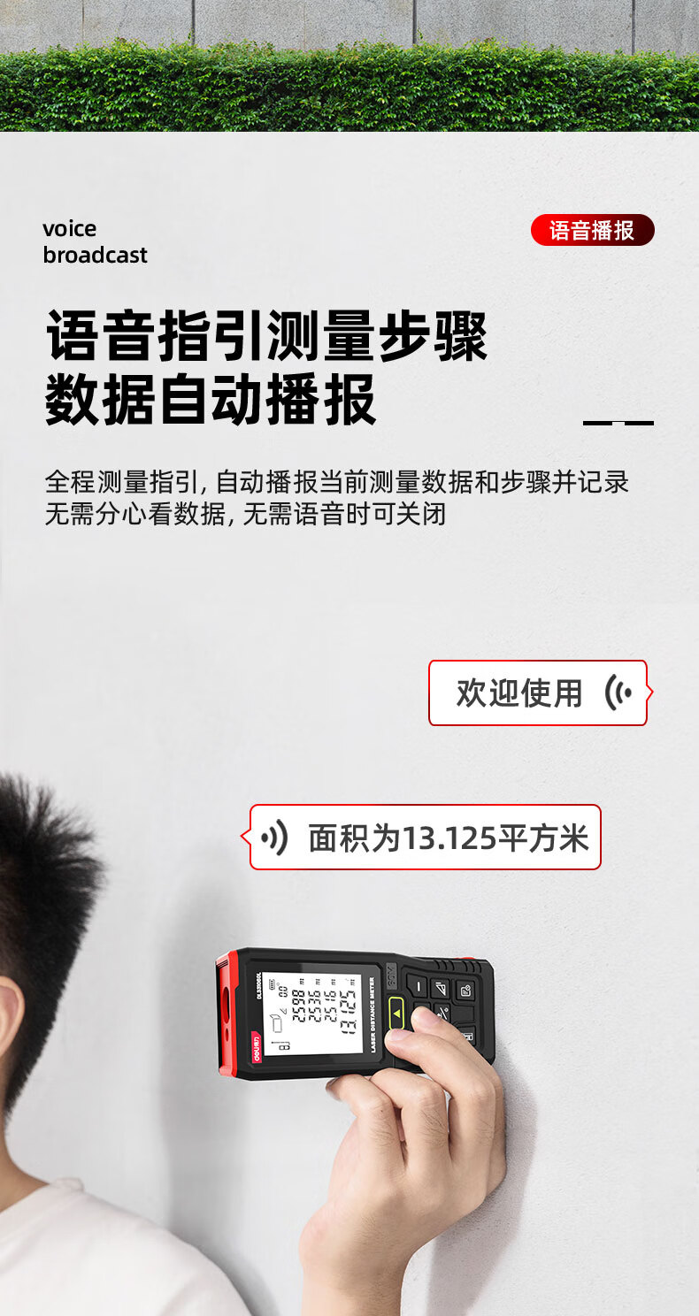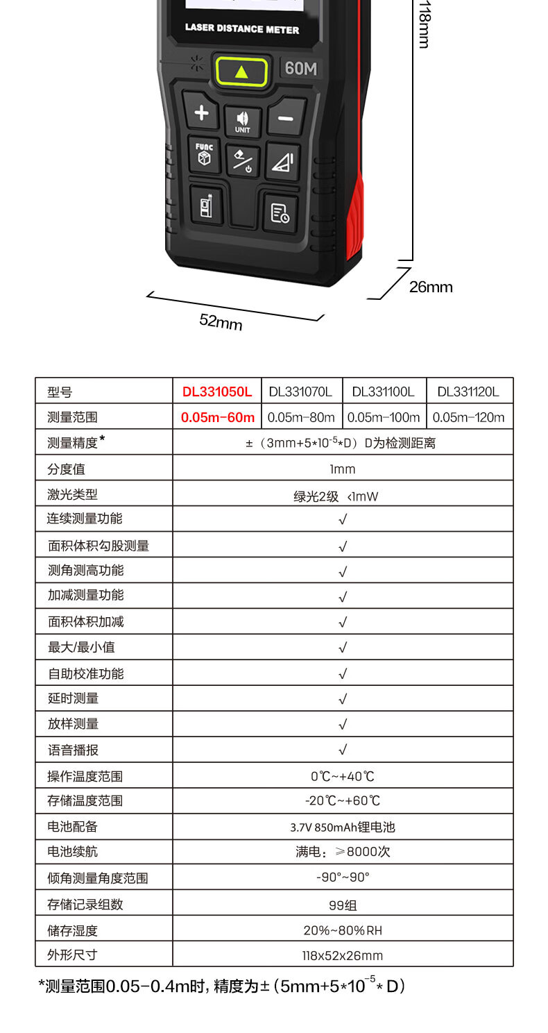 Deli green light outdoor laser distance meter high precision infrared outdoor electronic ruler strong light handheld measuring ruler DL331050L green light distance meter 60m