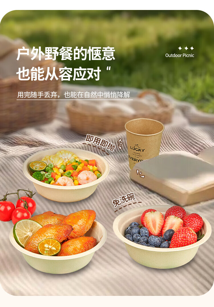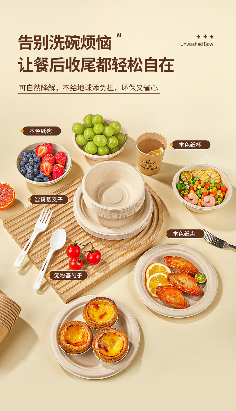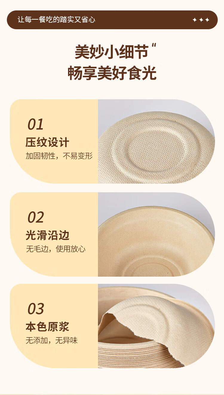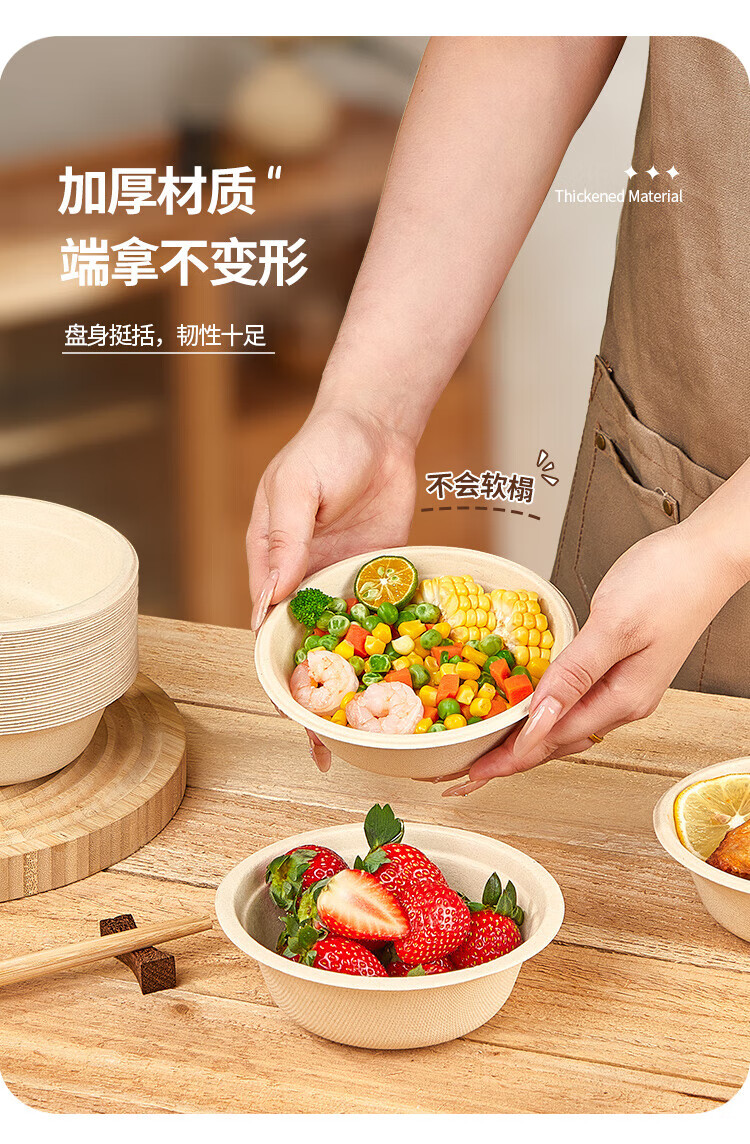 Youao sugarcane pulp paper plate and paper bowl disposable tableware waterproof and oil-proof natural color degradable paper bowl 350ml*50 pieces