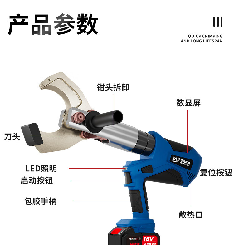 Wulang Machinery Electric Hydraulic Cable Cutter Rechargeable Open Type Cable Cutting Wire Clamp Clamp Shearing Pliers Cutting Tool