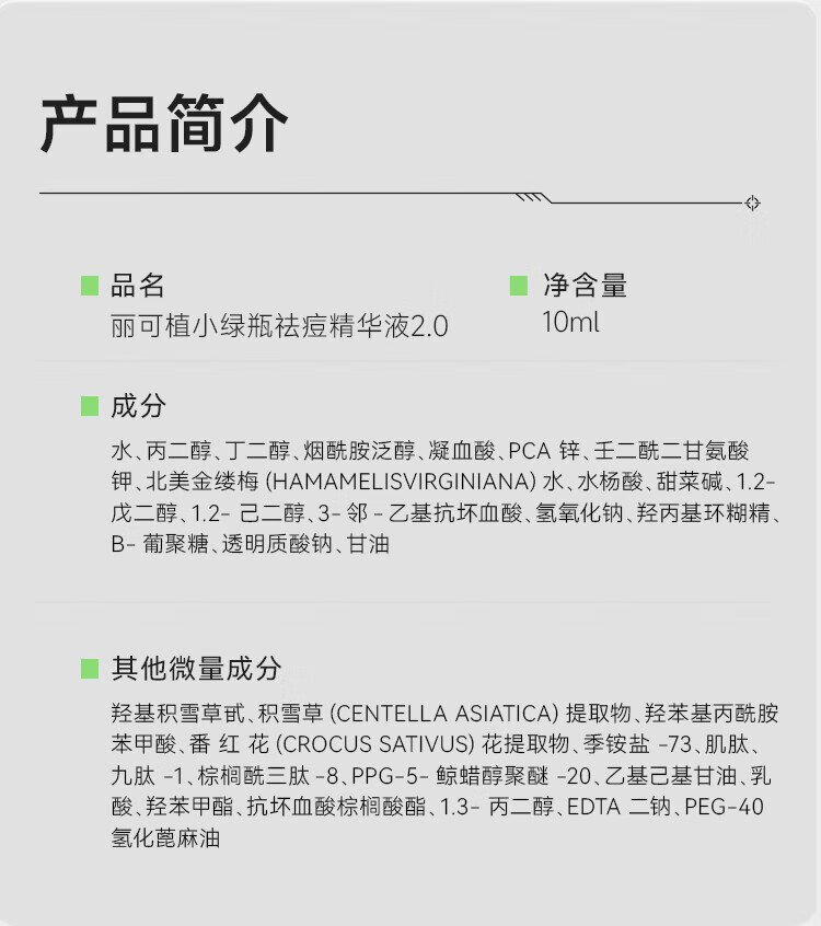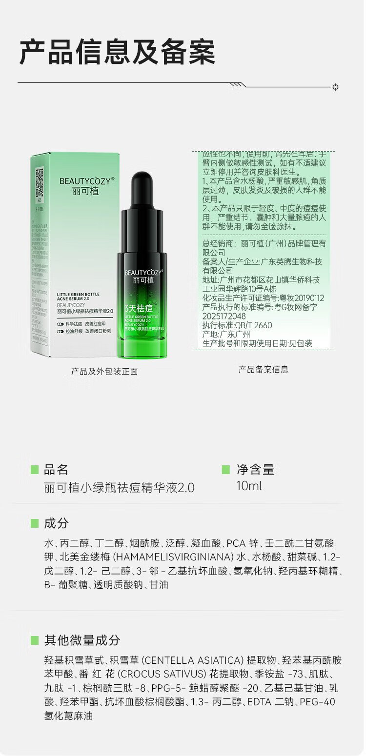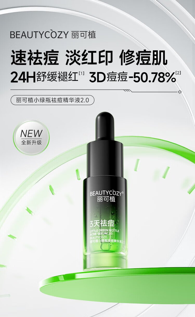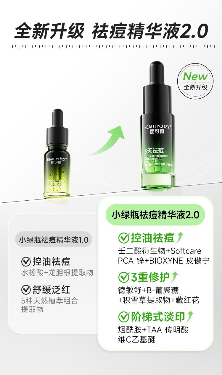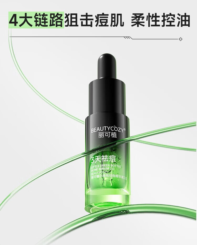 BEAUTYCOZY's major upgrade, small green bottle, anti-acne essence 2.0, oil control, repair, soothing, skin care, blackheads and acne 10ml