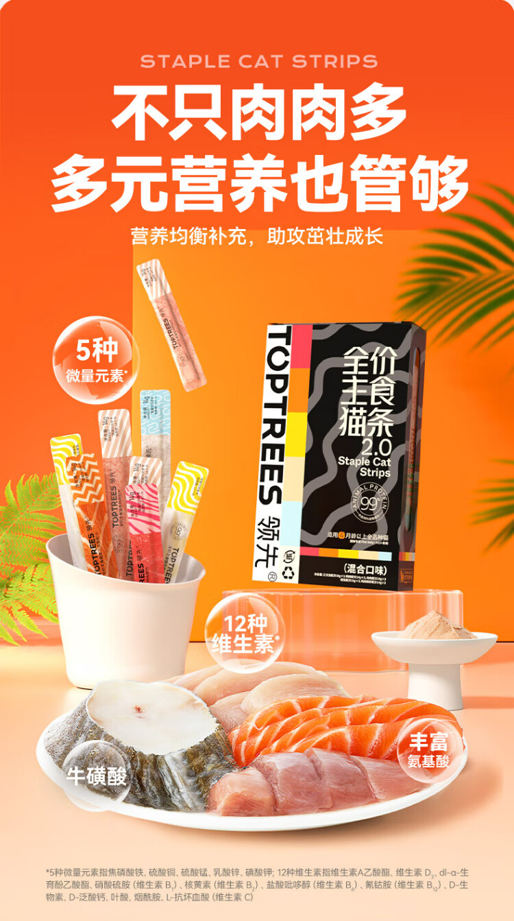 Leading staple food cat strips 14g*45 strips (5 flavors) cat snacks canned wet food (new and old styles shipped randomly)