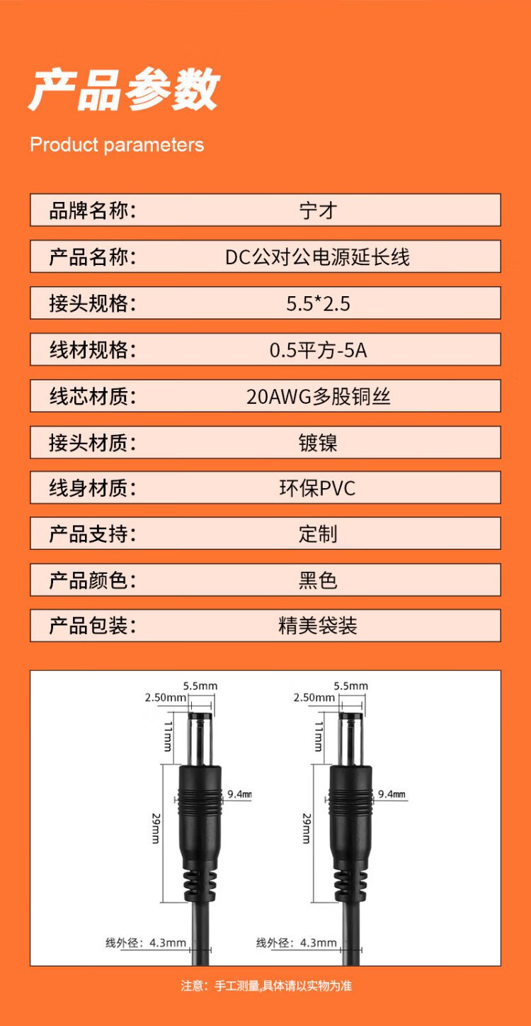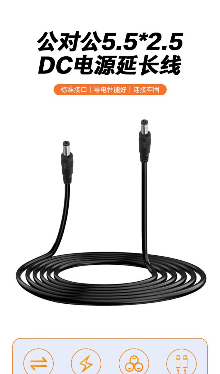 Ningcai (NINGCAI) DC power cord 0.5 square 5/9/12V DC extension cord NC-5525MM200030 maximum 5A current dc5.5*2.5 male to male 0.3m