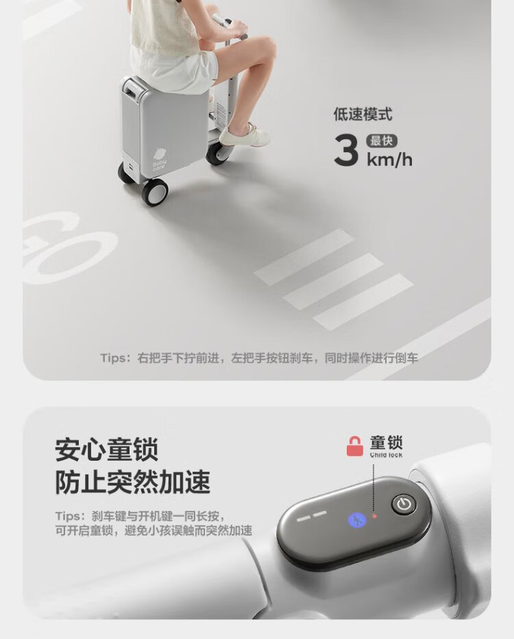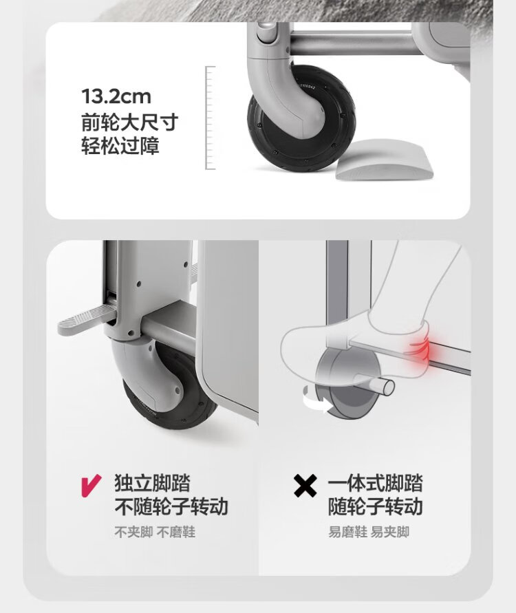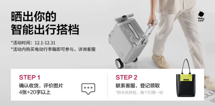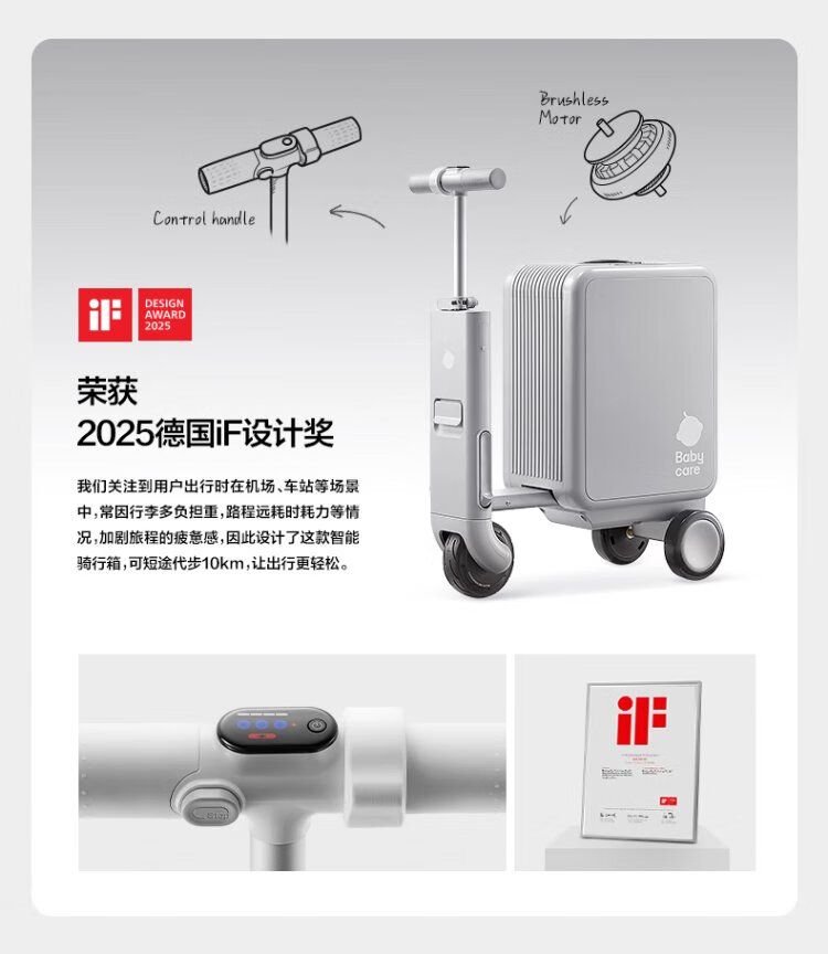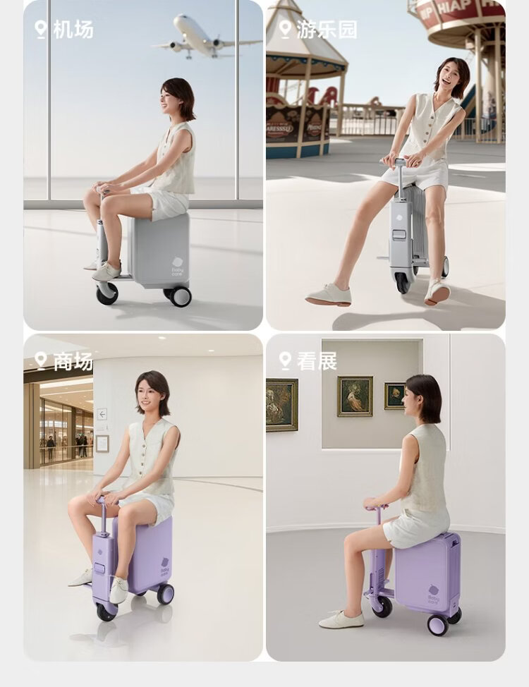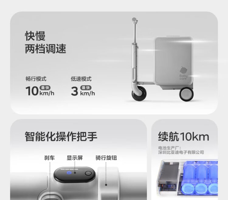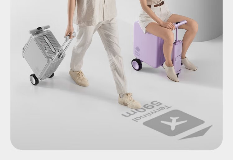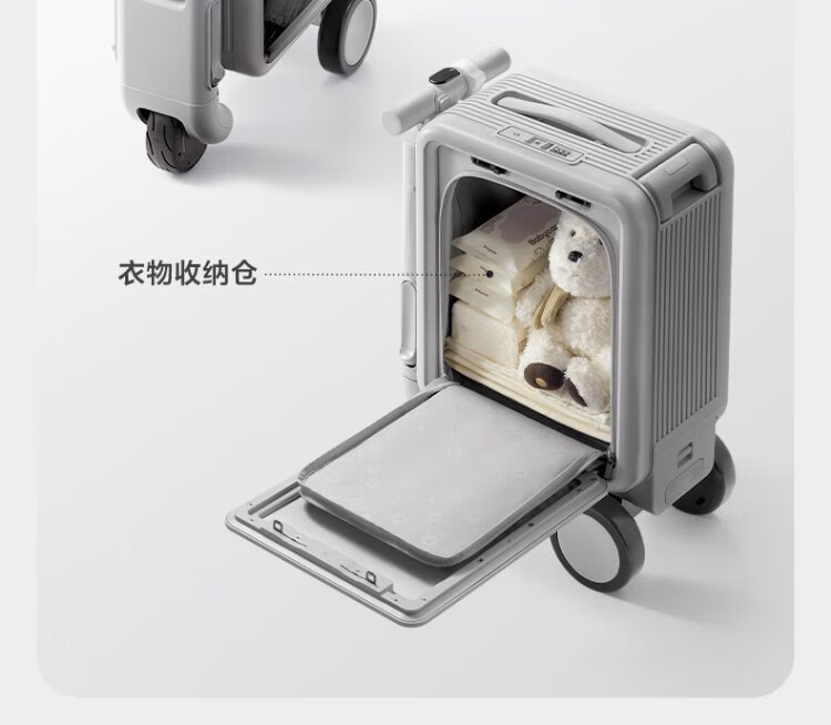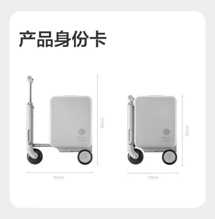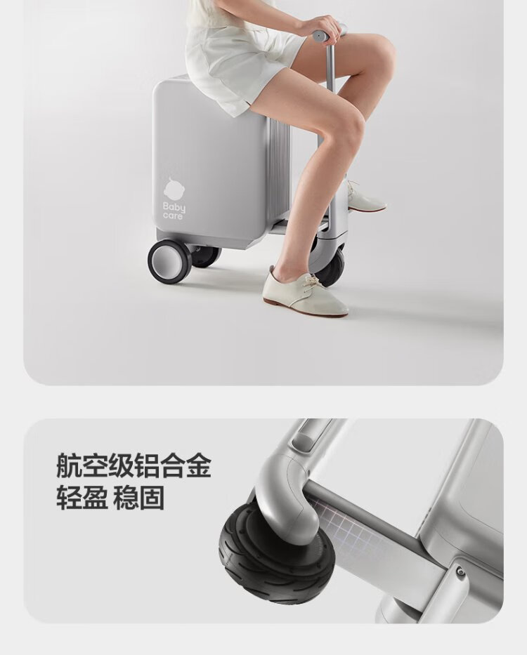 Babycare electric suitcase, smart trolley case, rideable boarding suitcase, men's and women's cycling case, 20-inch time silver