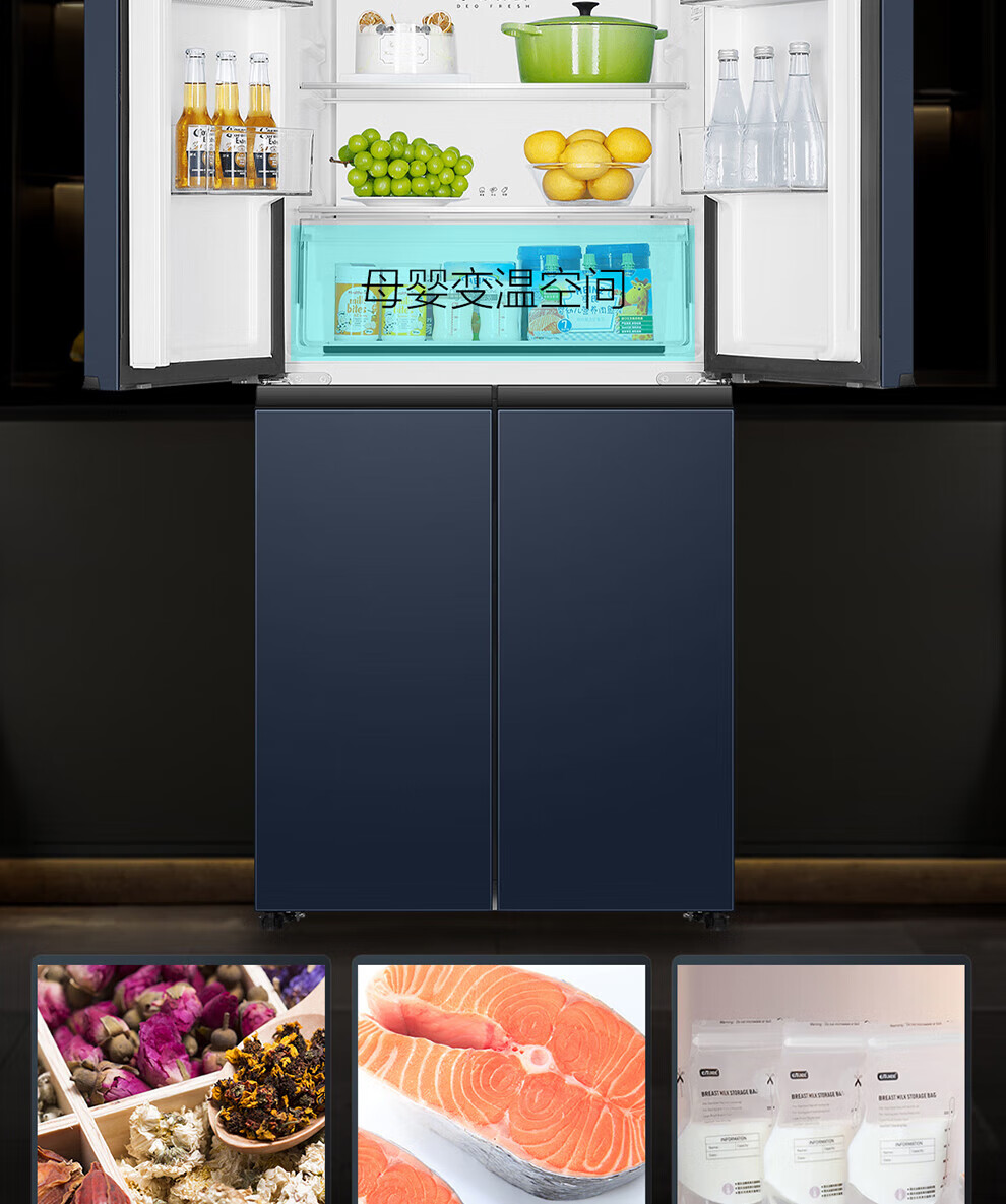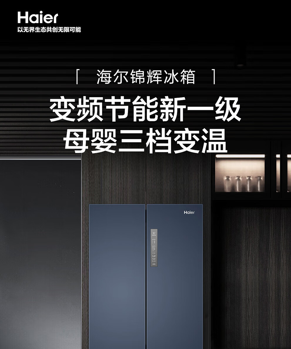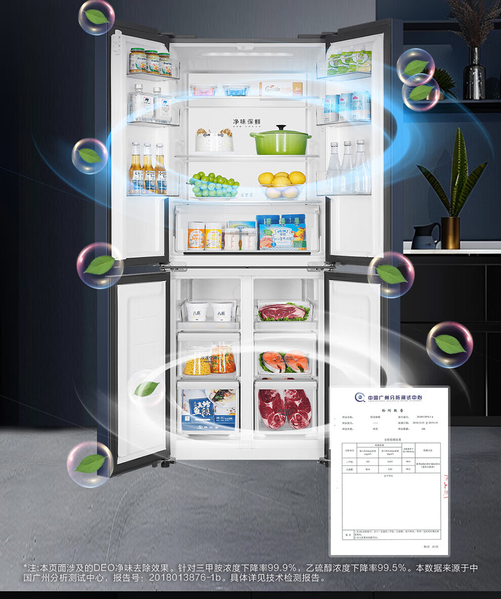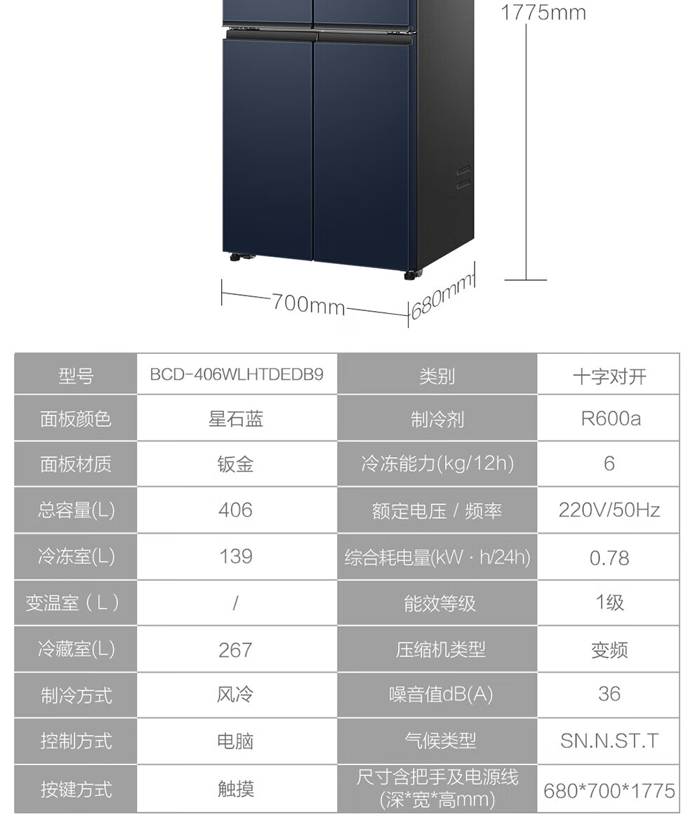 Haier refrigerator four-door cross-double door 406 liters frequency conversion energy-saving new level energy efficiency air-cooled frost-free ultra-thin household fresh pie series refrigerator trade-in subsidy high appearance 406 liters + clean taste and freshness + maternal and child space
