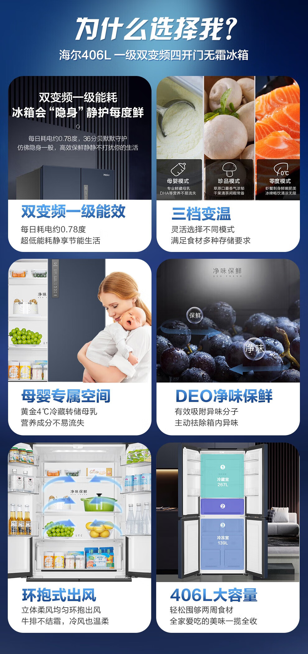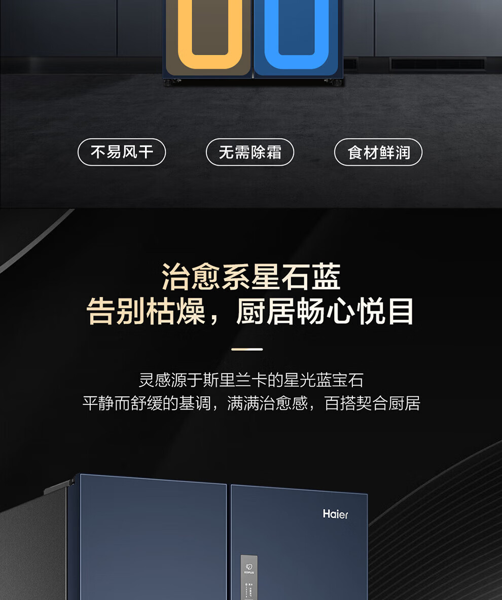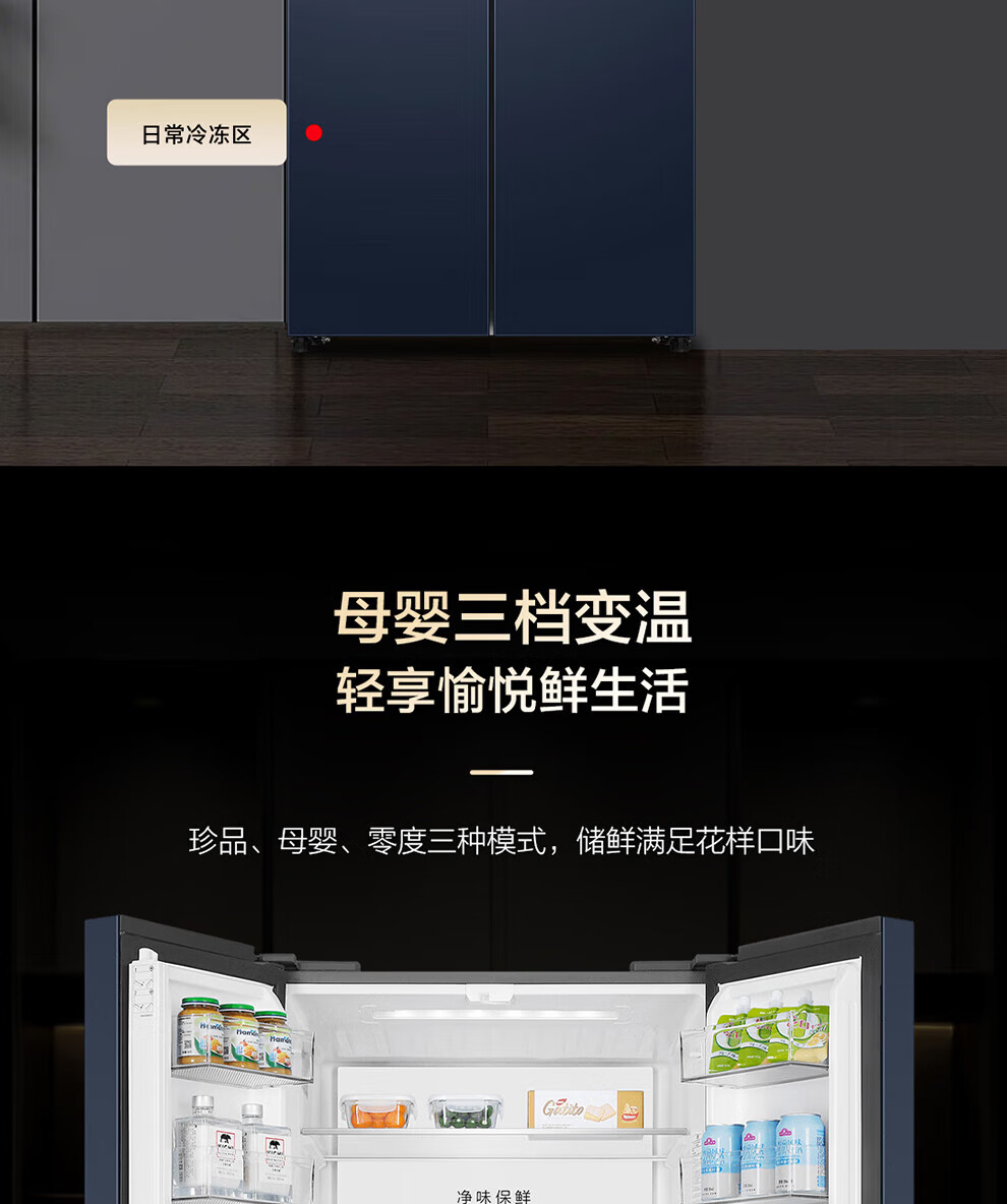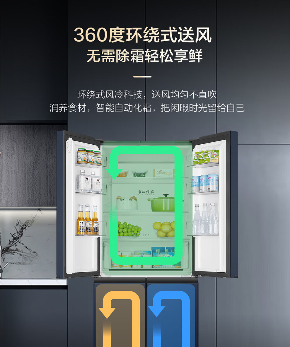 Haier refrigerator four-door cross-double door 406 liters frequency conversion energy-saving new level energy efficiency air-cooled frost-free ultra-thin household fresh pie series refrigerator trade-in subsidy high appearance 406 liters + clean taste and freshness + maternal and child space
