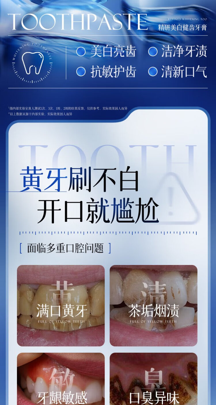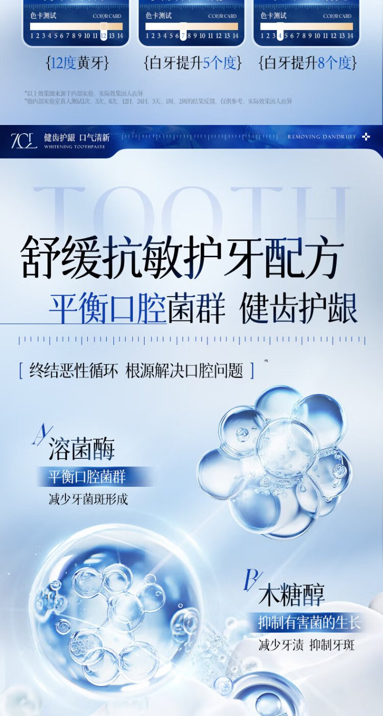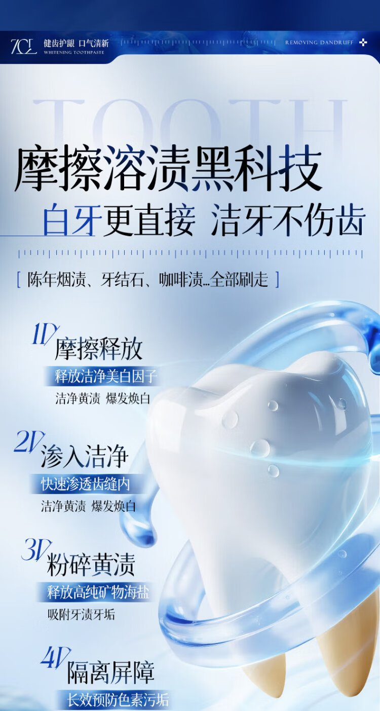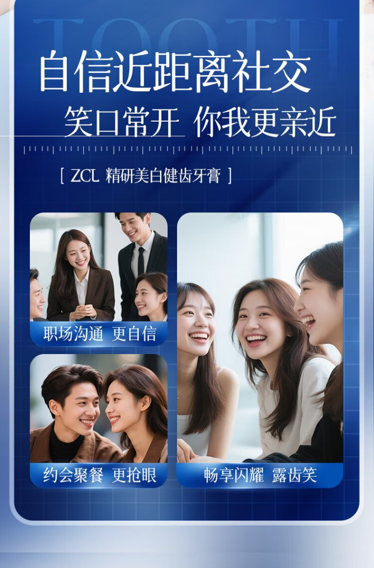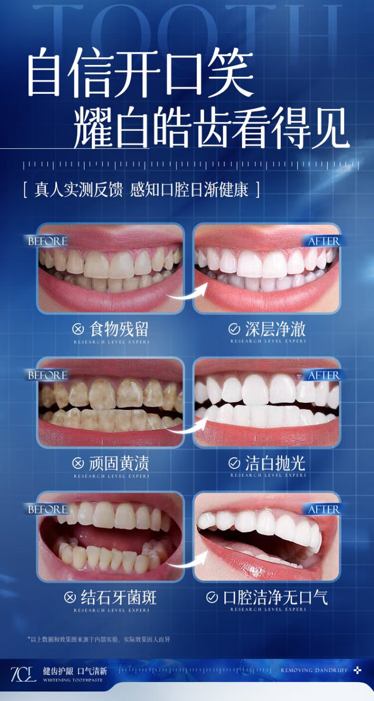 ZCL toothpaste whitens teeth, whitens teeth, inhibits bacteria, removes bad breath, freshens breath, protects gums, removes yellowing, removes tooth stains, and tartar for children