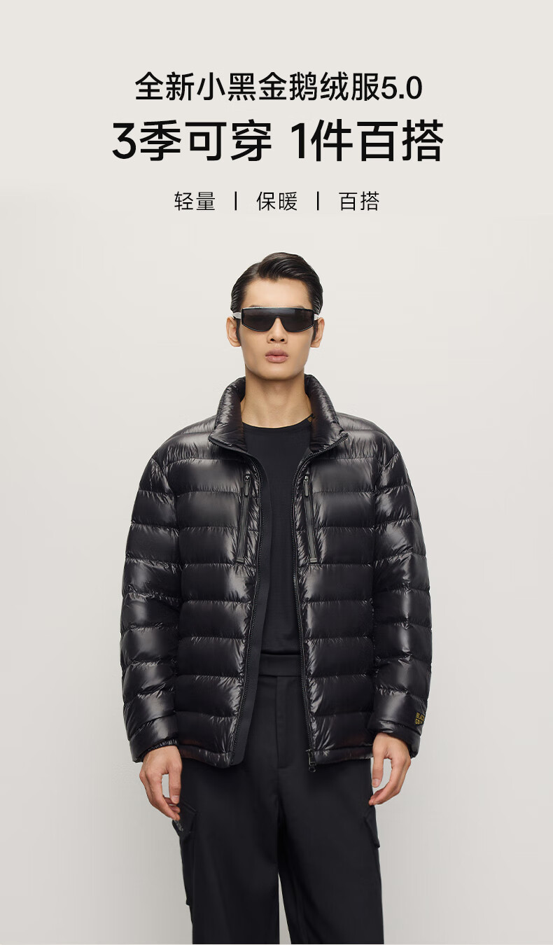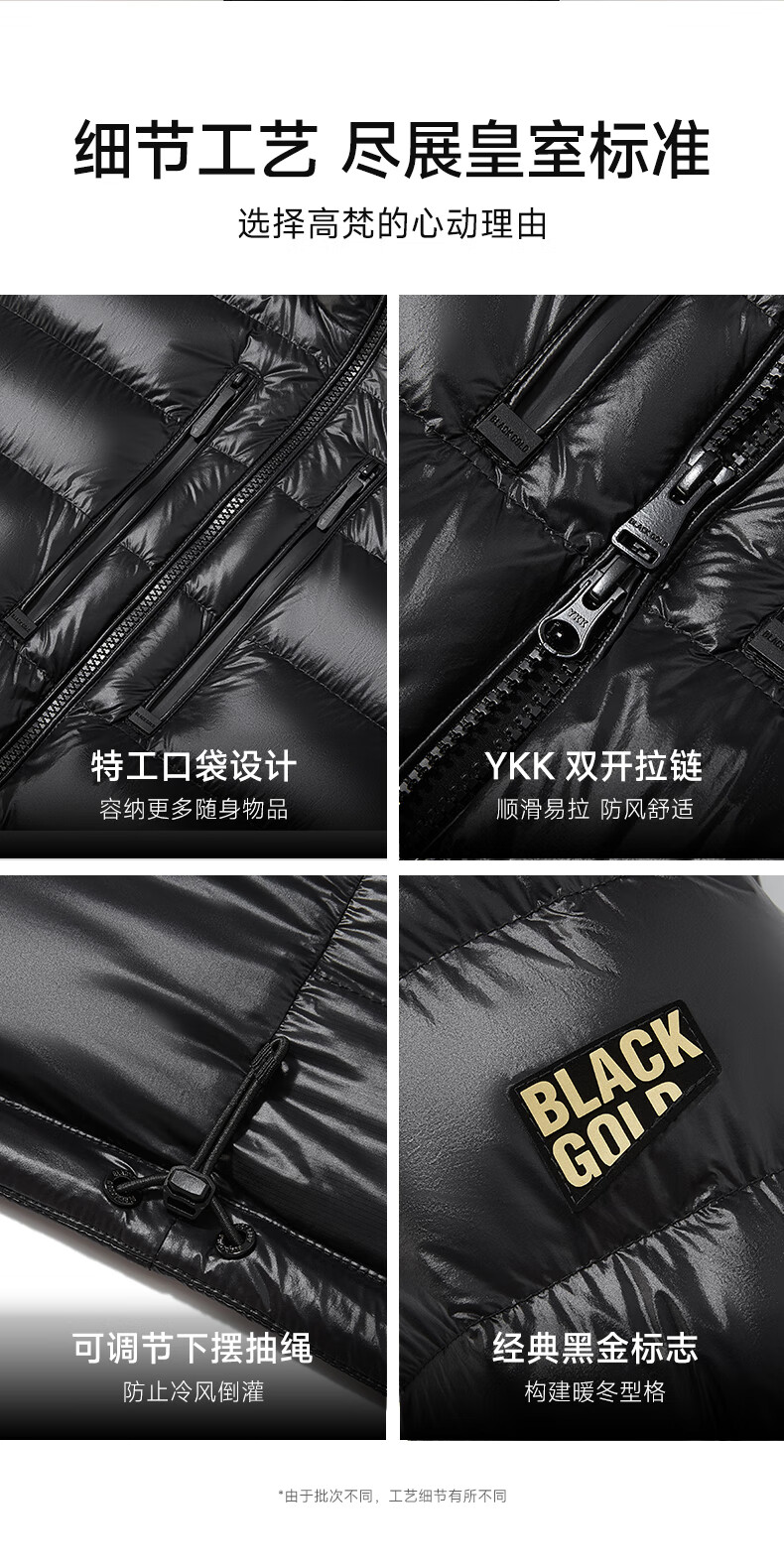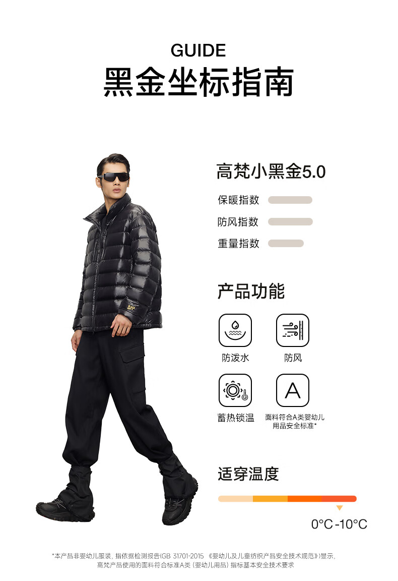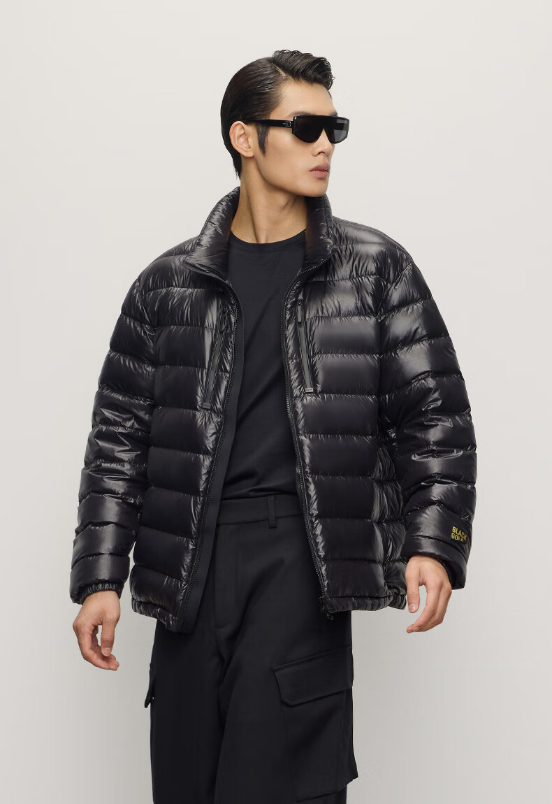Govan Black Gold Goose Down Jacket Small Black Gold 5.0 Stand Collar Versatile 2025 New Men's Short Jacket Black XL