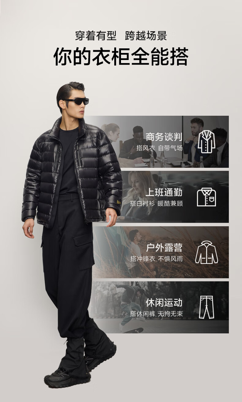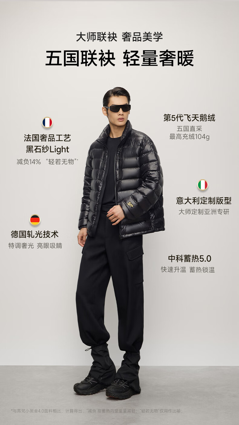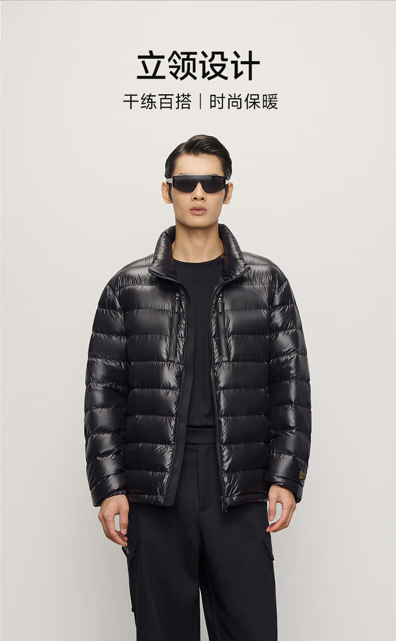 Govan Black Gold Goose Down Jacket Small Black Gold 5.0 Stand Collar Versatile 2025 New Men's Short Jacket Black XL