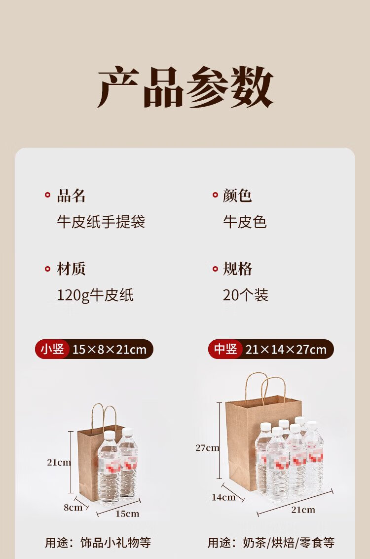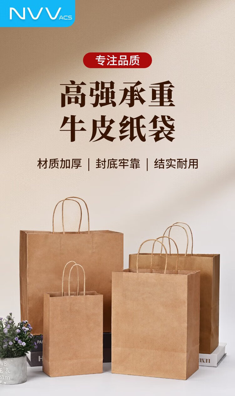 NVV kraft paper bag handbag gift gift bag storage bag disposable takeaway drink milk tea packaging bag packaging bag 28*15*28cm 20 pieces