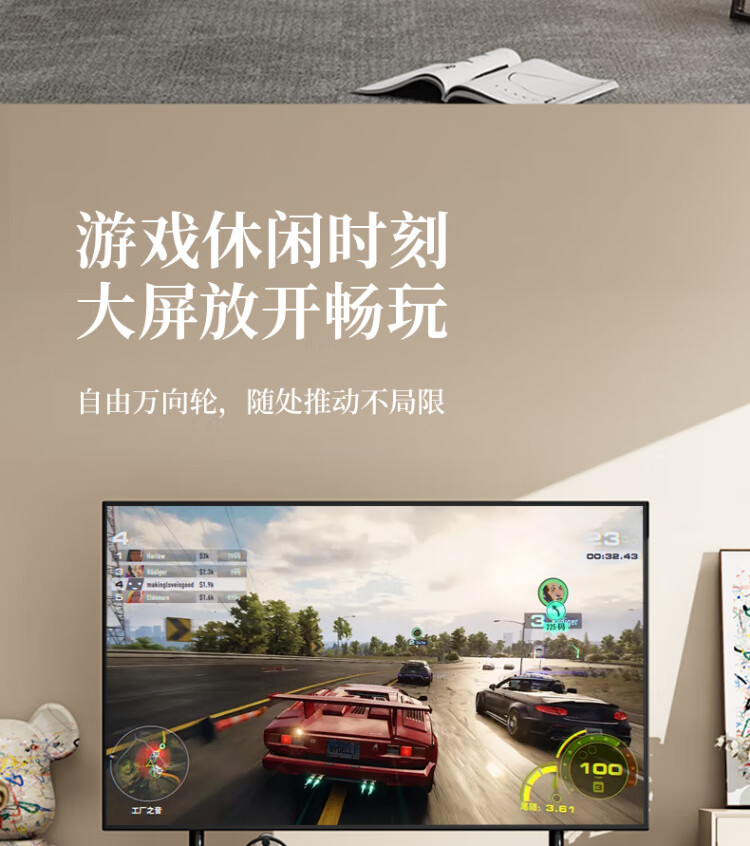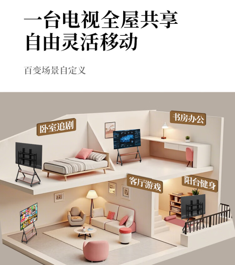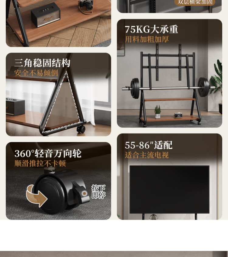Enlip TV Mobile Bracket 55-86 inches Stainless Steel Art TV Movable Bracket Household Floor-Standing Wheeled Trolley Xiaomi Skyworth Hisense TV Universal