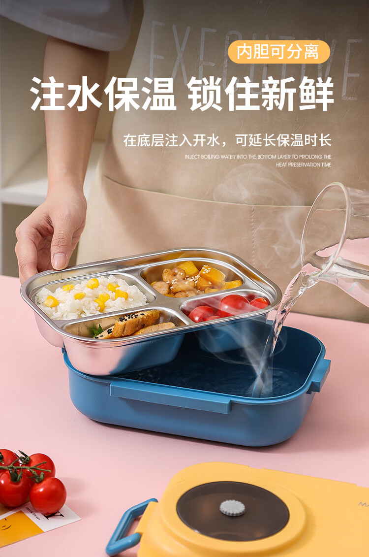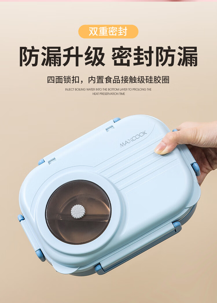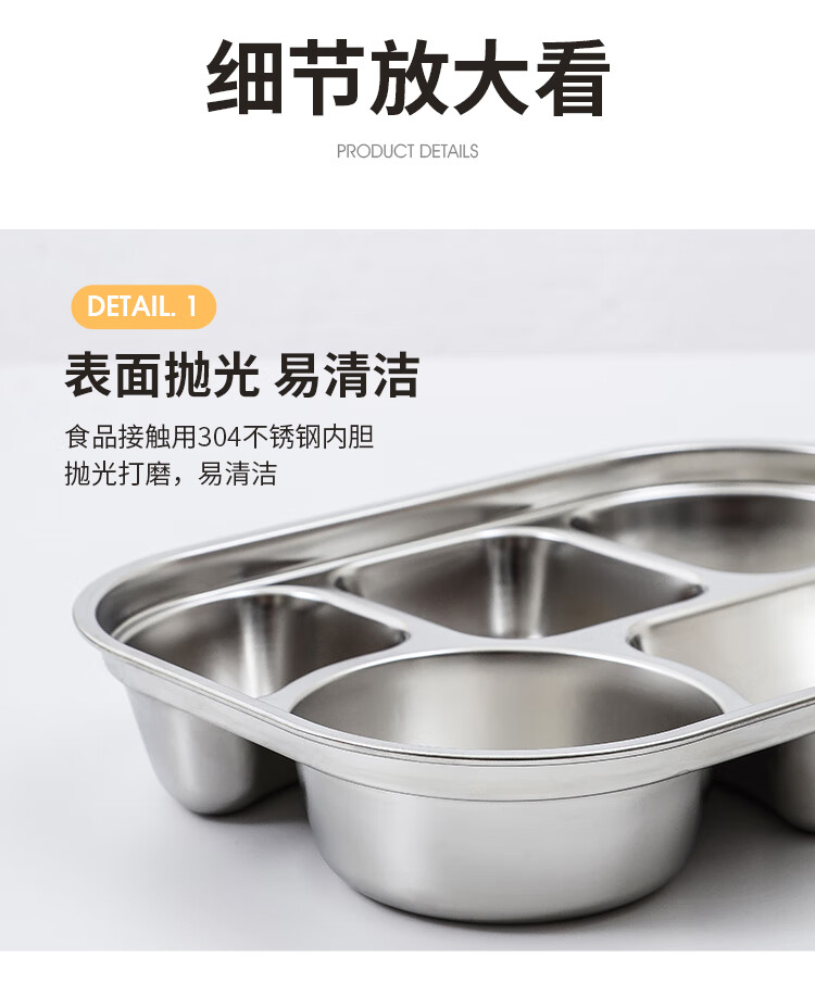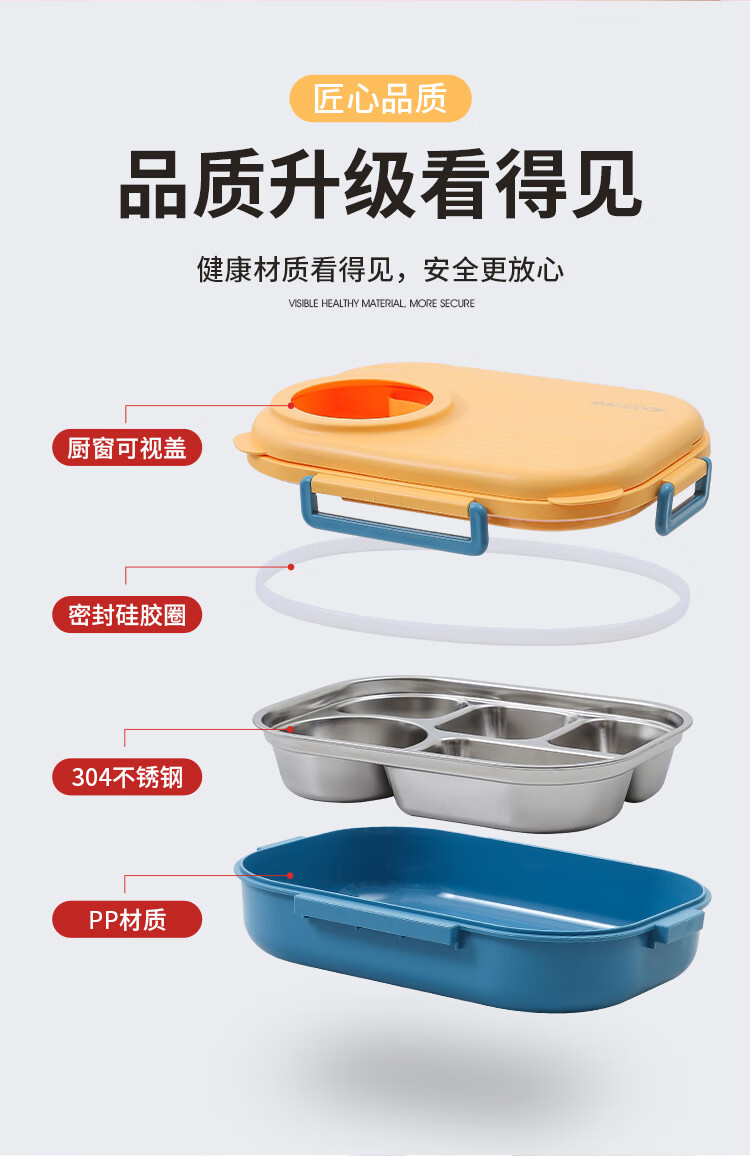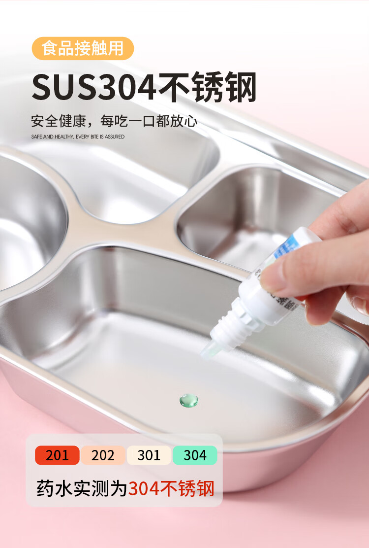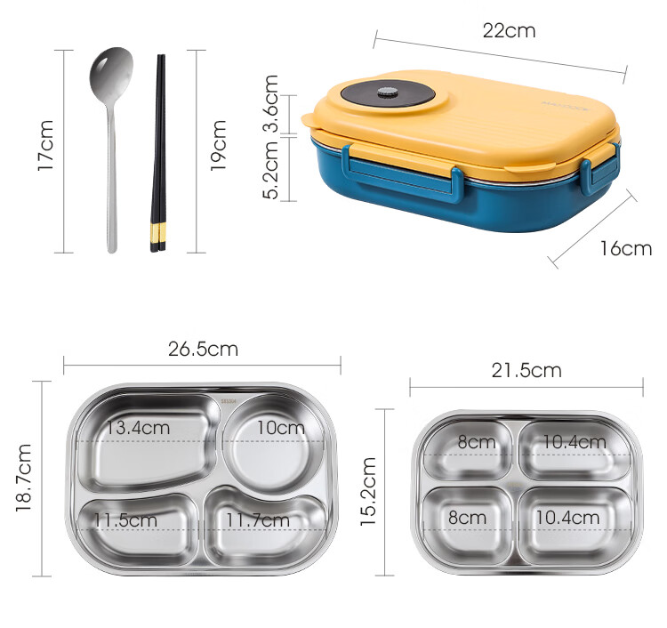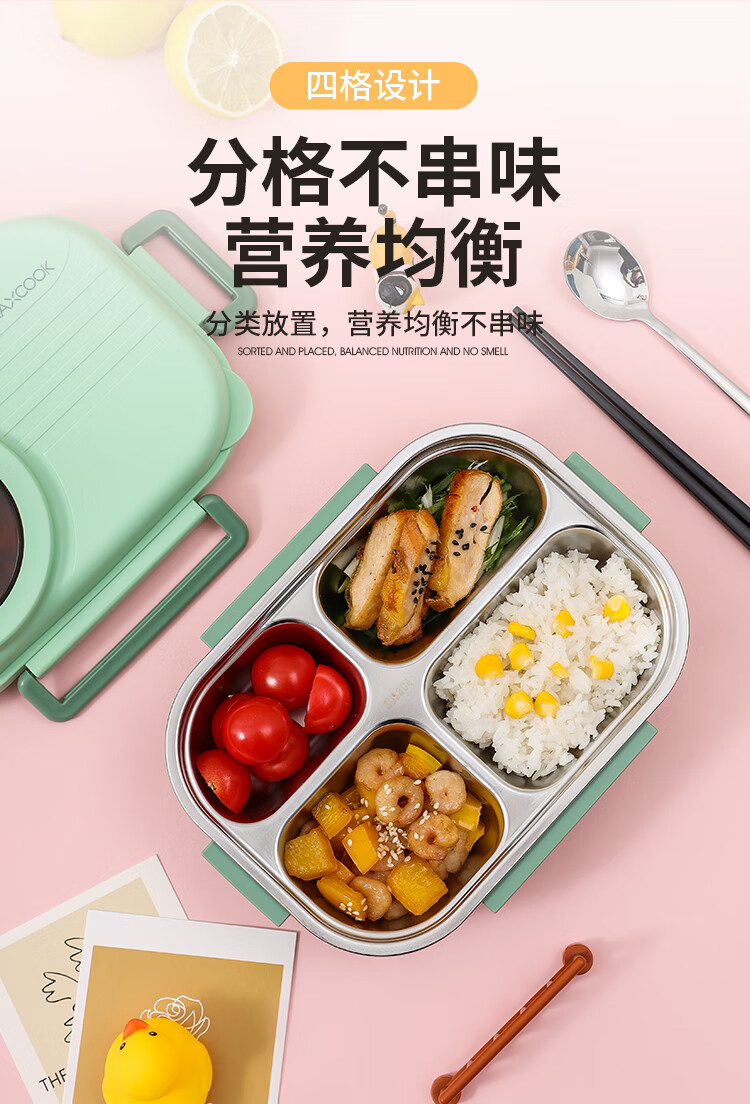 MAXCOOK 304 stainless steel lunch box, enlarged and deepened 4-compartment student lunch box plate 1.2L, with tableware soup bowl MCFT7031