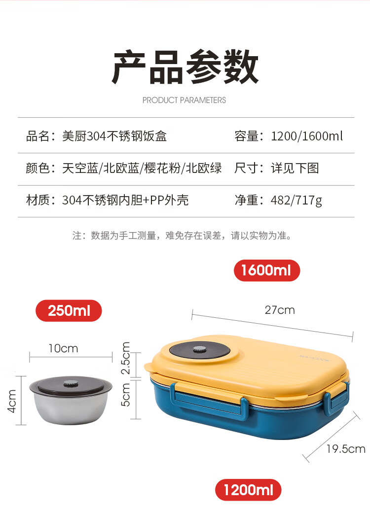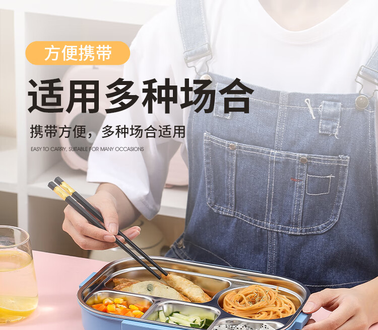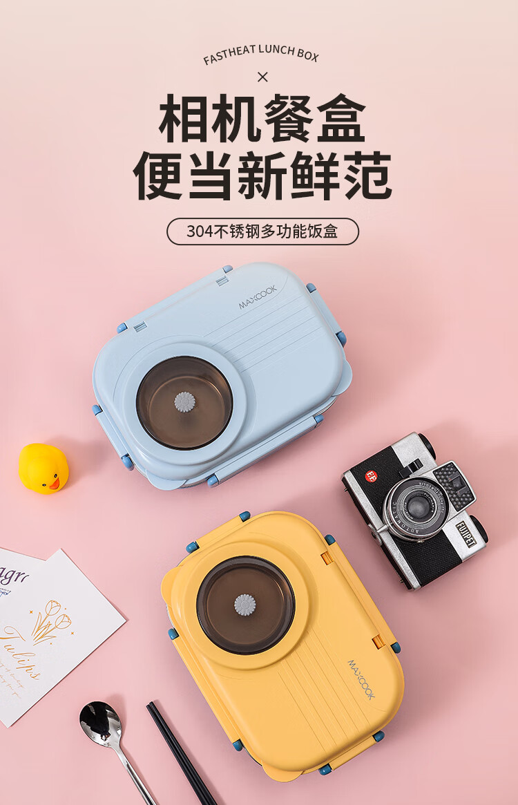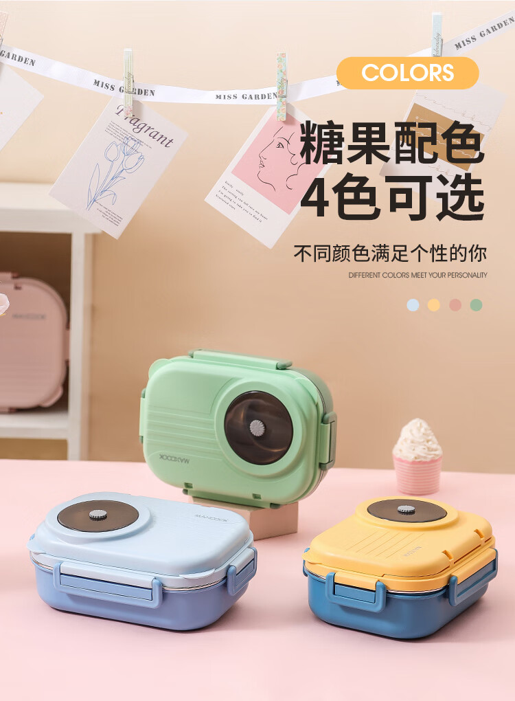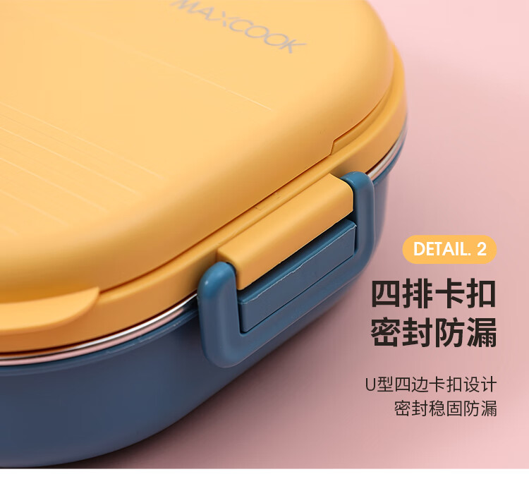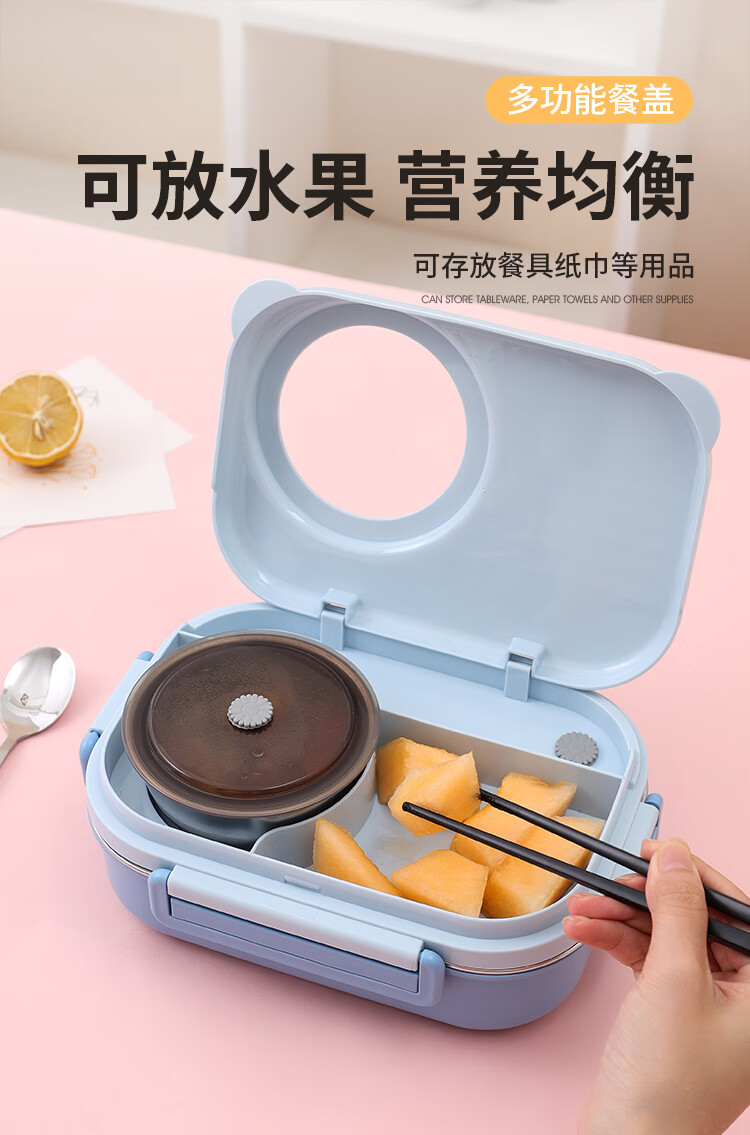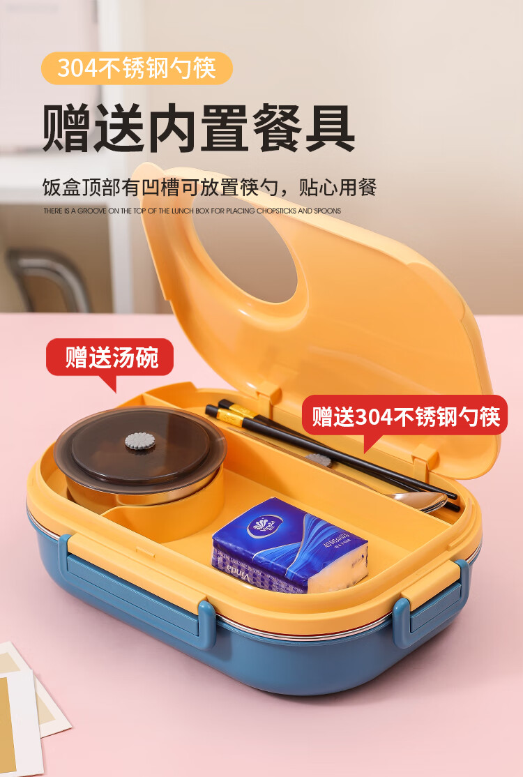 MAXCOOK 304 stainless steel lunch box, enlarged and deepened 4-compartment student lunch box plate 1.2L, with tableware soup bowl MCFT7031