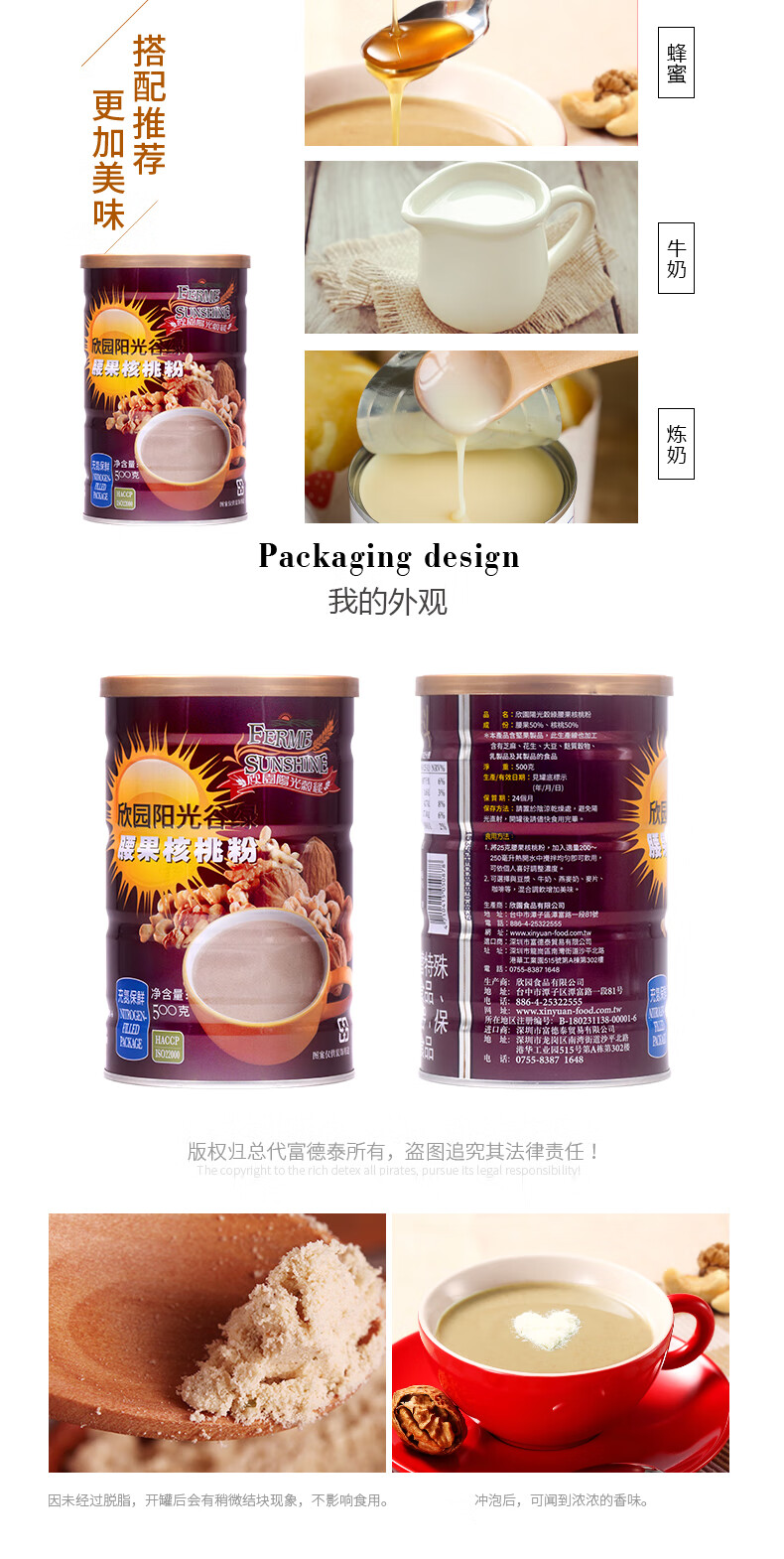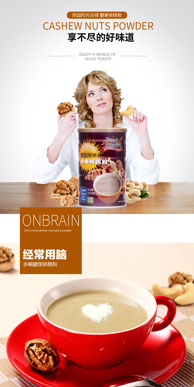 FERME SUNSHING Xinyuan Sunshine Valley Green Cashew Walnut Powder 500g Original Imported Drinking Cereal Meal Replacement