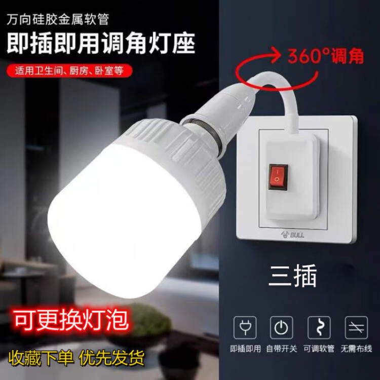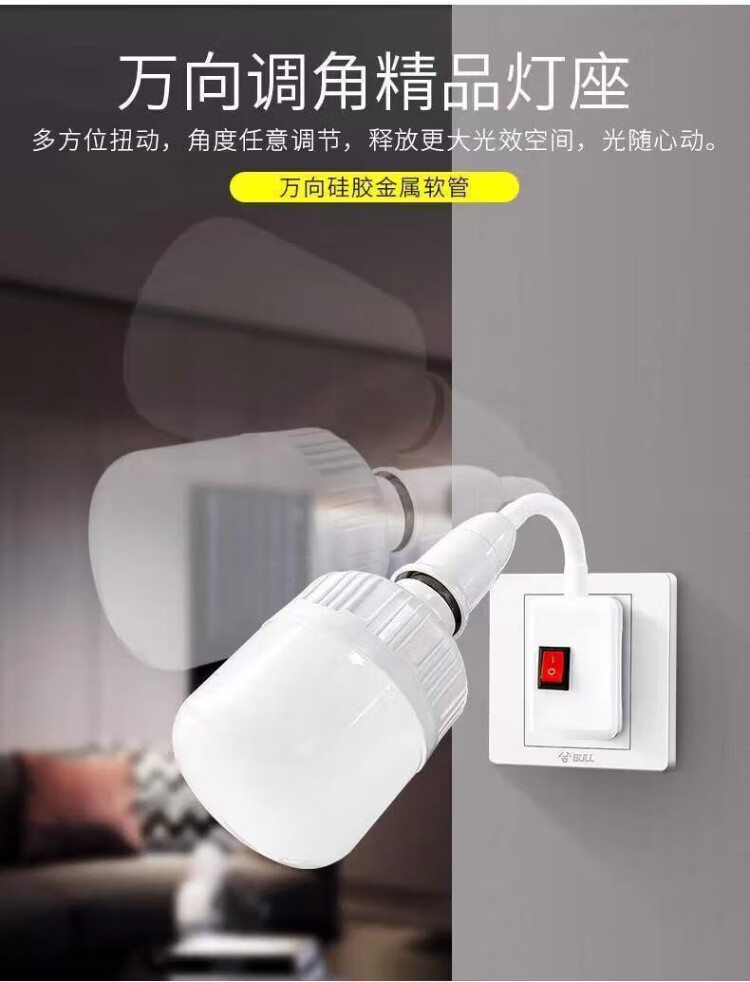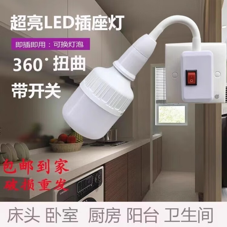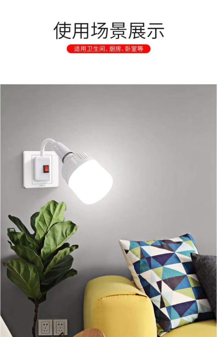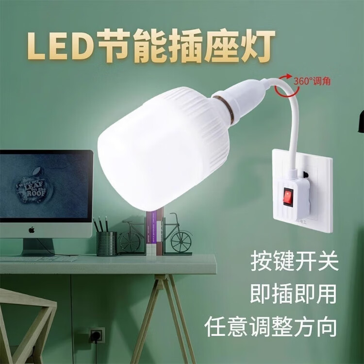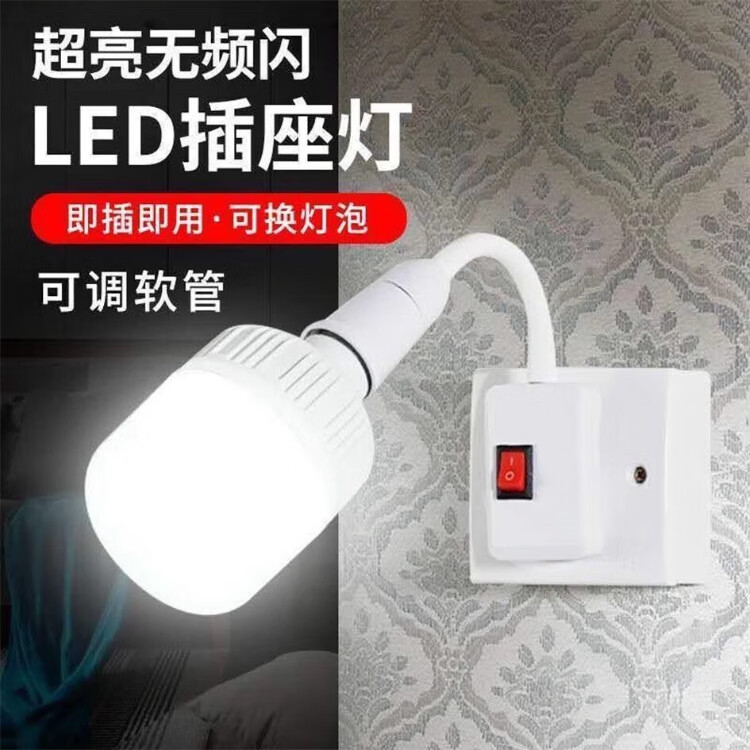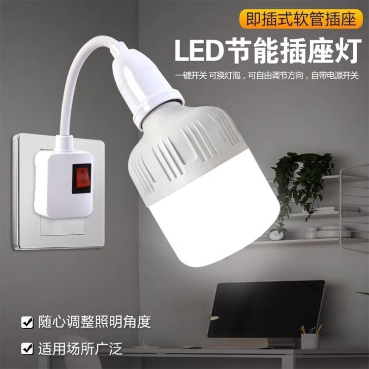 Whale and Light Socket Light Direct-plug Super Bright LED Light Plug-in Light Bulb Socket Plug-in Light Energy-Saving Lamp Indoor E27 Screw Lamp with Plug 20-W