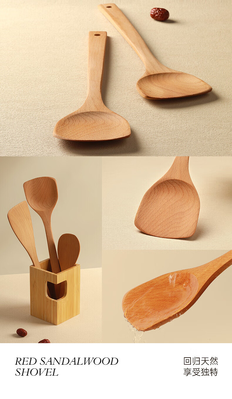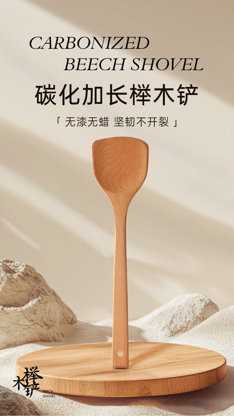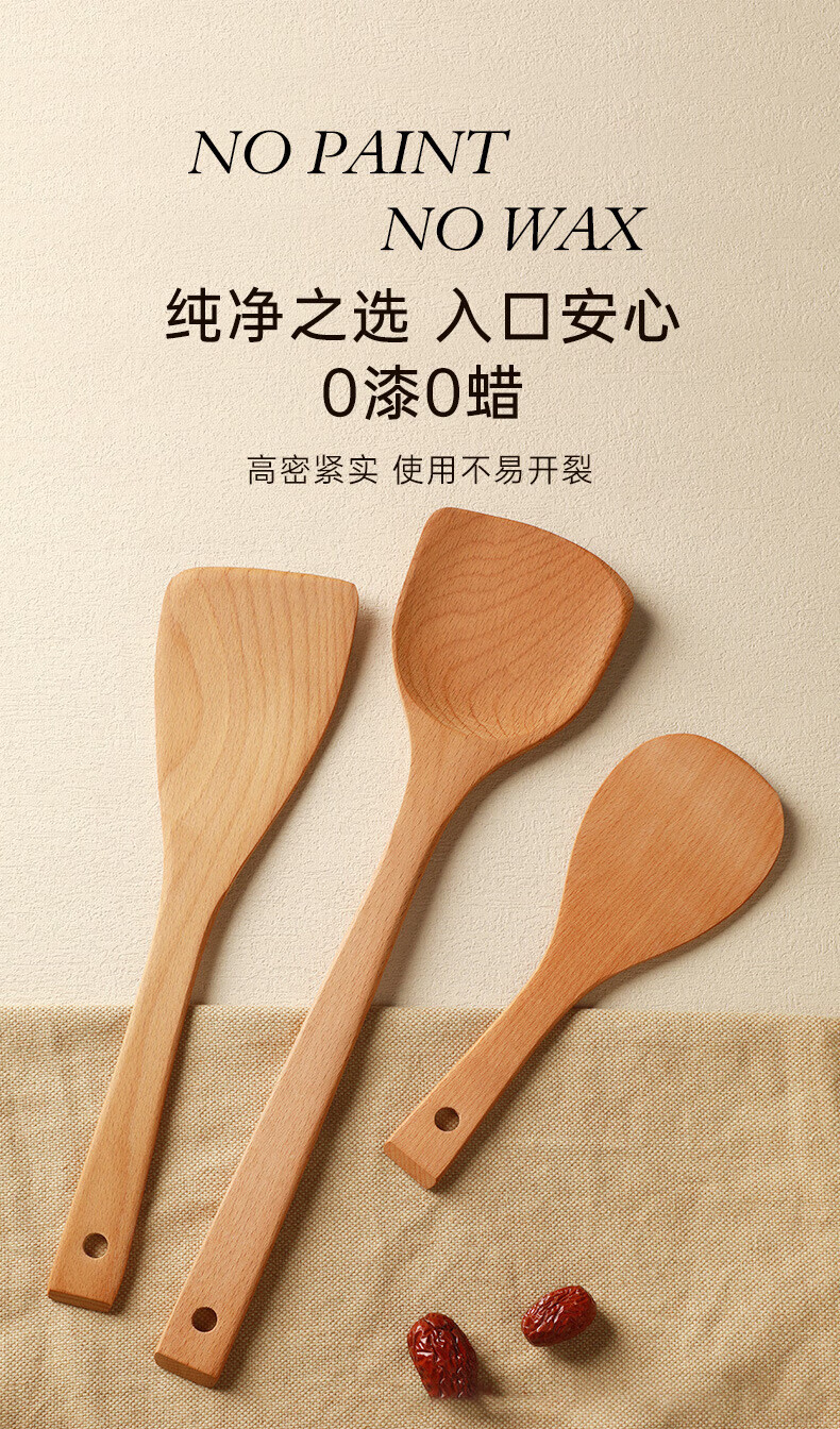 PINYU carbonized beech wood spatula, frying spatula and rice spatula set, special wooden cooking spatula for non-stick pans