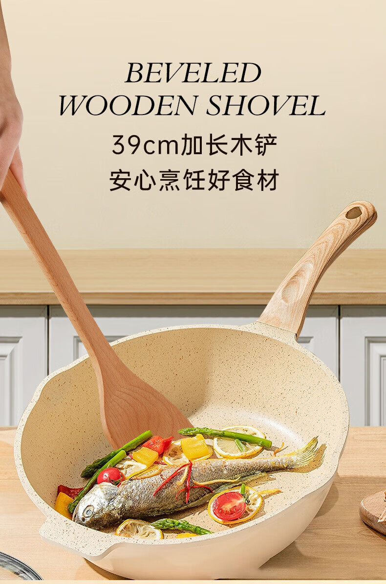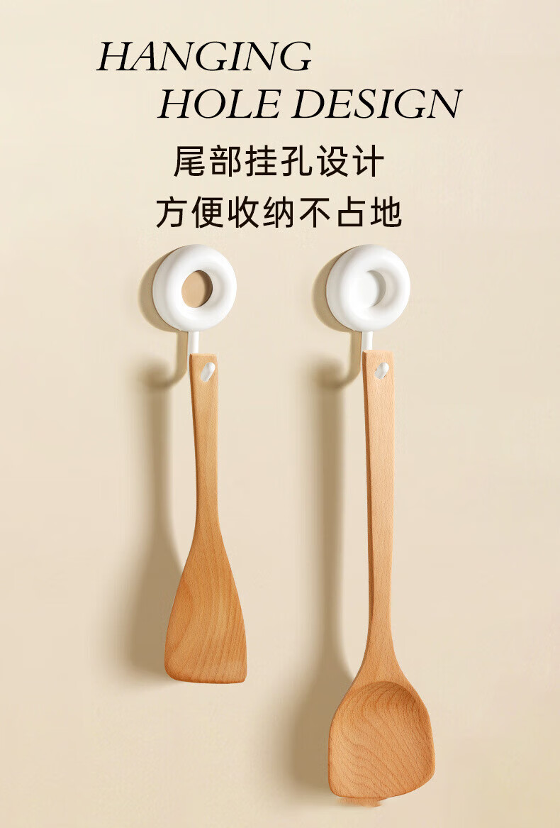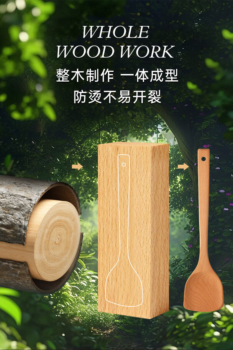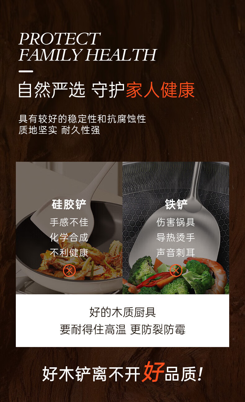 PINYU carbonized beech wood spatula, frying spatula and rice spatula set, special wooden cooking spatula for non-stick pans