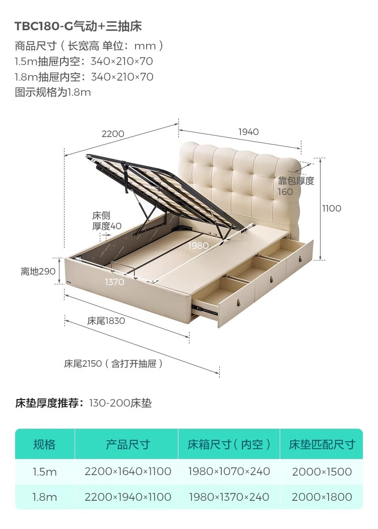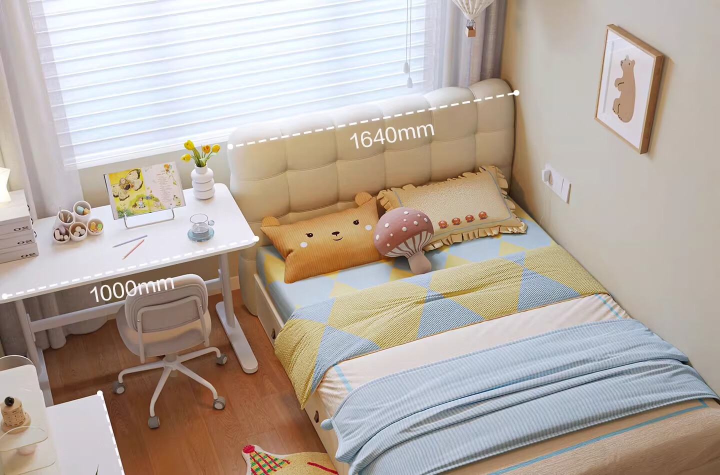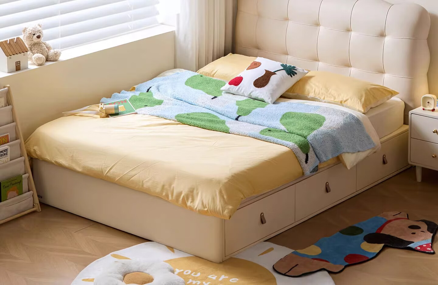 Lin's home children's bed 1.5 meters bedroom bed cream style puff bed boys and girls single bed TBC180