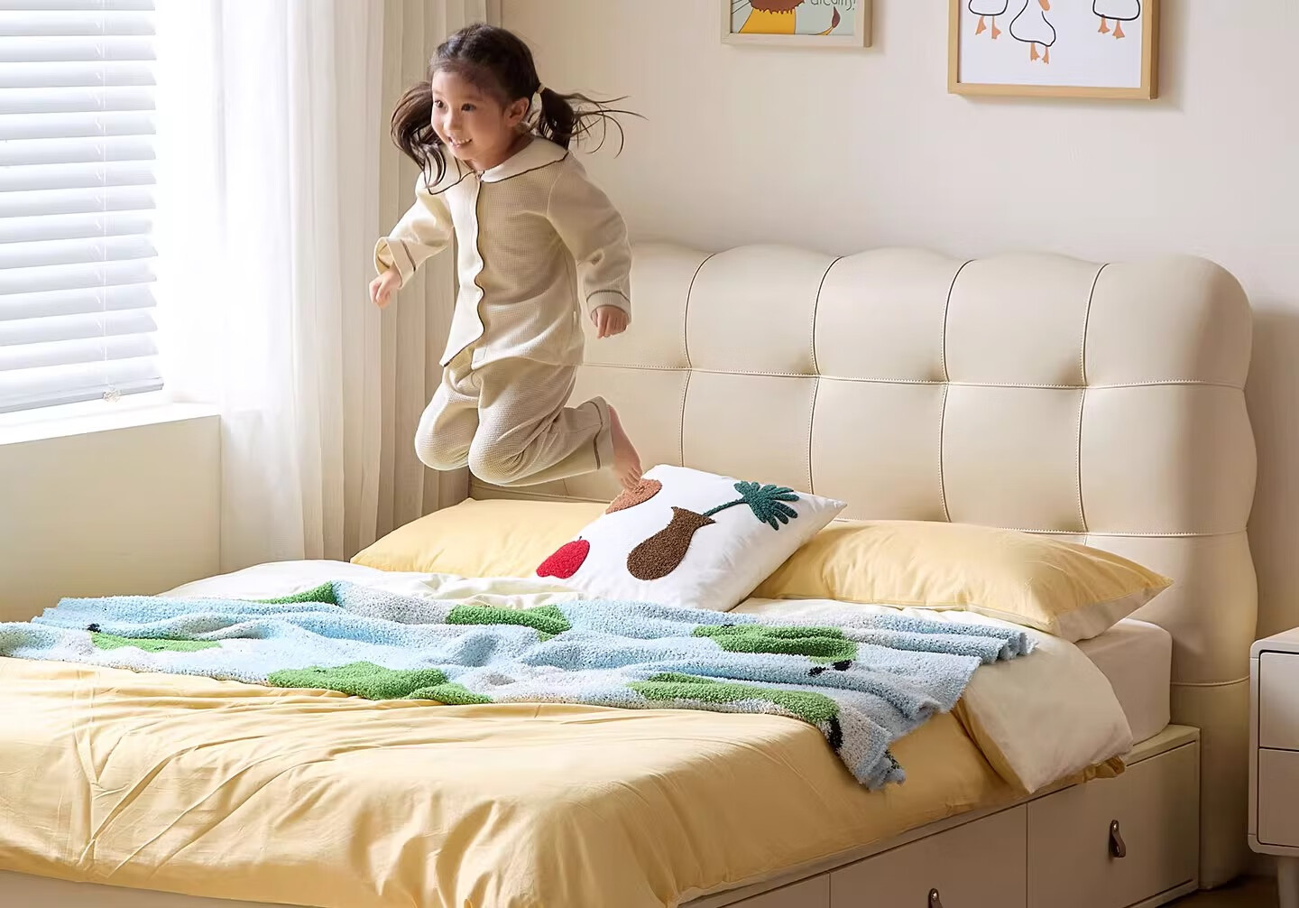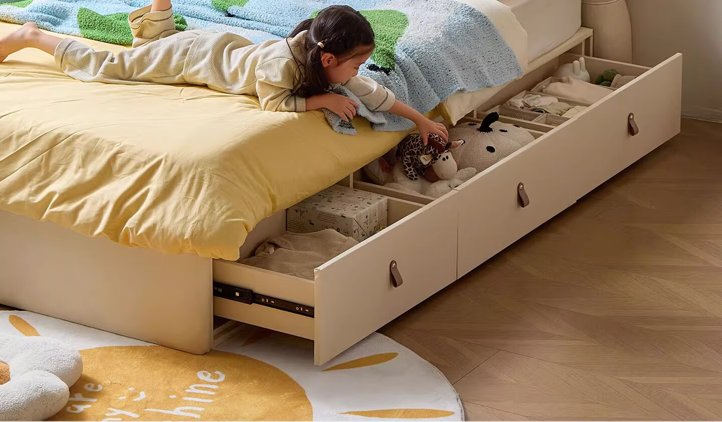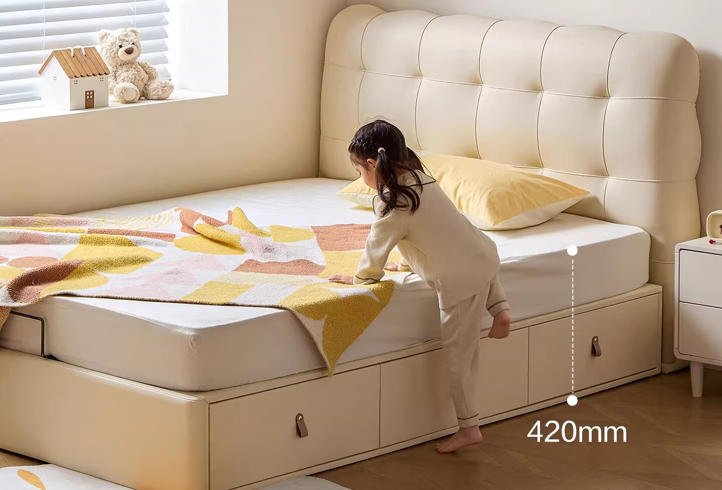 Lin's home children's bed 1.5 meters bedroom bed cream style puff bed boys and girls single bed TBC180