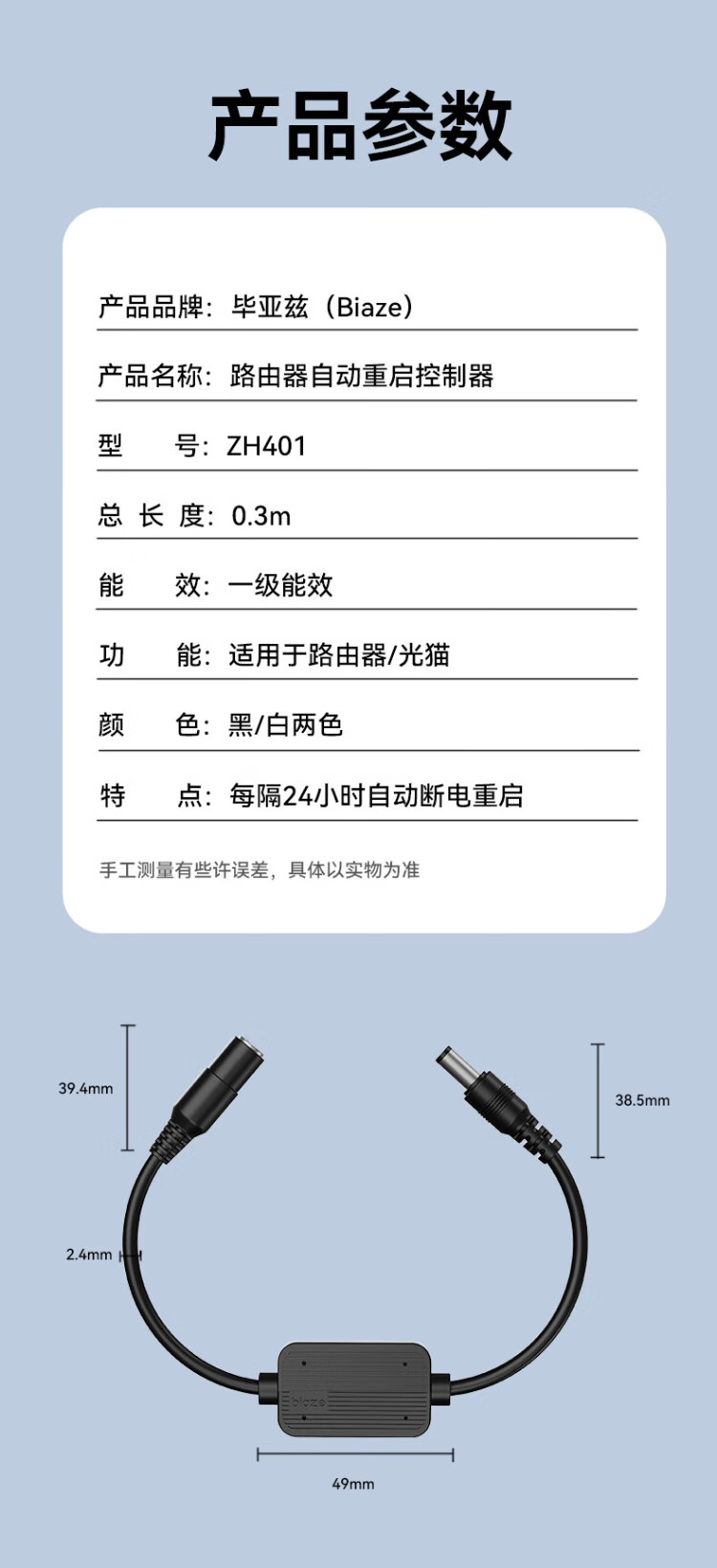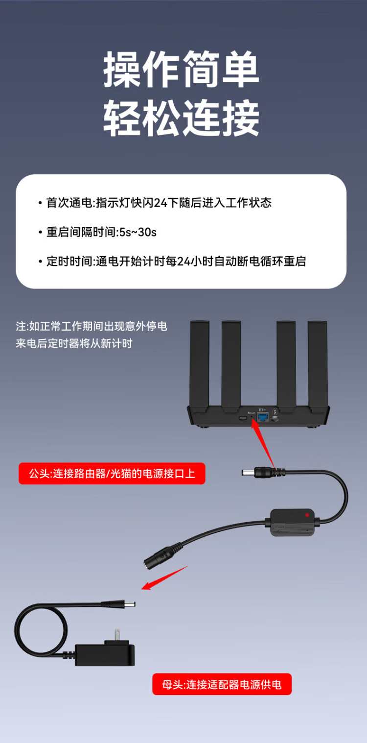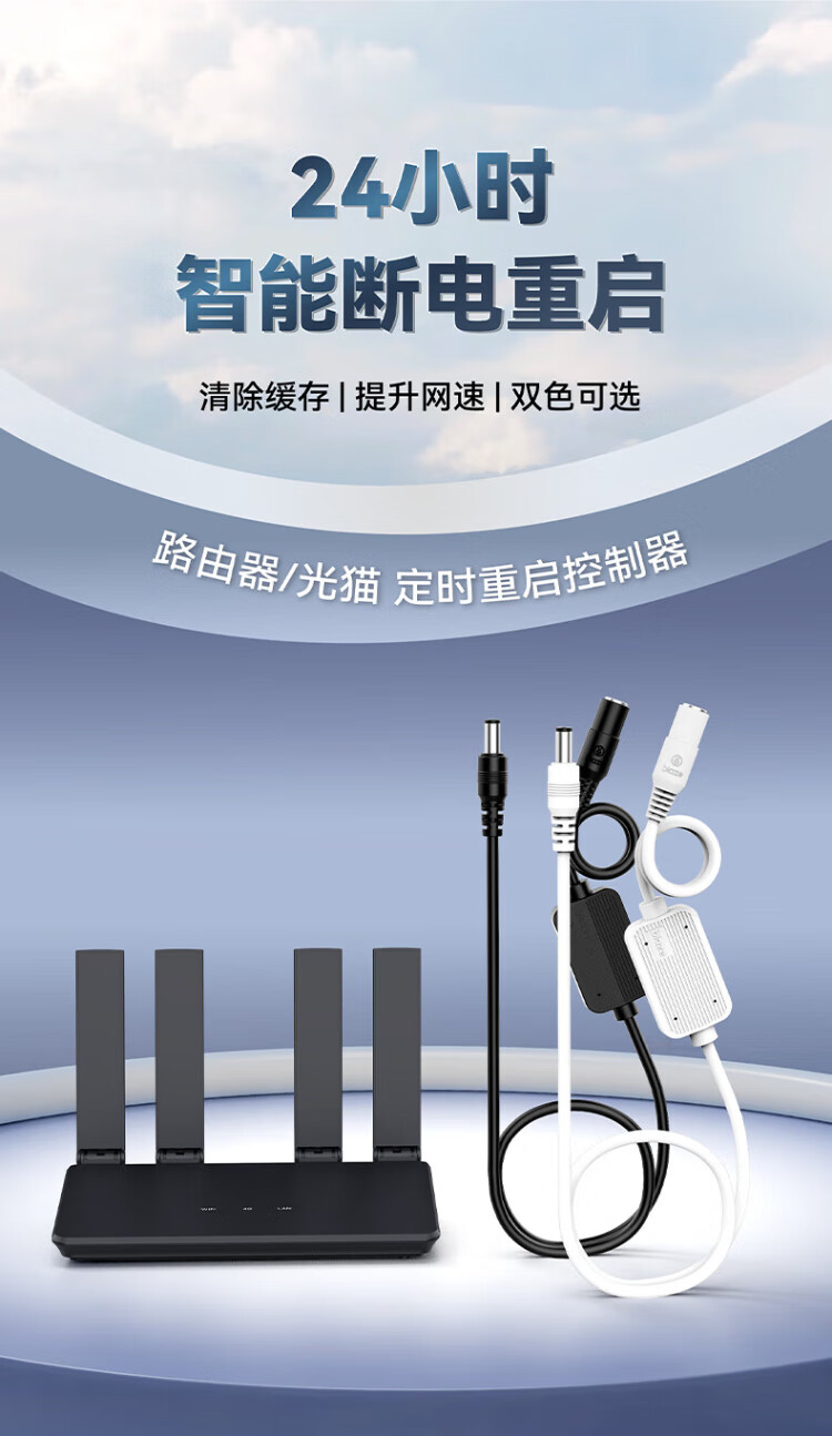 Biaz router automatic restart line 24-hour timer automatic power-off resetter wifi network signal control/control smart assistant suitable for Xiaomi/Huawei and other black