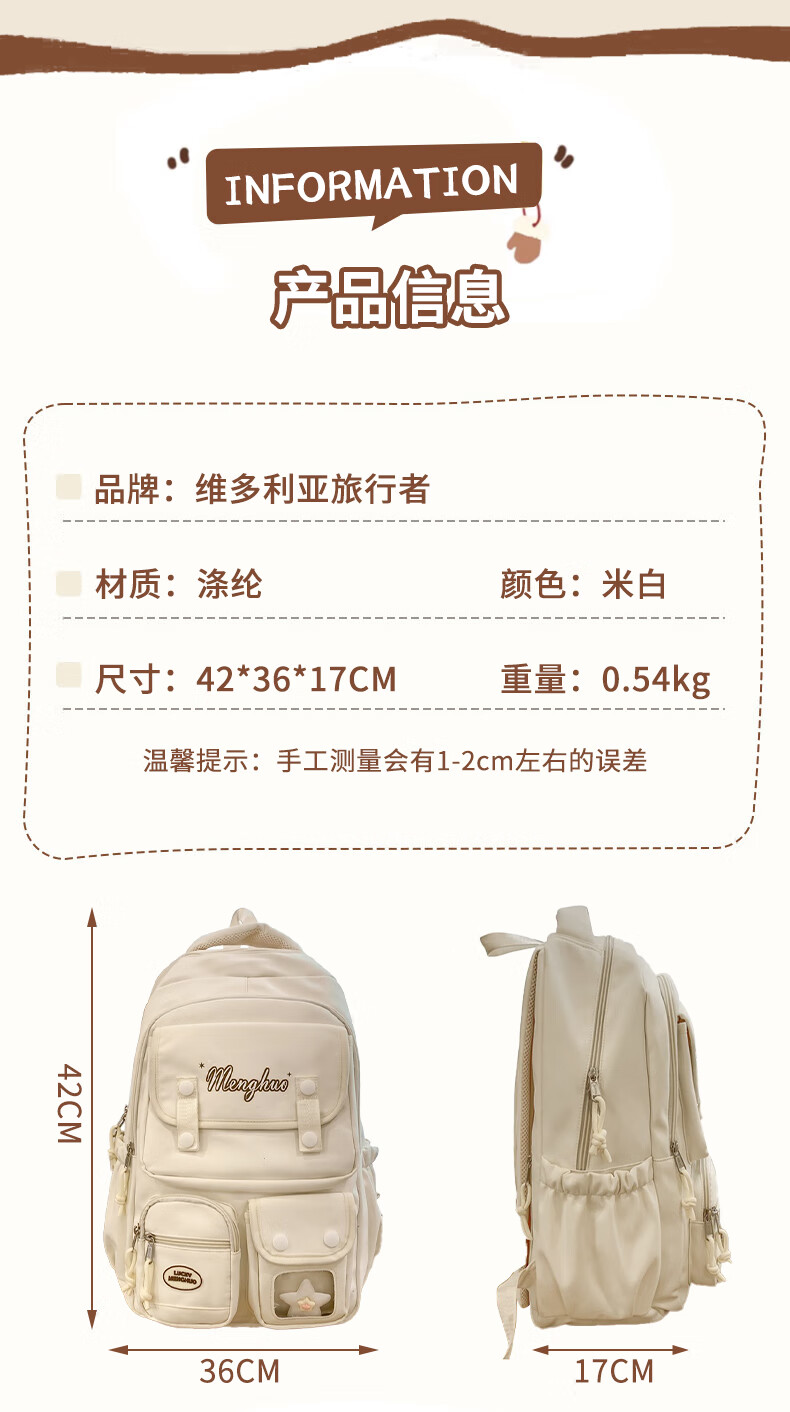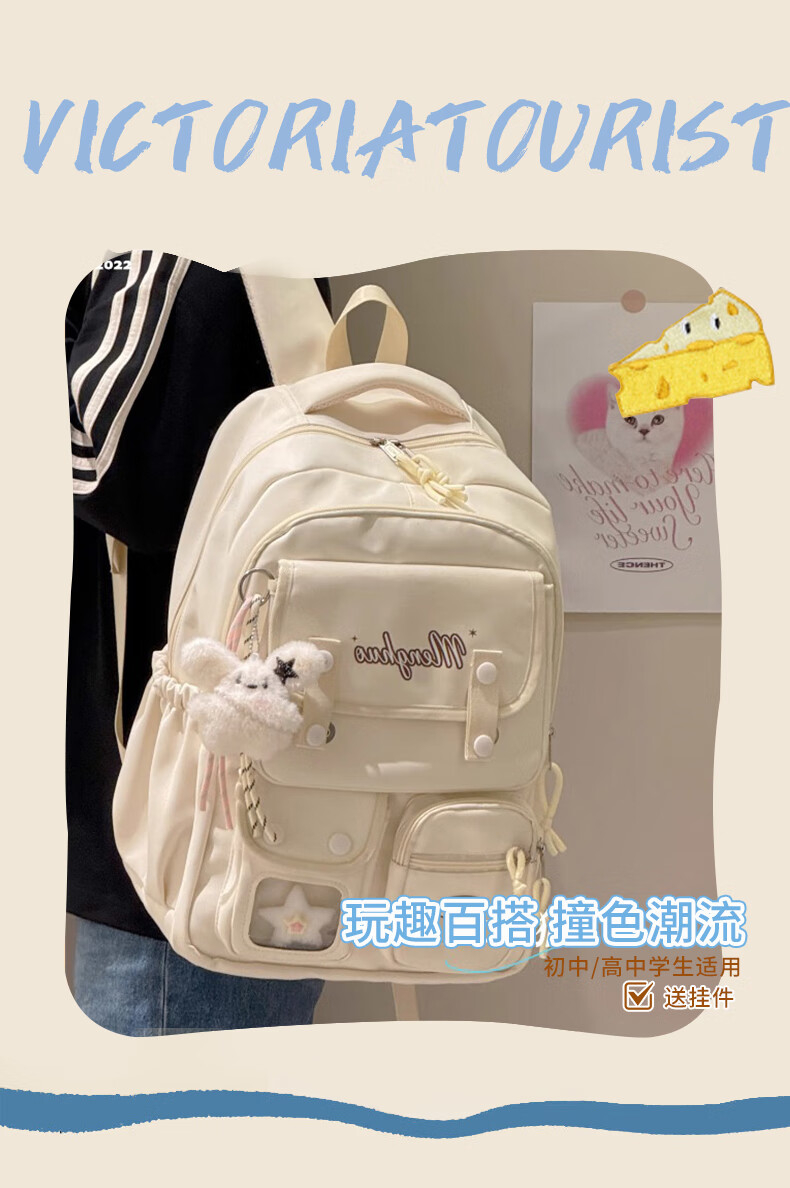 VICTORIATOURIST Junior high school students' schoolbags, female high-profile, large-capacity backpacks, computer bags, lightweight high school students' and college students' backpacks