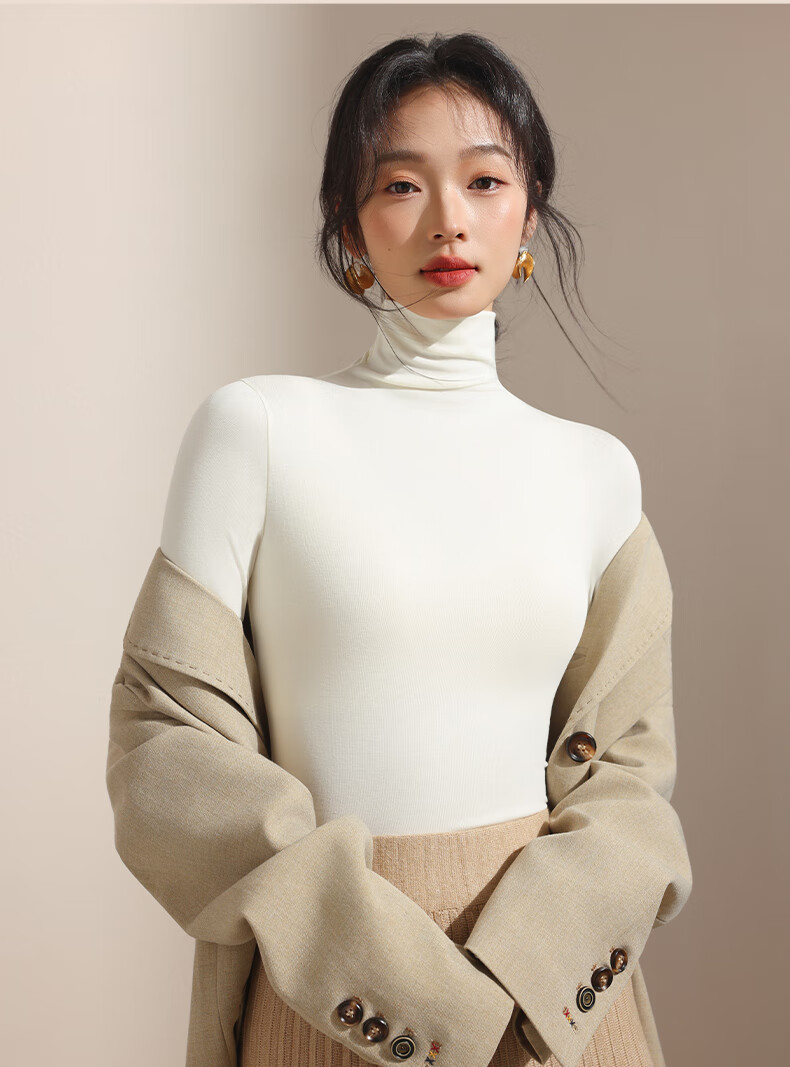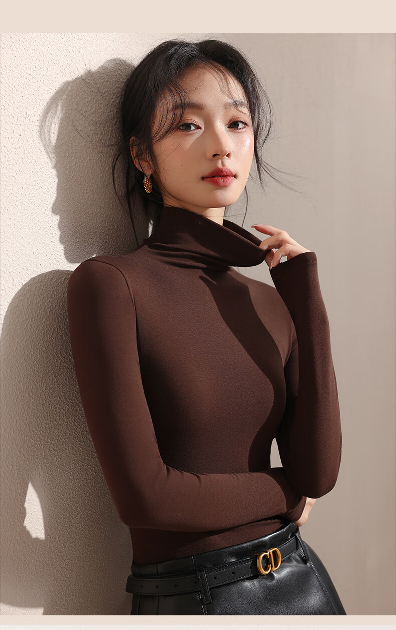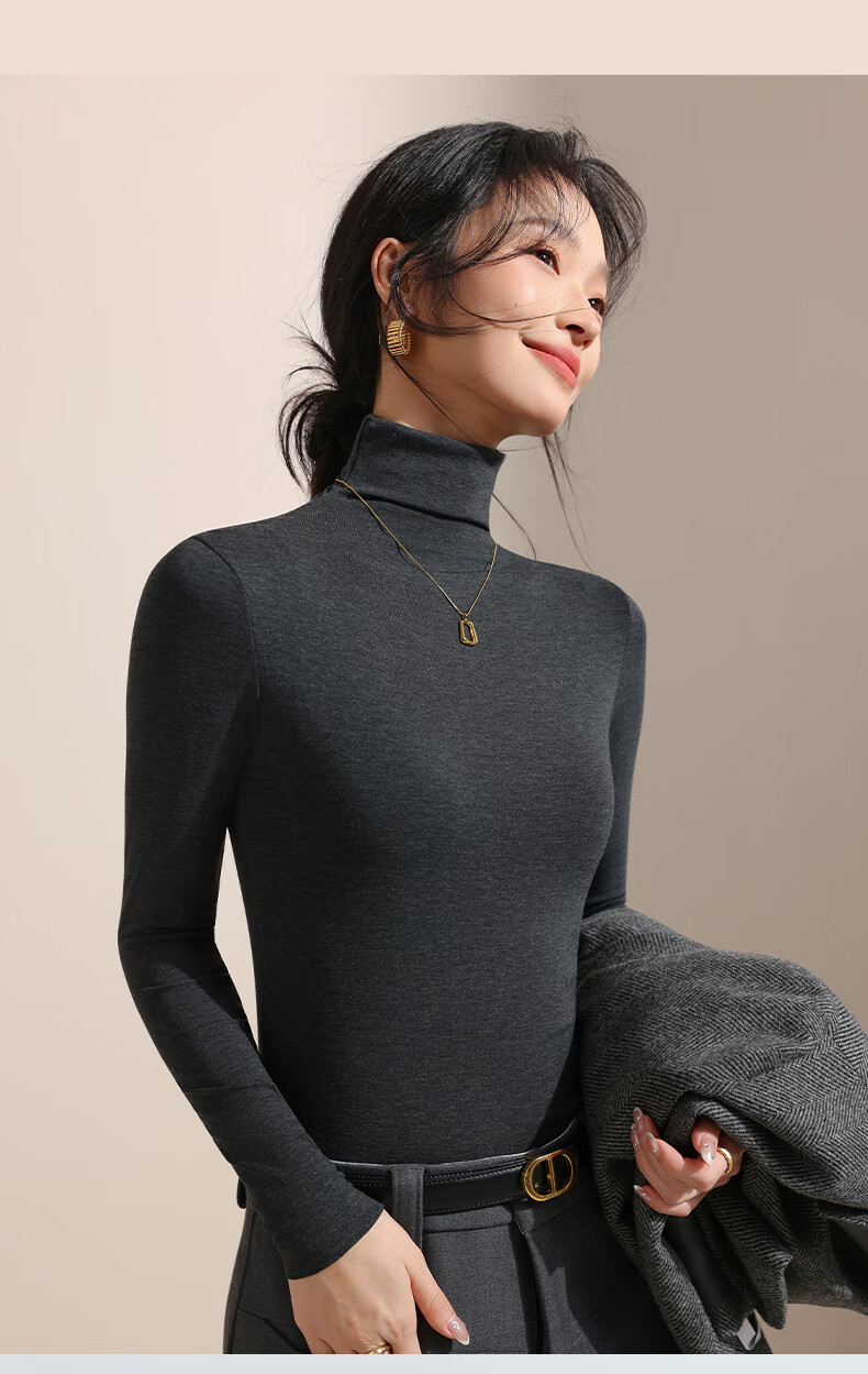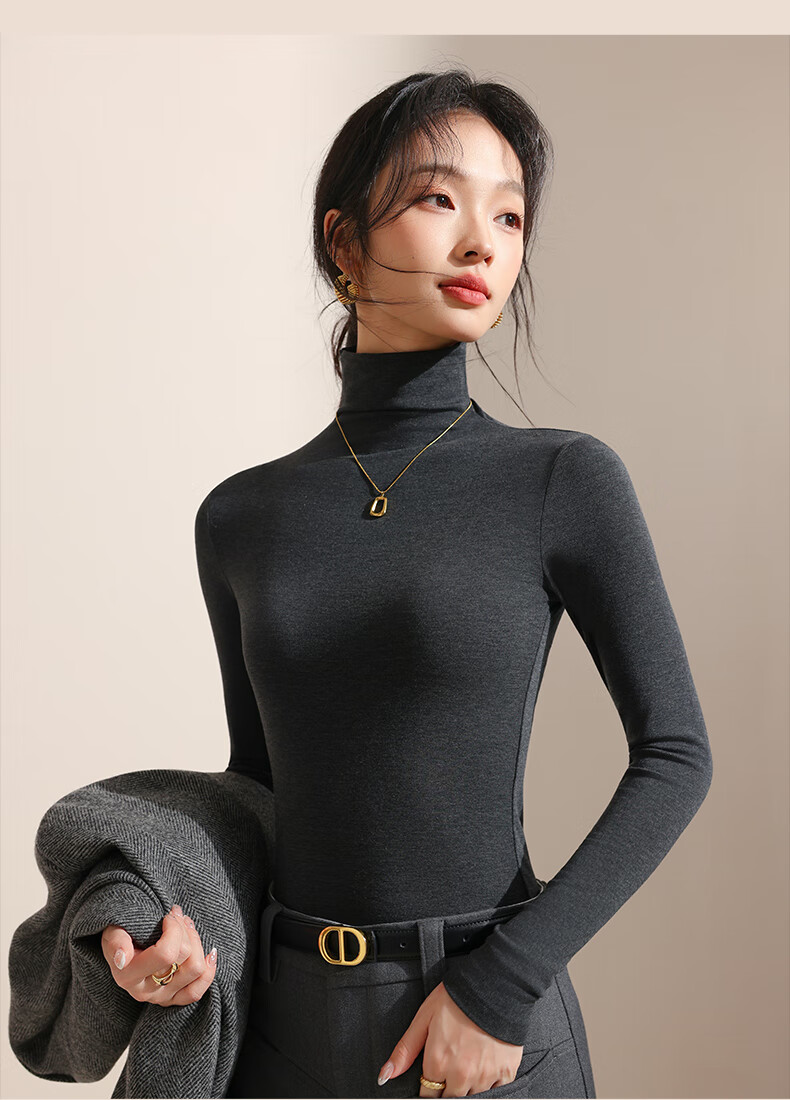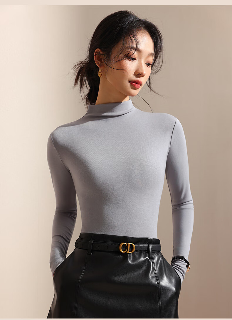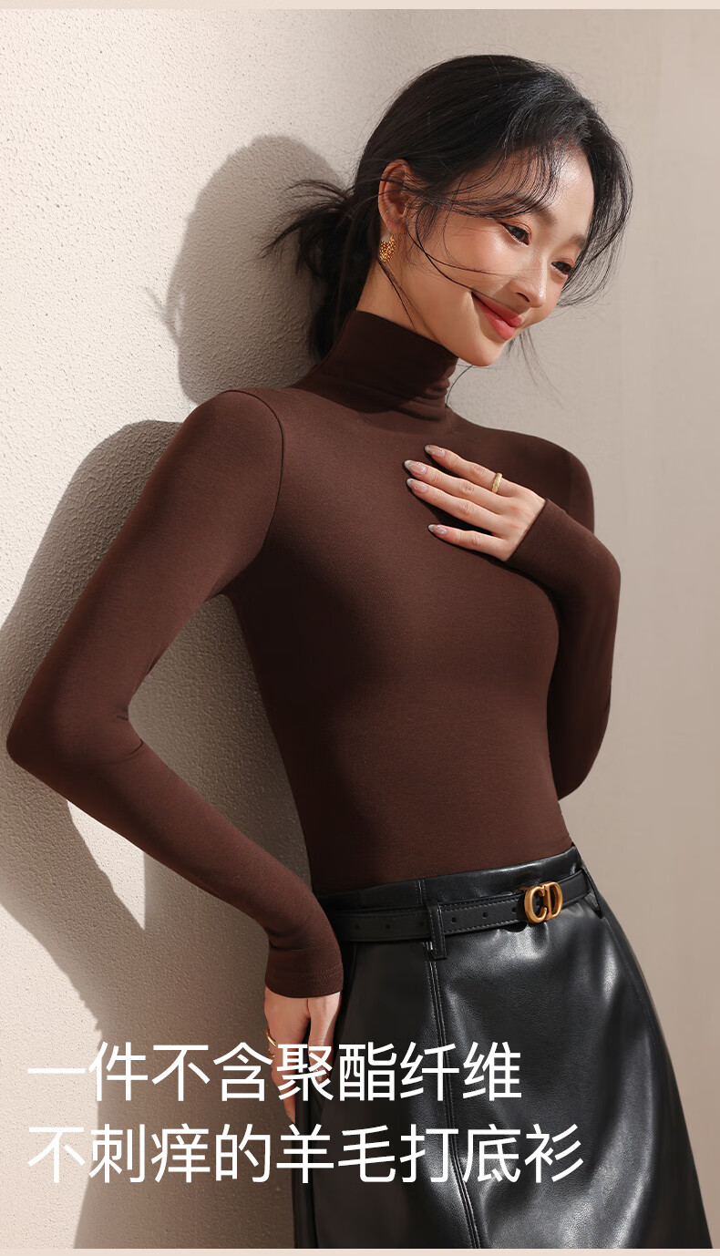 Catman DeRong Wool 2025 New Mid-High Collar Bottoming Shirt Women's Slim Fit Long Sleeve Warm Top