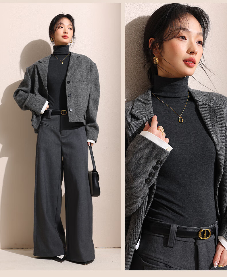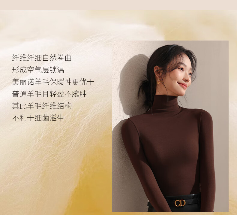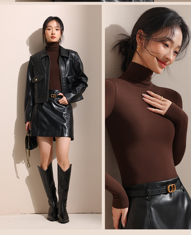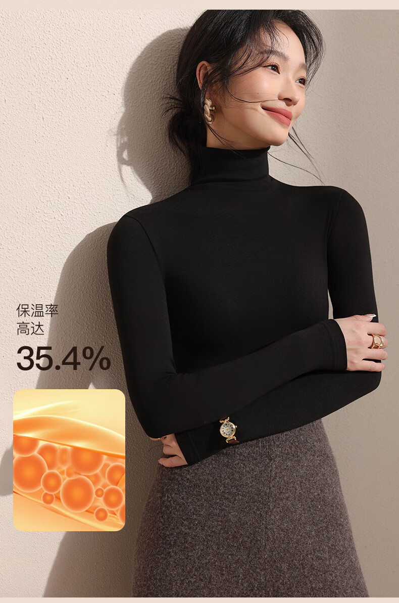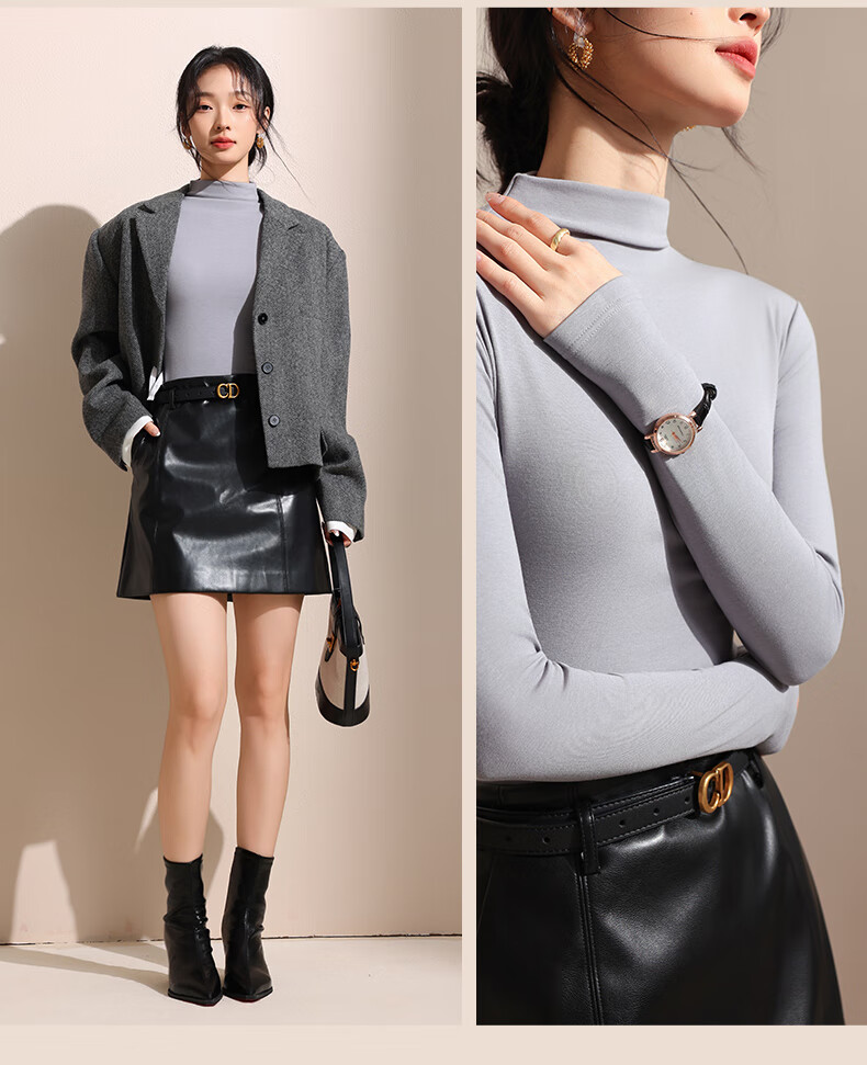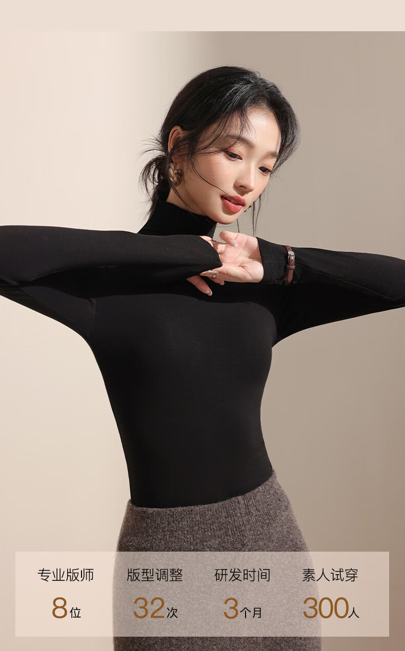 Catman DeRong Wool 2025 New Mid-High Collar Bottoming Shirt Women's Slim Fit Long Sleeve Warm Top